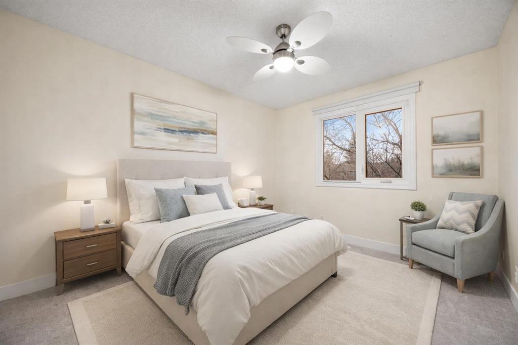 Additional highlights include a HEATED ATTACHED SINGLE GARAGE with driveway parking, convenient visitor parking right outside your front door, and LOW CONDO FEES, making this an exceptional opportunity in one of Calgary’s most desirable river-adjacent communities. This is Point McKay living at its finest — stylish, functional, and surrounded by nature!
