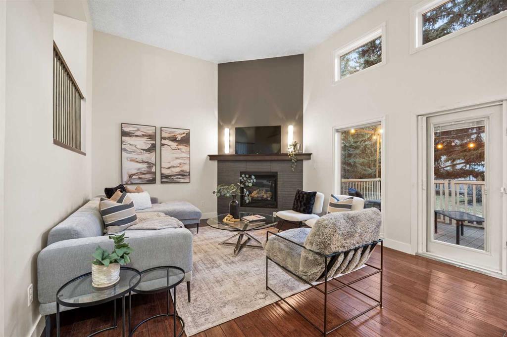 Step inside to a modern and inviting front entrance where you’ll be immediately impressed by HEATED TILE FLOORS and a home that is filled with an abundance of NATURAL LIGHT. The main living area is nothing short of spectacular, featuring a dramatic two-storey living room with a full-height fireplace and expansive patio doors that open onto a PRIVATE, TREE-SURROUNDED BACK DECK, creating a peaceful and private outdoor retreat.