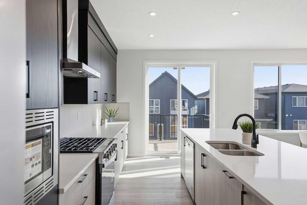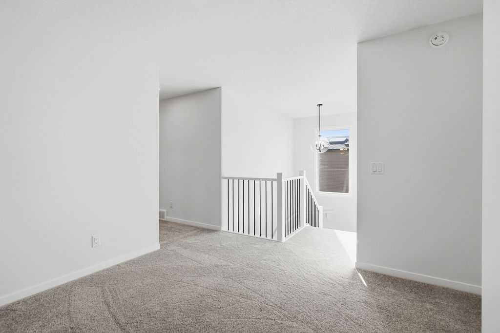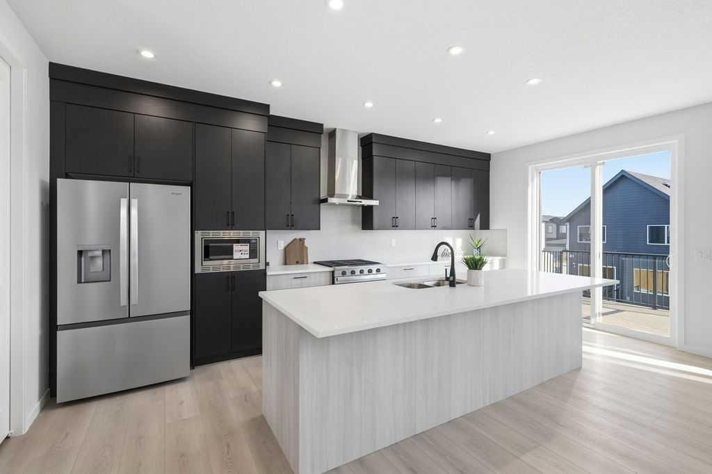 Welcome to this stunning home offering over 2,200 sq.ft. of developed living space in the sought-after community of Glacier Ridge. Perfectly positioned on a premium walkout lot, this detached residence features a front attached double garage, elegant spindle railings, and high-end upgrades throughout. The main floor showcases a bright open-concept design enhanced by pot lights, stylish LVP flooring, and a sleek electric fireplace that anchors the living area with warmth and modern charm. The gourmet kitchen is a true highlight, complete with a gas range, an oversized island, walk-in pantry, and a spacious dining area ideal for entertaining. A convenient 2-piece bathroom completes the main level. Upstairs, a bright bonus room provides additional living space, along with a dedicated laundry area and four generously sized bedrooms. The luxurious primary suite features a spa-inspired 5-piece ensuite with a tiled walk-in showe, deep soaker tub surrounded by premium tile, dual quartz vanities, contemporary cabinetry, modern mirrors, and direct access to a well-organized walk-in closet with built-in shelving. The remaining three bedrooms share another thoughtfully designed 5-piece bathroom for added comfort and convenience. The bright walkout basement with huge windows and 9’ foundation ceilings offers incredible potential for future development, multi-generational living, or added privacy. Step outside to enjoy the rised huge backyard deck with a gas line for BBQs. Residents of Glacier Ridge also benefit from access to an HOA clubhouse featuring a gymnasium, tennis courts, splash park, and year-round activities, plus quick access to major routes for an easy commute. This exceptional property perfectly blends luxury, space, functionality, and lifestyle amenities—an ideal home for families seeking quality craftsmanship and modern comfort. Curtains will be installed on all windows in this house.