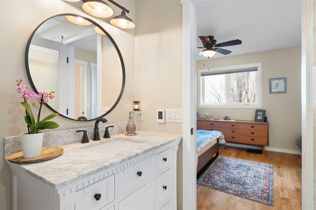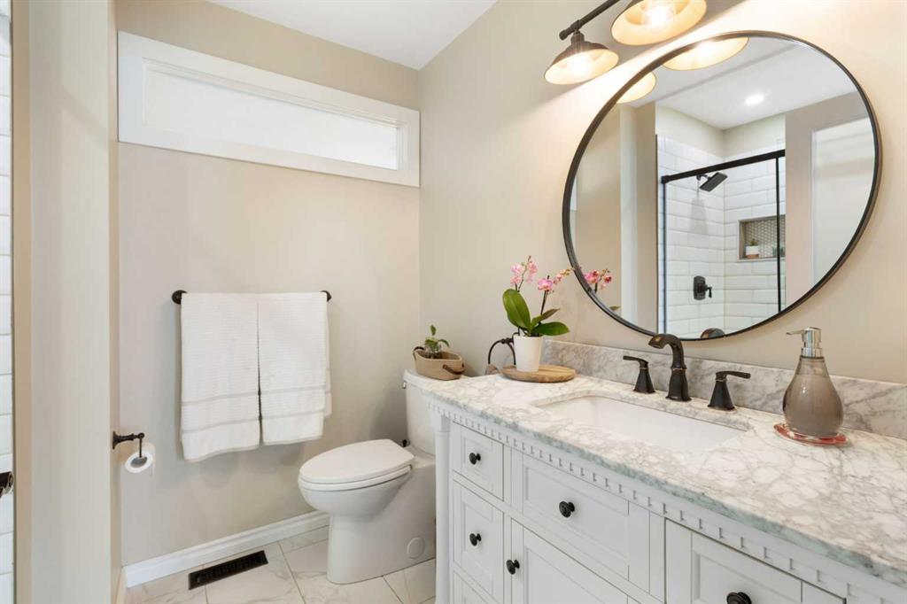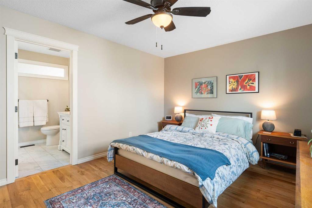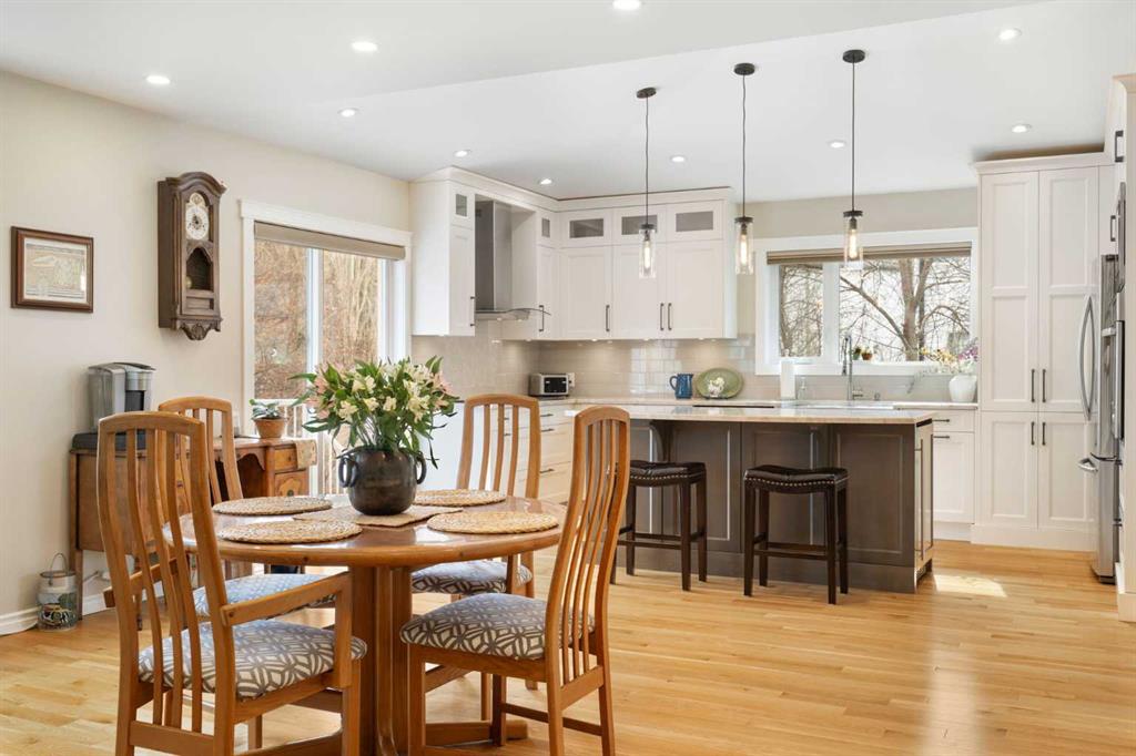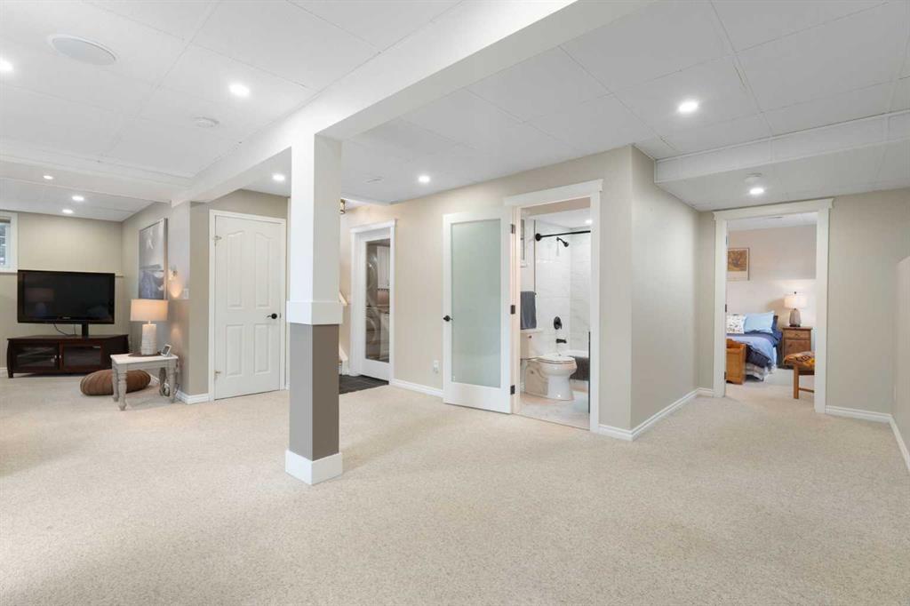 Outside, the massive south-facing backyard is a private oasis with a large deck, private patio and mature trees. Enjoy direct access to walking paths leading to the Bow River, with schools and shopping just minutes away. Complete with an insulated, drywalled, and heated double garage—this home is truly turn-key.