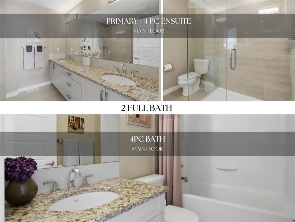 The large primary suite offers a private retreat with a walk-in closet and a well-appointed ensuite complete with double vanity and stand-up shower, while two additional bedrooms provide flexibility for guests, a home office and daily life—all thoughtfully positioned on the same level for true main-floor living.