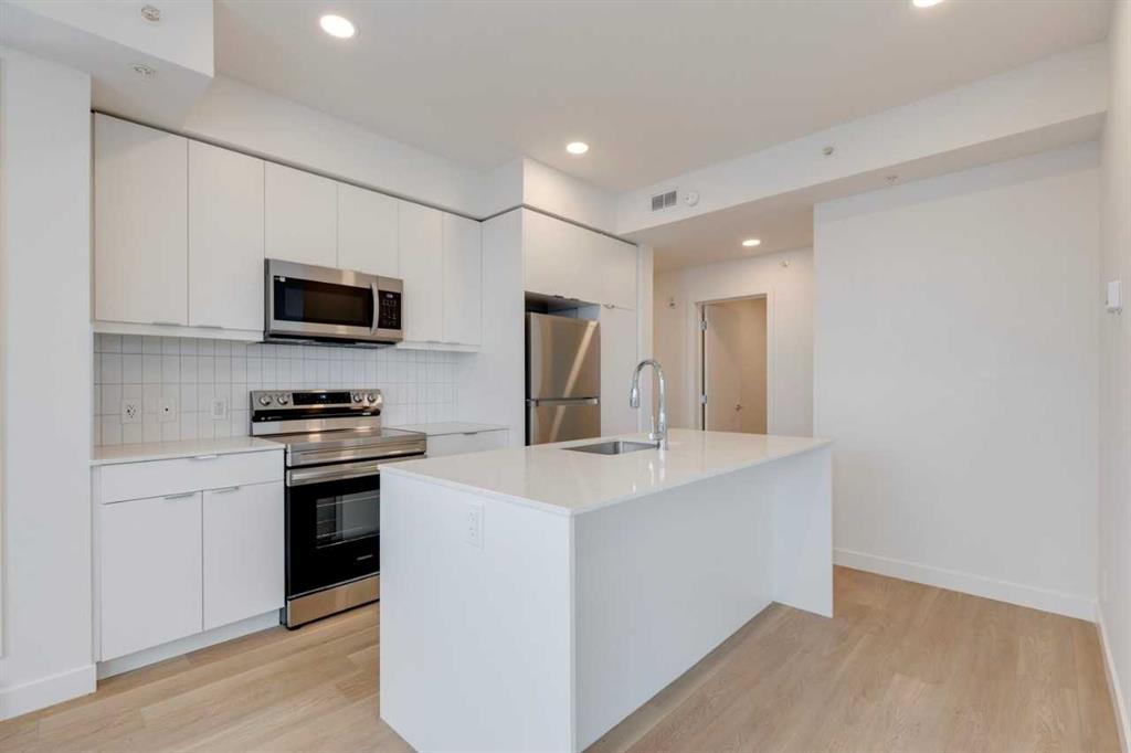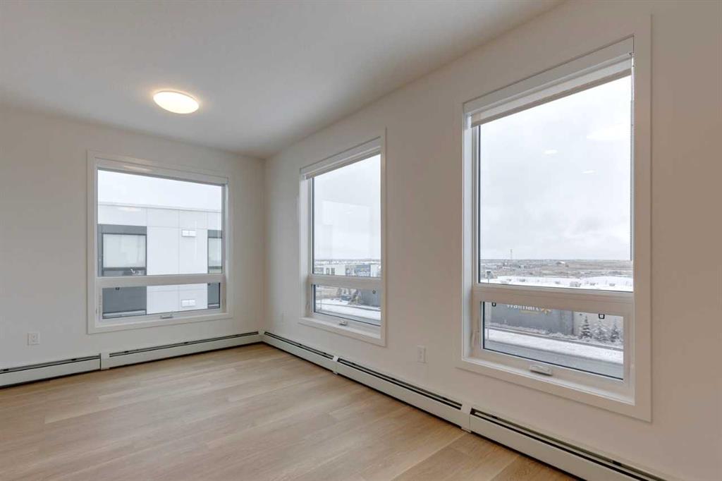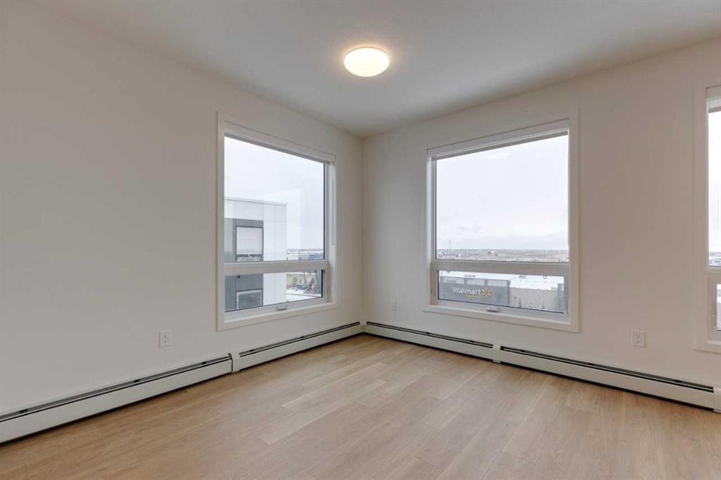 New Community in East Hills Crossing by Minto Communities. Great location offering a range of convenient amenities. Right across the street is East Hills Shopping Center and Costco. A short distance to Chestermere Lake to the East and only 8 km to downtown Calgary. Brand New Corner unit on the top floor! Great mountain views! Home offers 2 bedrooms plus den and 2 full baths. Open floor plan with quartz countertops throughout and LVP flooring throughout. Features in-suite laundry and a titled underground parking stall. Quick access to Stony Trail and downtown.