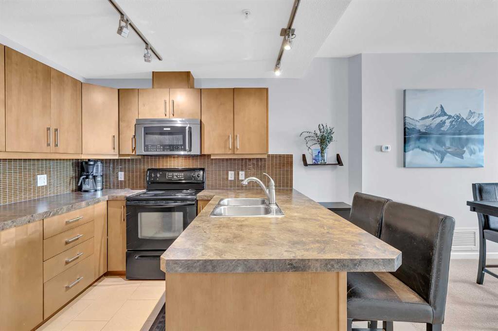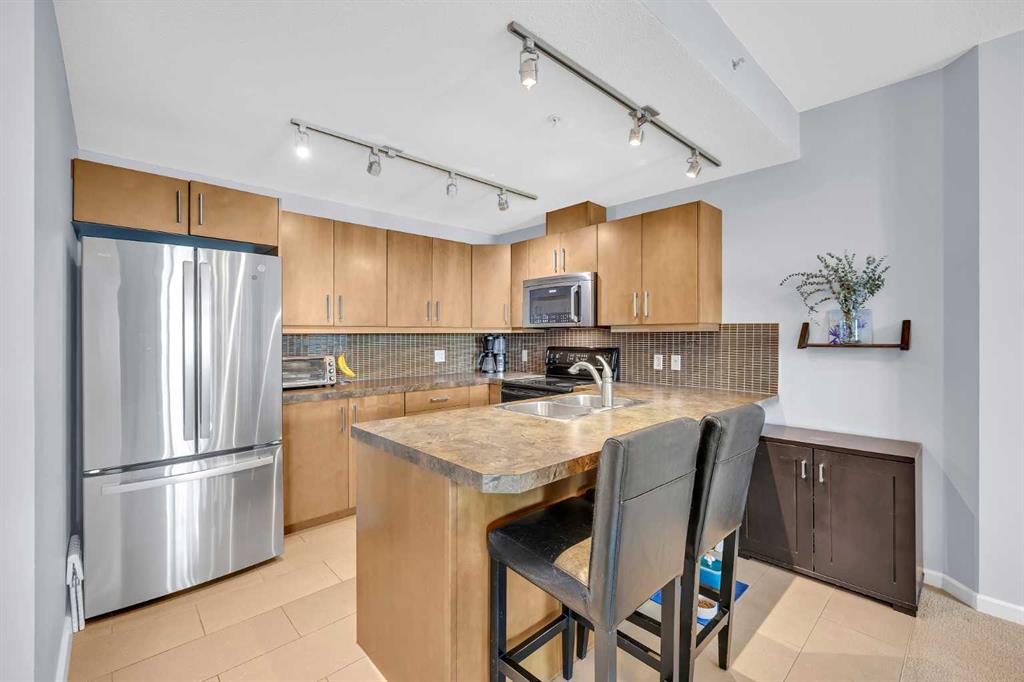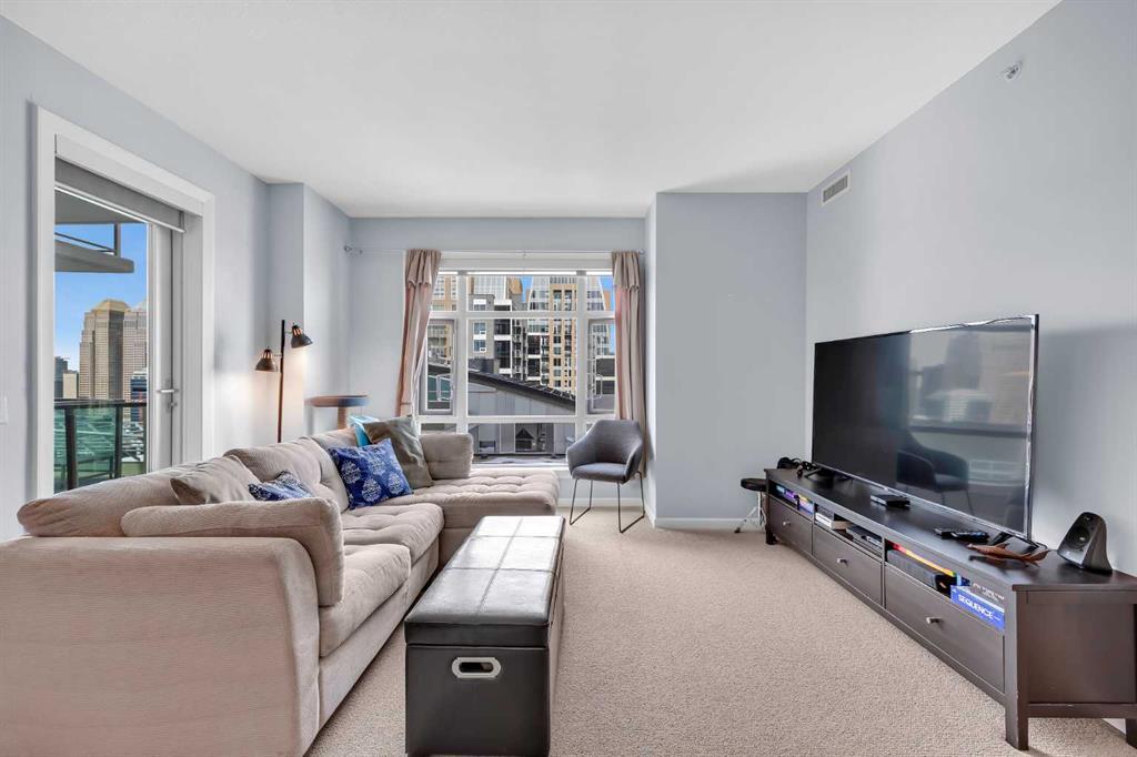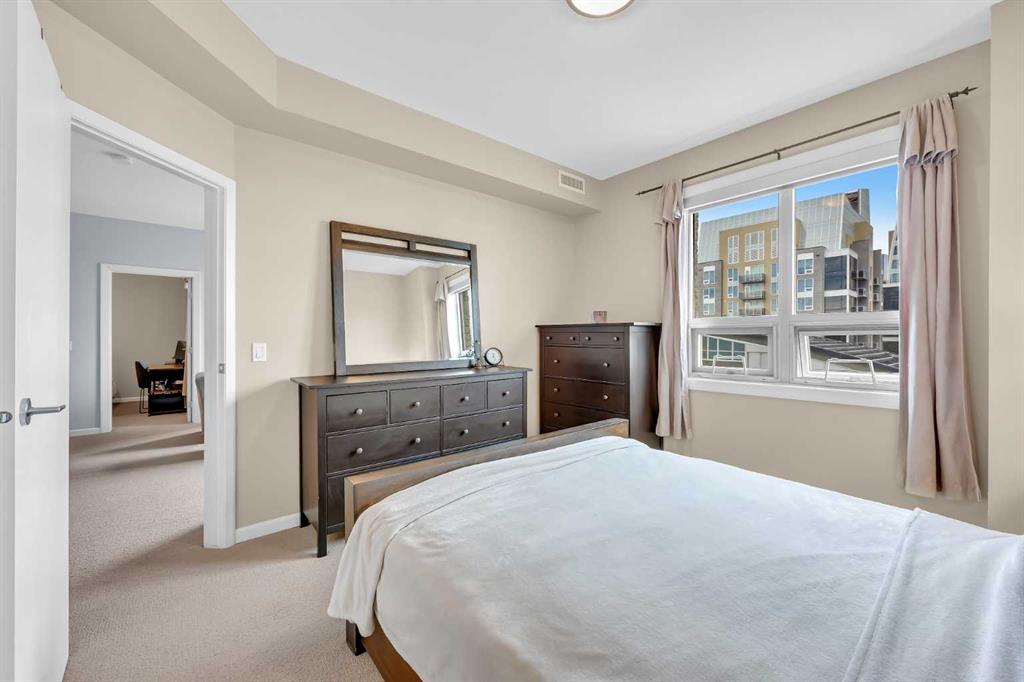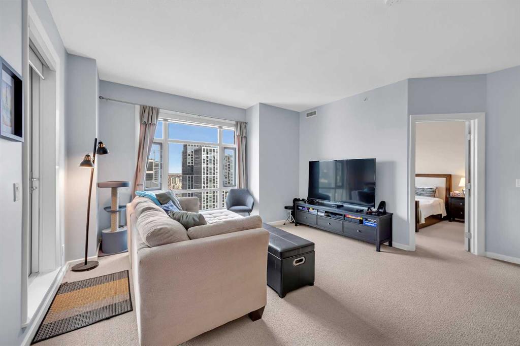 Welcome to VETRO, one of Calgary’s premier high-rise buildings in the heart of Victoria Park. This stunning 26TH-FLOOR, 2-bedroom, 2-bathroom, 9 FOOT CEILING condo offers city views and modern urban living just steps from the best of downtown. The bright OPEN CONCEPT layout features large windows that flood the space with natural light, highlighting the contemporary finishes and open living areas. The kitchen is equipped with sleek cabinetry, stainless steel appliances, under cabinet lighting, and ample counter space, flowing seamlessly into the dining and living areas—perfect for both everyday living and entertaining.