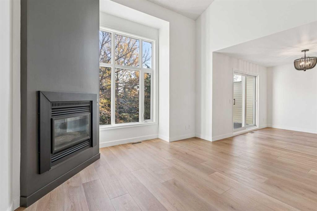 Completely Renovated and Move In Ready! Welcome home to this fully updated 2 bed 2.5 bath townhome – vinyl plank floors, updated lighting package, freshly painted and more! Main floor features a fully renovated kitchen with new cabinets, new stainless appliances, stone countertops, under cabinet lighting and gorgeous finishes. The kitchen opens to the living room/dining room which features vaulted ceilings, gas fireplace, huge windows and access to the private balcony that offers views of mature trees, private yard and walking path. Main floor also has a half bath and access to the attached garage. Upstairs you will find 2 large bedrooms each with their own fully renovated ensuite bathrooms, primary bedroom has a large walk in closet. The walk out basement is bright and open, perfect for a rec room or office space. Basement also has brand new washer/dryer in the laundry room.