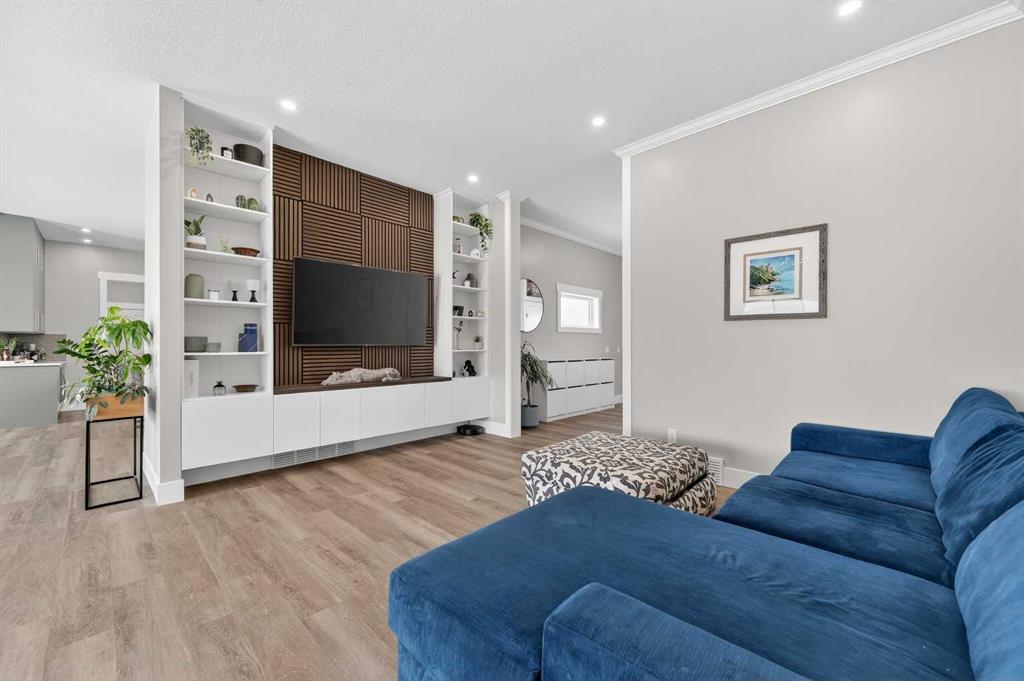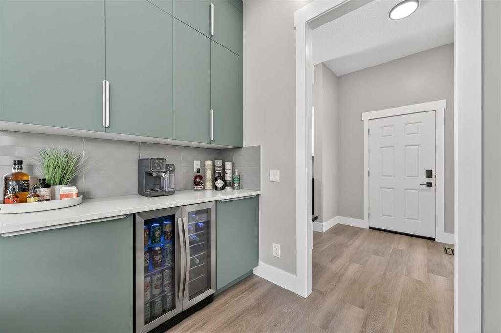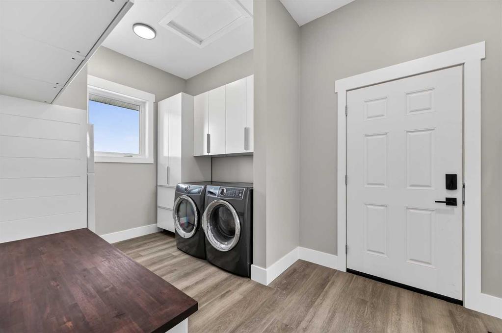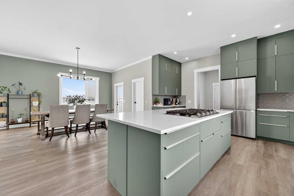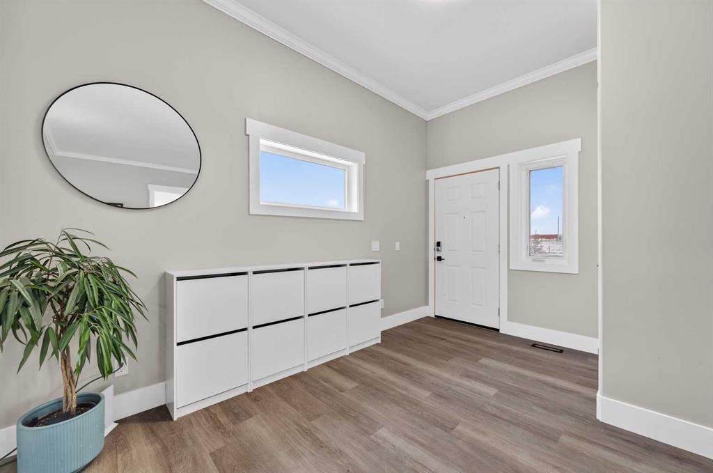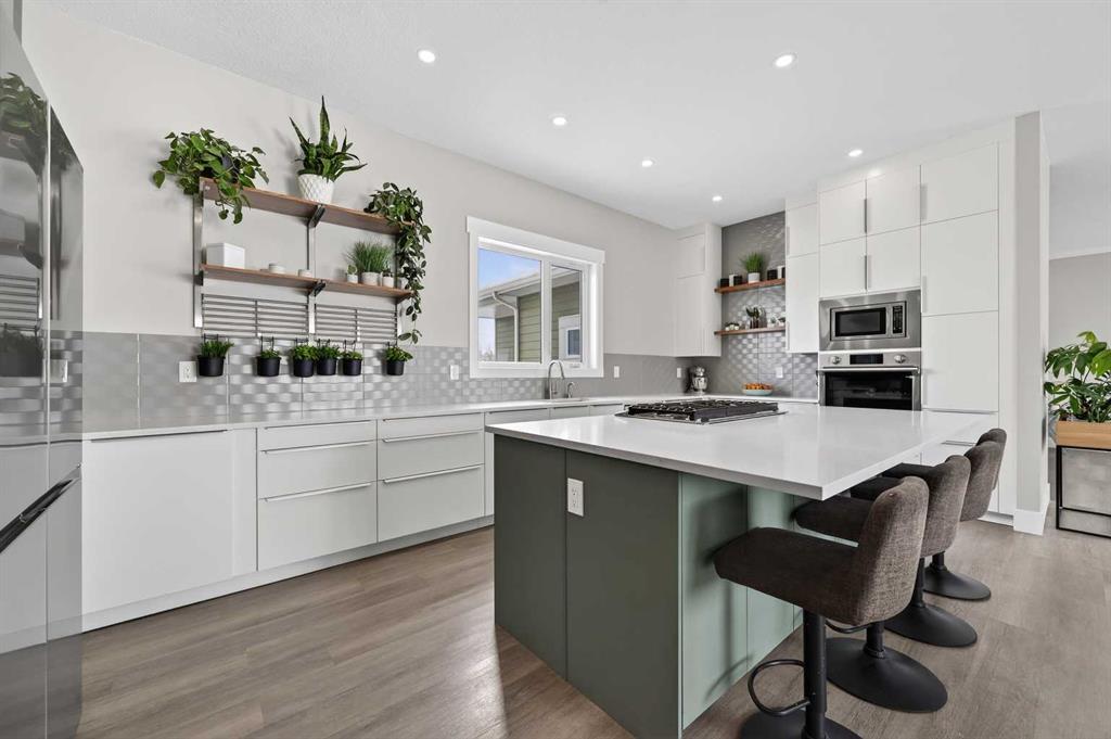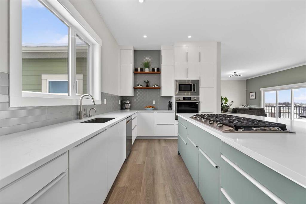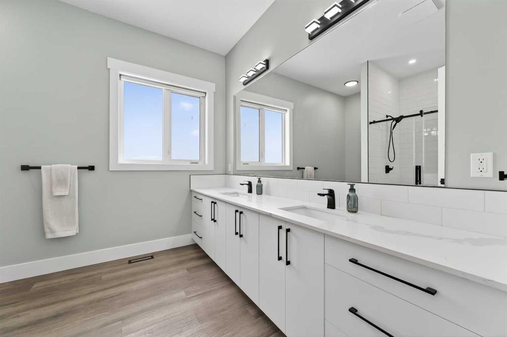 Experience modern luxury acreage living with breathtaking city views, refined design, and extensive upgrades, all set on 5+/- acres just minutes to Calgary, Airdrie, CrossIron Mills, and the airport. Offering 2623 sqft on the main floor, 3 beds, 3 baths, and a triple car garage with radiant heat, this property delivers the perfect blend of comfort, functionality, and elevated style. Step inside to a bright, welcoming entryway that opens into a thoughtfully designed layout featuring NEW vinyl plank flooring throughout and 10’ knockdown ceilings with crown molding across the main floor. Expansive NEW windows throughout the home capture incredible natural light while showcasing the surrounding landscape and distant city skyline. The chef-inspired kitchen is a true focal point, complete with quartz countertops throughout, SS appliances, a flush gas cooktop with downdraft ventilation, reverse osmosis, wall oven and microwave, under-mount farmhouse SS sink, and a spacious walk-in pantry. The impressive 8’ centre island with eating bar and additional storage is ideal for both everyday living and entertaining. A stylish coffee station/dry bar with beverage cooler, floating shelves, and extensive cabinetry further elevate the space. The open-concept living room is anchored by a stunning custom feature wall with built-in cabinetry, creating warmth and architectural interest. The generous dining area is flooded with sunlight from large south-facing windows and offers seamless access to the NEW deck, where panoramic views provide the perfect backdrop for relaxing evenings or hosting. The primary retreat is exceptionally spacious and designed for comfort, featuring a luxurious 4-piece ensuite with a fully tiled floor-to-ceiling walk-in shower, oversized quartz vanity with dual sinks, and modern finishes. Two additional bedrooms are both generously sized and include built-in closets. The 5-piece main bath offers a spa-like feel with a stand-alone tub, second fully tiled walk-in shower, and another oversized dual-sink quartz vanity. Function meets convenience with a laundry room and 1/2 bath located off the garage entry, along with a well-designed boot room featuring built-in cabinetry, drawers, coat hooks, and bench seating. The unfinished basement with 9’ ceilings provides incredible potential for future development, whether you envision additional living space, a home gym, or entertainment area. Extensive upgrades ensure peace of mind and efficiency, including NEW triple pane windows throughout the main floor, NEW basement windows, NEW Hardie board siding, NEW Class 4 shingles, and the complete absence of Poly B plumbing. The home is also a proud recipient of the Greener Homes Grant, adding further value and energy efficiency. Outside, the property is beautifully established and thoughtfully landscaped.This is a rare opportunity to own a turnkey acreage that offers space, style, and convenience—all in one exceptional location with stunning views and easy access to the city.