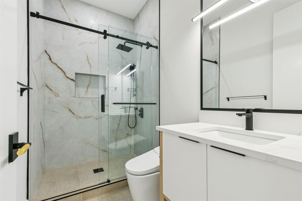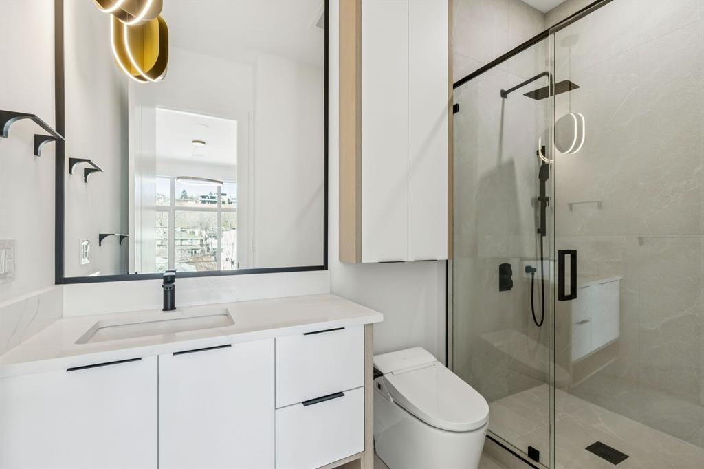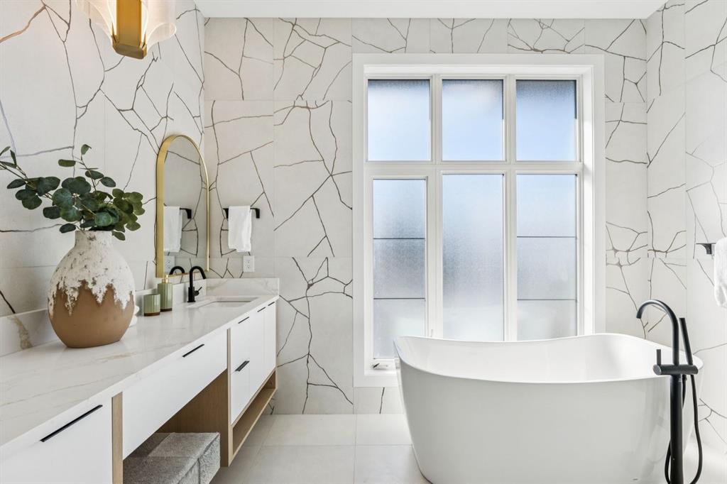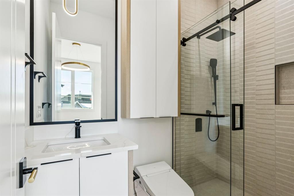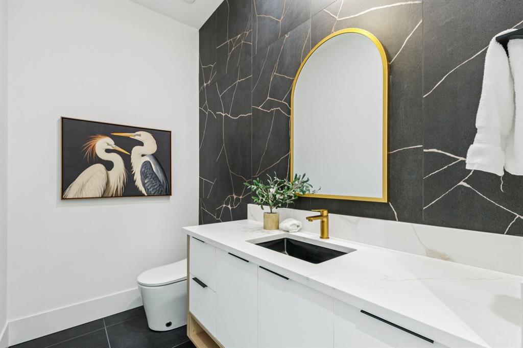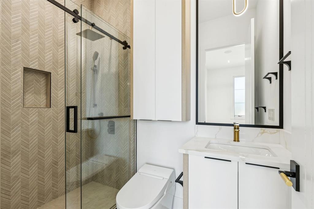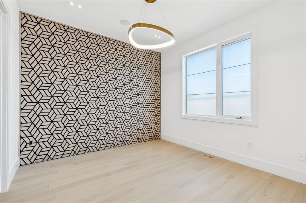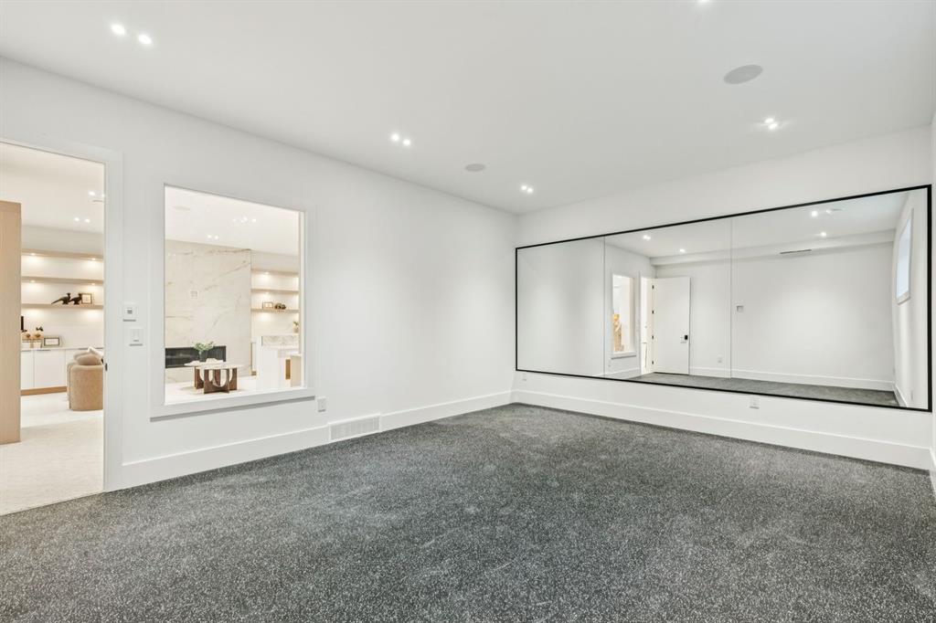 Discover refined living in this exceptional custom build by HeavenView Homes, ideally located in sought after West Hillhurst. Crafted with uncompromising attention to detail, this home sets a new standard for luxury with elevated design, impeccable finishes, and thoughtfully curated spaces throughout. From the moment you enter, a custom solid wood and metal feature railing creates a striking architectural statement, while soaring 12 ft ceilings on the main level and 10 ft ceilings on the upper and basement levels enhance the home’s sense of scale. White oak hardwood floors, dramatic feature walls, more than 200 pot lights, and extensive LED strip lighting elevate the interior, while oversized triple pane windows flood the home with natural light and complement whole house spray foam insulation for superior efficiency. The elegant dining room flows into the living room, separated by a custom LED-lit architectural feature wall, while bespoke millwork frames a sleek linear gas fireplace. Expansive sliding doors open to a premium exposed concrete patio with an outdoor gas fireplace, seamlessly blending indoor and outdoor living while overlooking the sunny South facing backyard. The statement kitchen is equipped with premium JennAir appliances including a gas cooktop, built-in oven, microwave, and coffee system, complemented by quartz counters, an oversized island, and extensive custom cabinetry. A wraparound butler’s pantry provides abundant storage, shelving, and dedicated wine storage. A spacious mudroom with built-ins connects to the triple attached garage, finished with epoxy flooring and a heater, while AC will also be installed to the home for added comfort. Upstairs, natural light fills the open riser staircase and leads to a well appointed laundry room, coffee/beverage station, and four generous bedrooms, each with feature walls and private ensuites. Bathrooms are enhanced with upgraded Japanese toilets, blending advanced technology with refined design. The primary retreat features a custom walk-in dressing room and a luxurious 6pc ensuite with a deep soaker tub and glass encased steam shower with body sprays. The lower level is designed for relaxation and entertaining with radiant boiler in-floor heat, plush carpets, expansive games and rec areas, a fully equipped wet bar, and extensive wine storage. A dedicated home gym with rubber flooring and mirrored walls, a fifth bedroom with its own ensuite, and an additional powder room complete the space. Technology is seamlessly integrated with 20+ pairs of KEF in-ceiling speakers throughout. The South facing backyard will also feature a fully new fence and professional landscaping once weather permits. Ideally located minutes from Westmount Charter School, Helicopter Park, the off-leash dog park, Foothills Medical Centre, and the Bow River Pathway, this remarkable residence seamlessly blends timeless elegance with modern sophistication.