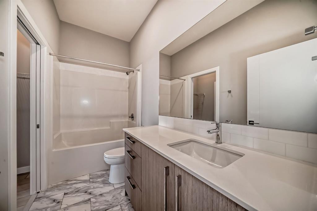Welcome to Skyview North, where elevated living meets everyday convenience. This bright Top-Floor 2-Bedroom, 2-Bathroom condo offers over 700 square feet. of thoughtfully designed living space in the vibrant community of Skyview Ranch. Step inside to discover a modern open-concept layout featuring luxury vinyl plank flooring, a designer lighting package, and upgraded finishes throughout. The gourmet kitchen is a standout, boasting stainless steel appliances, soft-close cabinetry, and quartz countertops—perfect for both casual meals and entertaining guests. The primary bedroom includes a walk-through closet and a private 3-piece ensuite, while the second bedroom offers flexibility as a guest room, home office, or creative space. Additional highlights include in-suite laundry, window coverings, and a private balcony ideal for relaxing at the end of the day. Enjoy the convenience of a titled parking stall and a well-managed complex. Located just steps from Sky Point Landing, green spaces, and playgrounds, and offering quick access to Stoney Trail and Deerfoot Trail, this location makes commuting and daily errands a breeze. Don’t miss this opportunity to own a top-floor gem in Skyview North—book your private showing today!