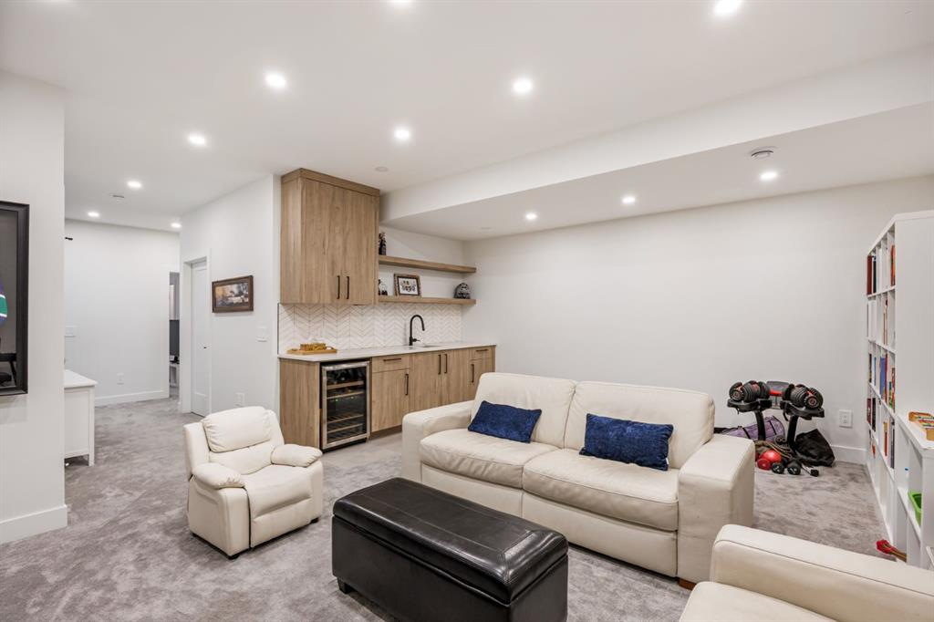 Welcome to this exceptional infill in the inner-city community of Killarney. Built in 2023, this executive two-storey residence is situated on a beautiful tree lined street and showcases a fully landscaped, west-facing yard with built in planters and covered deck, and a detached two-car garage. Thoughtfully designed for both family living and upscale entertaining, the home features over 2,800 sq.ft. of living space. The entryway leads to a spacious dining room, a beautiful contemporary kitchen and a sun filled living room with tiled fireplace. The main floor also includes convenient rear entrance with a well designed mudroom and powder room. Upstairs, the expansive primary suite is accompanied by two additional bedrooms, a generous laundry room, and a family bath. The fully developed lower level offers a large recreation area with wet bar and beverage fridge, a fourth bedroom, a full bathroom and generous storage. Luxury finishes and thoughtful details are found throughout, and every add-on has already been installed, including Kitchen Aid Pro appliances, air conditioning, outdoor smart lights, smart door locks, garage heater and water softener. This extraordinary home is within walking distance to the shops and restaurants of 26th Avenue and 37th Street, and is located in the catchment area for some of Calgary’s top public and seperate schools.