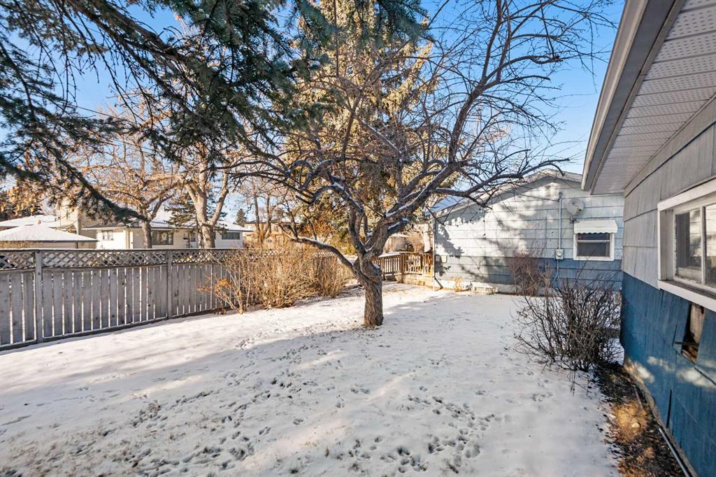 Young growing family and developers, opportunities like this Banff Trail bungalow don’t come along very often! Set on a 50’x120’ CORNER LOT and facing a park, the property is prime for an upgrade, whether that’s a full remodel or a redevelopment – stylish infills are increasingly popular in the area. The corner lot offers plenty of free street parking. ***UPGRADES*** include: Furnace (2015), Roof (2012), Electric Panel (1994), Main Floor Bedroom Window (2015), and three Basement Bedroom Windows (2015). ***MAIN FLOOR*** Inside, the largely original features follow a quintessential floorplan with a living room at the front of the home, with a bright dining area with chandelier that leads to the kitchen, where original oak cabinetry is a testament to quality workmanship that you might replicate in your new material selections. Similarly, the hardwood floors that run throughout this level could be charming when refinished. As you would expect in this style of home, three generous bedrooms and the main bathroom are down the hall. ***BASEMENT***From the Main Floor kitchen a stairway leads to the back door & offers a separate entrance to the basement, which begins with a shared laundry area with front load LG washing machine and a large capacity Gas dryer. A second kitchen and a large living room are excellent for a multi-generational family or a mortgage helper while you plan a Legalized Suite. There are three more bedrooms and another full bathroom here, which is a rare and coveted lower-level layout, especially for the rental market. ***EXTERIOR*** Outside, partially fenced yard has a huge lawn with mature trees that offer a timely shade for the house. Plus, the tall Lilac bushes that provide a private outdoor space at the concrete tiled patio next to the single-detached garage. The home also has a wheelchair ramp from the front door to the pavement, which is a highly desirable accessibility feature. ***THE AREA*** Proximity to the University of Calgary, SATI, McMahon Stadium, and the Foothills Hospital means both high-end homes and savvy rental properties are popular here. Parks and pathways nearby are plentiful, and schools are also in walking distance. Residents enjoy access to amenities nearby, with the Banff Trail C-train station for commuting options. Also, there is the Brentwood Village Mall with several banks, grocery stores and variety of restaurants. Easy access to Crowchild Trail and other primary routes like 16th avenue will take you conveniently to downtown in 10 minutes – or you can get out of the city into the mountains for camping, hiking, and winter sports to places like Canmore and Kananaskis country within an hour.