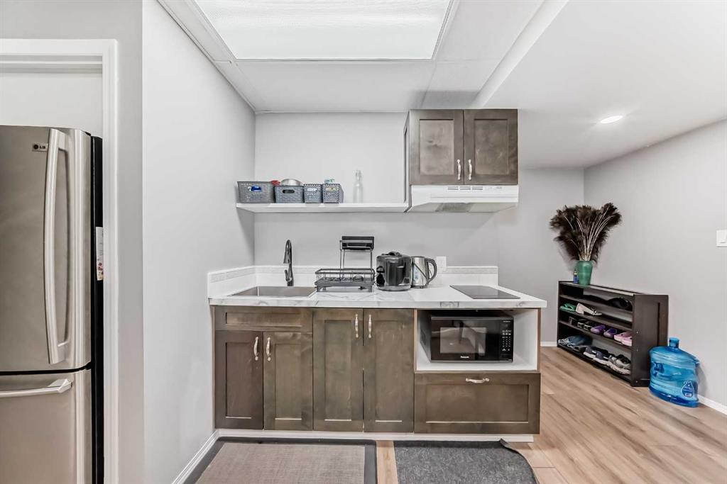 Upstairs, the sunlit primary bedroom boasts a charming bay window, while two additional bedrooms offer plenty of space for family or home office needs. A well-appointed 4-piece bathroom completes the upper level. The fully finished basement expands your options with an illegal suite featuring its own kitchen, laundry, bathroom, and egress windows—ideal for multi-generational living or potential rental income. The spacious family room provides a comfortable retreat, and additional storage ensures everything has its place. Back lane access offers extra parking options. Prime location just steps to schools, transit, and amenities. Gutter and downspout are in order and will be replaced before possession.