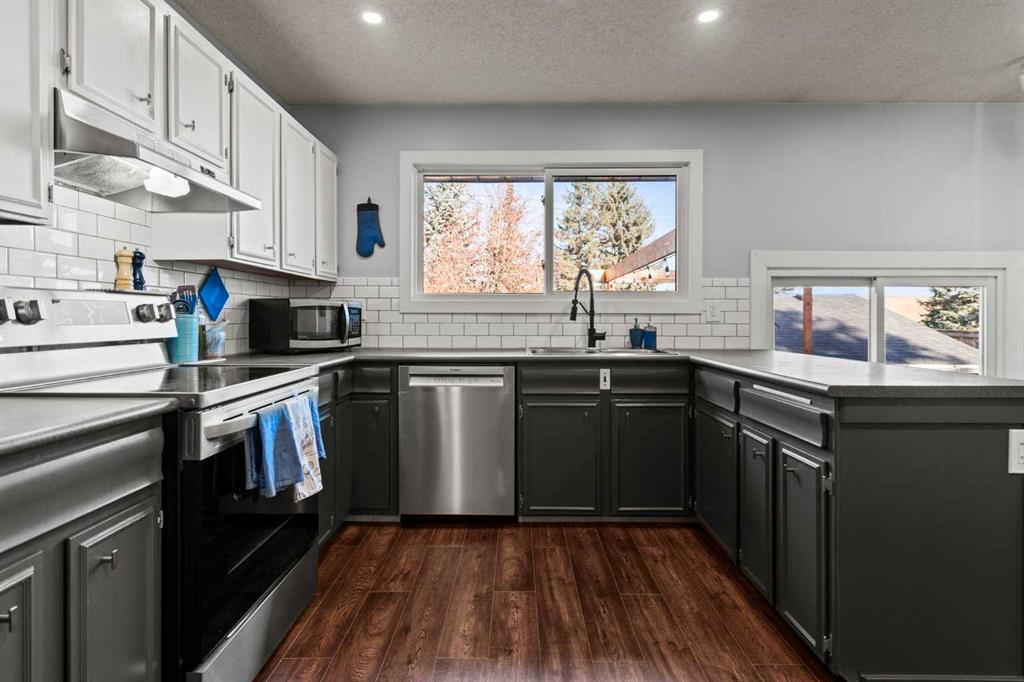 *OPEN HOUSE SUNDAY NOV 9 12pm-2:30pm* This property is a MUST SEE! Tucked away on a large traditional lot, this beautiful bungalow offers timeless character with numerous updates throughout. Step inside to discover a bright main floor with a traditional layout featuring three spacious bedrooms, including a primary suite with its own 2-piece ensuite. A cozy brick-facing wood-burning fireplace is a standout feature, enjoyed from both the living and dining rooms. The expansive kitchen impresses with stainless steel appliances, ample counter space, a massive window overlooking the backyard, a chalkboard wall, and a full pantry wall that doubles as a stylish coffee bar or entertaining station. Step through sliding patio doors to your private backyard oasis — a sunny retreat complete with a deck and pergola lit by Edison bulbs, a BBQ gas hookup, raised garden beds, an irrigation system, a rain barrel, and a storage shed. The oversized garage (21’4” x 21’7”) is a dream come true for hobbyists, mechanics, or makers — fully equipped with electric heat and air conditioning, built-in worktables, bin storage, a ceiling fan, an EV plug, and its own 100-amp panel. The ultimate workspace! The fully finished lower level offers endless possibilities — a spacious rec room and games area with a wet bar, a second gas fireplace, a 4-piece bath, a den/office or fourth bedroom, a laundry room, a dry sauna, and plenty of storage. Recent upgrades include newer electrical, furnace, hot water tank, roof, lighting, windows, laminate flooring, A/C, paint and baseboards downstairs, Cat 5 wiring in every room, wood panel accents and linen storage in the hallway, and a refreshed deck and fence. This home is truly move-in ready — yet still brimming with potential for your personal touch. Add in a welcoming community with programs and events through the Cedarbrae Community Association, and you’ve found the perfect home that combines character, comfort, and convenience in one irresistible package. You’ll love being minutes from everything — multiple schools, churches, parks, Southcentre Mall, Rockyview Hospital, and the greenspaces and pathways connecting South Glenmore Park, Fish Creek Park, and the Braeside off-leash dog park. With quick access to Stoney Trail, Glenmore, Macleod, and 22X, the entire city is at your doorstep. Stylish, functional, and filled with warmth — this is the perfect place to call home.