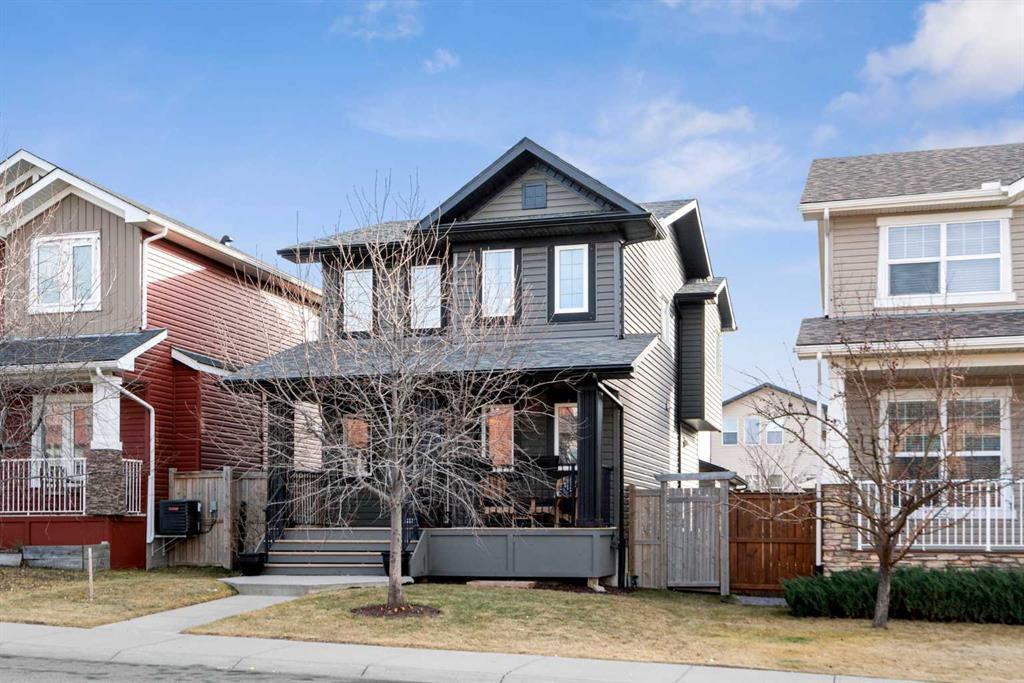From the moment you arrive at 263 Evanston Way, there’s a sense of ease and possibility – morning walks to the school and green space directly across the street, kids riding bikes out front & a home that feels instantly welcoming. The covered porch opens into a bright foyer that sets the tone for the entire property: warm, functional, and designed for the rhythm of everyday life. A private front office offers a quiet retreat for work or study, while the convenient main-floor laundry and powder room keep routines simple and stress-free. The heart of the home opens up just beyond the hallway, where the newly updated kitchen becomes an immediate showstopper. Quartz countertops gleam beneath soft natural light, while two-toned cabinetry – crisp white uppers paired with striking blue lowers and island – creates a modern, designer feel. SS appliances and a generous pantry make cooking effortless, and the open-concept layout keeps you connected to the dining and living spaces at all times. The dining area easily accommodates family gatherings and weekend brunches, flowing seamlessly into the rear living room where a gas fireplace anchors the space with warmth. From here, large windows draw your eye to the beautifully landscaped backyard – complete with a two-tiered deck, pergola, and plenty of space to relax, entertain, or simply unwind in your own private outdoor haven. The heated detached garage adds year-round practicality you’ll appreciate. Upstairs, the home transitions into a private, restful retreat. The spacious primary suite offers room to breathe, with a calming ensuite featuring both a soaker tub and walk-in shower, plus a generous walk-in closet. Two additional bedrooms featuring newer triple-pane windows provide comfort for family, guests, or a second workspace. A full bathroom and an airy open-to-below landing complete a level designed for balance and comfort. The fully developed basement extends the home’s living potential even further. The expansive rec room is a true multipurpose haven – media space, gym zone, play area, or entertaining lounge – and the wet bar brings a touch of celebration to movie nights and gatherings. A large bedroom and full bathroom create a perfect setup for teens, guests, or extended family. With a new hot water tank, organized utility space, and thoughtful storage, this level is as functional as it is fun. Recent upgrades include new siding, new roof shingles, updated kitchen finishes, & central air conditioning mean you can move in with peace of mind and enjoy the home exactly as it is: warm, stylish, and ready for its next chapter. Altogether, this property delivers more than 2,200 sq ft of beautifully optimized living space across three finished levels. This home is located within the vibrant, family-focused community of Evanston – a neighbourhood known for its welcoming streets, walkable pathways, and thoughtfully planned parks. Come experience the feeling of home – book your private showing today.
