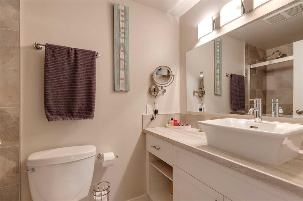 Nestled in the sought after, family friendly community of Oakridge, this beautifully renovated, open-concept home blends timeless charm with modern comfort. Offering 974 sq. ft. of thoughtfully designed living space and extensive upgrades throughout, this home is sure to impress. Bright and airy, the interior showcases oversized vinyl windows, 12-foot vaulted ceilings with exposed beams, and luxury vinyl plank flooring that extends gracefully throughout the home. The stylish kitchen is masterfully designed for efficiency and entertaining, featuring shaker-style white cabinetry, elegant subway tile backsplash, and modern stainless steel appliances. The kitchen flows seamlessly into a refined dining area and living room, centered around a cozy wood burning fireplace, ideal for entertaining and relaxation. A beautifully finished four-piece bathroom with a custom tile tub surround completes the main floor. The lower level continues to shine with oversized windows, fresh vinyl plank flooring, and newly installed carpet in both bedrooms. The spacious primary bedroom comfortably accommodates a king size bed, while the second bedroom is ideal for guests or a dedicated home office—an excellent setup for staying cool during warm summer nights. This level also includes an oversized 2-piece bathroom and a convenient laundry area equipped with newer front-load washer and dryer. Outside, enjoy a fully fenced and private backyard featuring a deck and concrete patio—perfect for extending your living and entertaining space. At the front, the home is greeted by an extended yard accented by mature lilac trees adding exceptional curb appeal. Your dedicated parking stall sits just steps from the home, with plenty of additional street parking for guests. Further recent updates include the furnace (2020), windows (within the last 10 years), and roof (2024), offering peace of mind for years to come. A perfect home in a fantastic location! Situated across the street from shopping, a grocery store, professional services and within minutes to schools, Stoney Trail, the Glenmore Reservoir, the Weaselhead Natural Area, and South Glenmore Park, this home offers exceptional convenience in one of Calgary’s most beloved communities. A truly exceptional home in an unbeatable location.