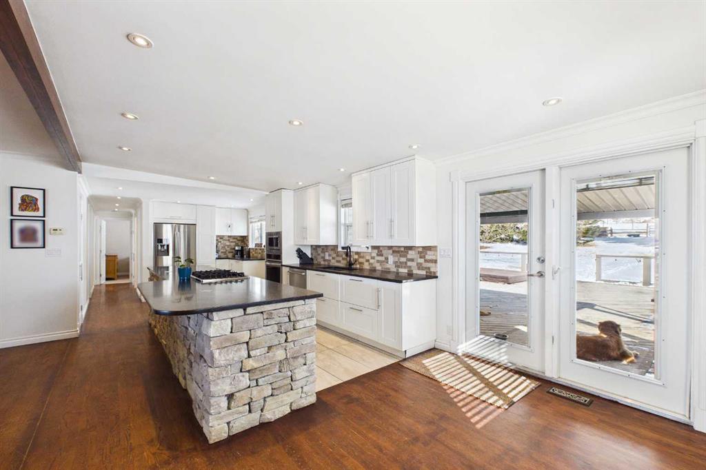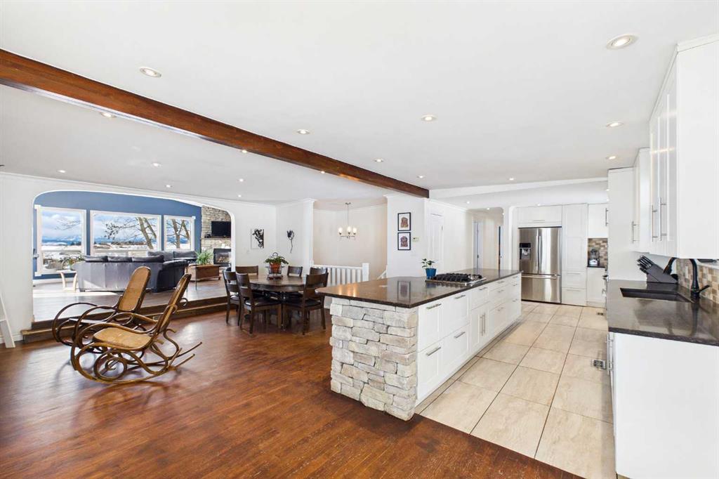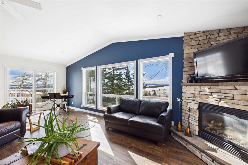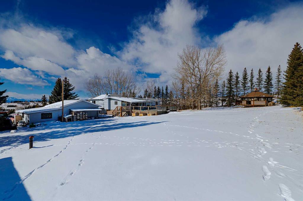 Welcome to an exceptional acreage opportunity offering space, privacy & breathtaking scenery.This beautifully renovated walkout bungalow sits on 8.06 picturesque acres & captures stunning, unobstructed mountain views right from every level of the home. Whether you’re looking for a peaceful country retreat, space for animals, or room for your family to grow, this property offers the perfect blend of comfort, functionality & rural charm. Inside, the home features 6 spacious bedrooms & a thoughtfully updated interior designed for modern living while embracing the warmth of country life. The kitchen speaks for itself with a massive island, quartz counters, tons of cabinetry, pantry & a coffee station area, This kitchen effortlessly blends highend modern utility with the rugged, organic textures of a mountain retreat. The open-concept design is defined by its crisp white cabinetry, dark stone surfaces, and a striking floor-to-ceiling fieldstone feature wall. All the bathrooms have been updated & in convenient locations. Large windows fill the home with natural light &perfectly frame the sweeping mountain views, creating a bright & inviting atmosphere throughout the main living areas. 3 cozy fireplaces bring ambience to every level of this home. 2 wood burning fireplaces and one natural gas fireplace. The layout offers both comfortable everyday living & plenty of space for entertaining family and friends. There are 3 decks to enjoy the outdoor life and views. The walk-out basement provides additional versatile living space with direct access to the outdoors, making it ideal for gatherings, extended family living, a recreation area, media room & a private retreat for guests. With multiple living spaces and generous bedroom sizes, the home offers flexibility to suit a variety of lifestyles. Step outside and experience the true beauty of acreage living. The 8.06-acre parcel offers wide open space, privacy & endless potential for outdoor enjoyment. The property has been home to cows, donkeys & chickens, making it well suited for hobby farming or those who appreciate the charm & rewards of rural life. There’s a 20x50ft garden area, gazebo and additional outbuildings. Imagine starting your mornings with coffee while watching the sunrise over the mountains & ending your evenings under expansive prairie skies. With incredible views, room for animals & a beautifully updated home already in place, this property offers a rare opportunity to enjoy the best of country living while still being within reach of nearby amenities. Acreage properties like this are increasingly hard to find offering the perfect combination of land, views & a move-in-ready home. Whether you’re dreaming of a hobby farm, a private family retreat, or simply more space to live and breathe, this remarkable property delivers a lifestyle that is truly special. Roof 15 years old, septic field/tank 2022, furnace 2023, H2O tank 2025