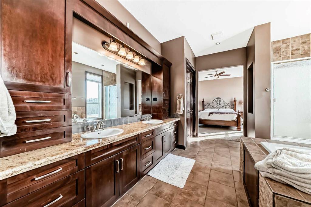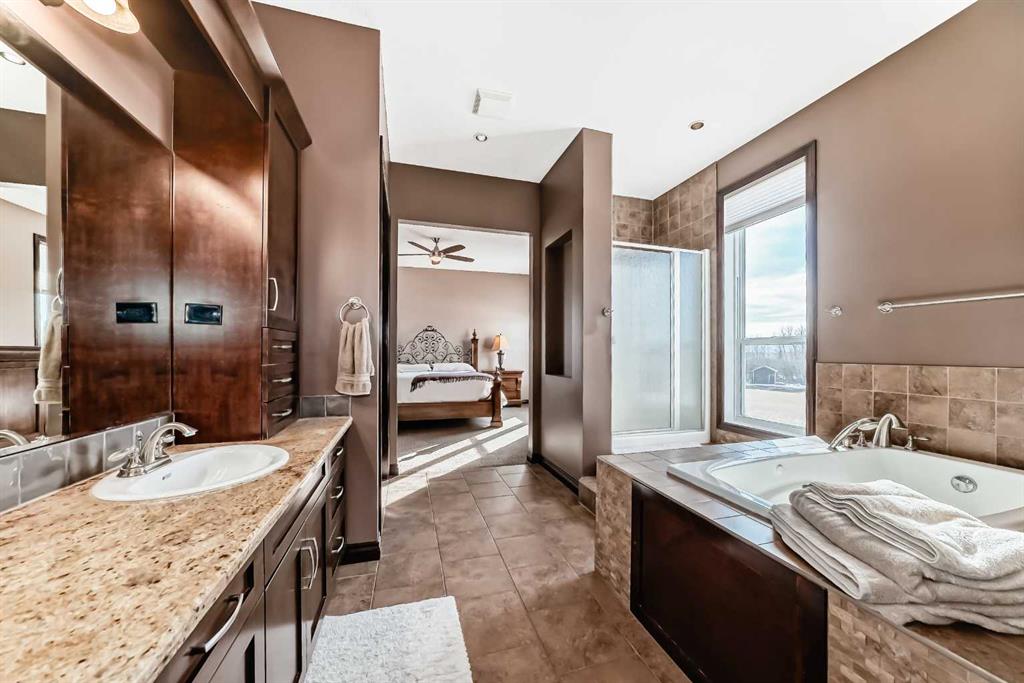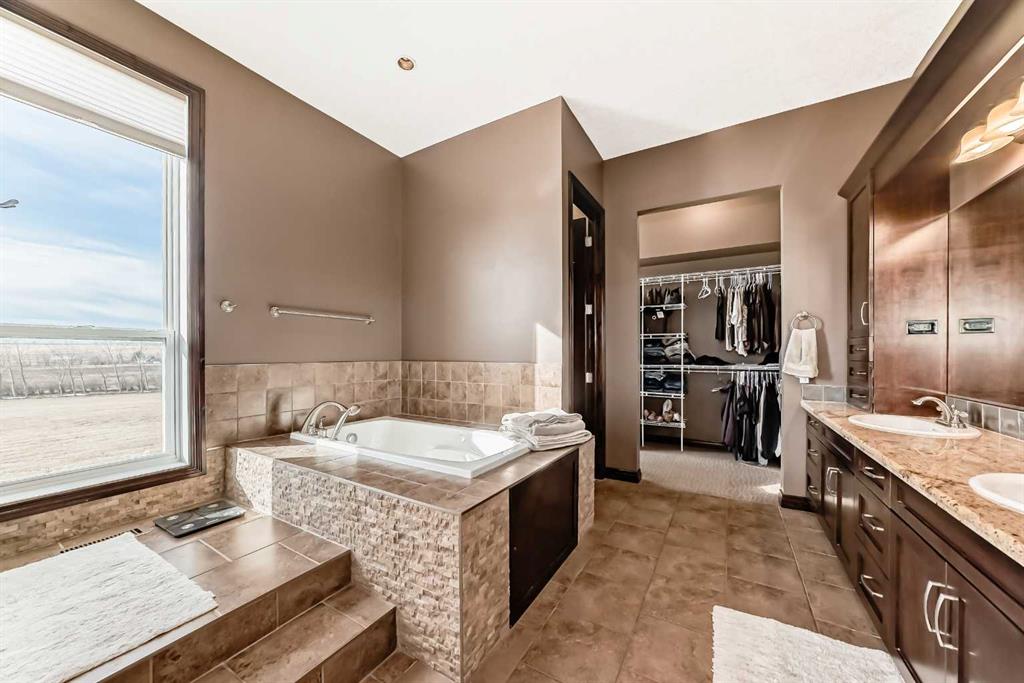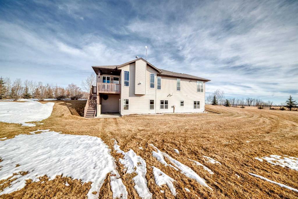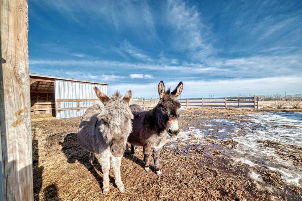 When you DREAM, do you dream of living a “City Close, Country Quiet” existence, on a 18 acre estate, boasting over 2100 sq ft (main level) and over 3650 total developed sq ft , just 1.5 miles from Calgary’s border, with MASSIVE upside as Calgary grows over the next few decades? WELCOME home. The heart of the home, the kitchen, opens up to the great room creating a massive open space. The kitchen is a chef’s delight with massive granite countertops, gas oven, upgraded stainless steel appliances, timeless real wood shaker cabinets, with undercabinet lighting and a gargantuan central island. The adjacent great room hosts the cozy gas fireplace and ample sitting area. Both the kitchen and great room have amazing views of the south and west of the yard, and are bathed in sunshine. Down the hall, past the child bedroom and 4 pce bath, we find the master retreat, with it’s decadent ensuite, and walk-in closet. Completing the main level is the rear laundry / mud room and is the main floor den / office, with it’s own door for work-from-home types that need to have clients stop by. The walkout lower level boasts a MASSIVE room, the width of the house, 2 bedrooms, and another 4 pce bath, all heated with hydronic in-concrete-slab heat (n. gas boiler). Outside you have oodles of outbuildings, hundreds of trees, and a private oasis tucked into the trees to the north. Seldom to you feel so completely private this close to a major city. If you love horses, donkeys, llama, or chickens it’s fully setup with large corral with shelter, tack and feed room, and 4 season livestock waterer. Adjacent is a fully insulated chicken coop with treed outdoor space for a happy flock. Fully fenced paddock for livestock, and mixed alfalfa / grass hayfield for cutting/grazing. Land is zoned R-RUR which gives lower taxation and provides for a wide range of potential options for development (accessory buildings, home based businesses, etc). A large part of the value is in the land, with 18.68 acres or over 813 000 sq ft; put another way, it would fit over 220 “average” new lots in Calgary. This much space is both a private oasis for you and your family, but also the long term redevelopment gain as HUNDREDS of families could eventually live here, post development. The mind boggles at the potential future returns. Although Calgary’s city limits are only 1.4 miles away, it’s possible Airdrie could annex first. It is a city close, but country quiet. Call your agent today to book a showing.