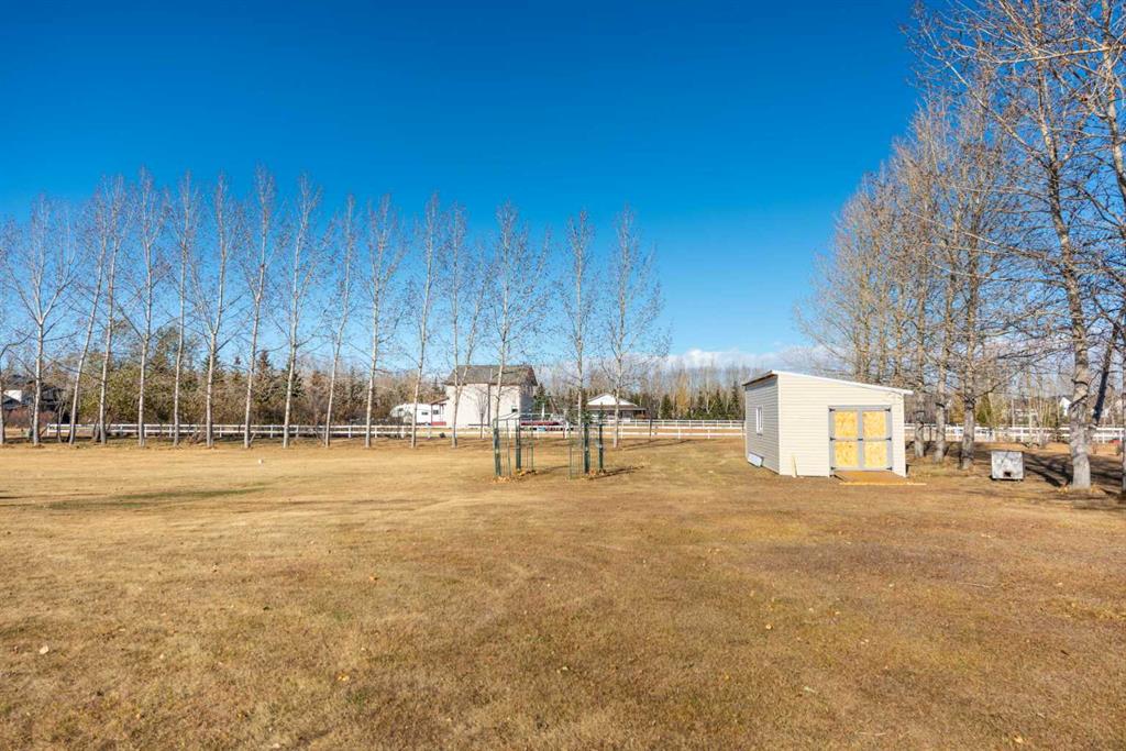 Outside, enjoy the massive back deck, expansive meadow surrounded by mature poplars, an oversized standalone storage shed, ample asphalt parking, and a dedicated RV pad.