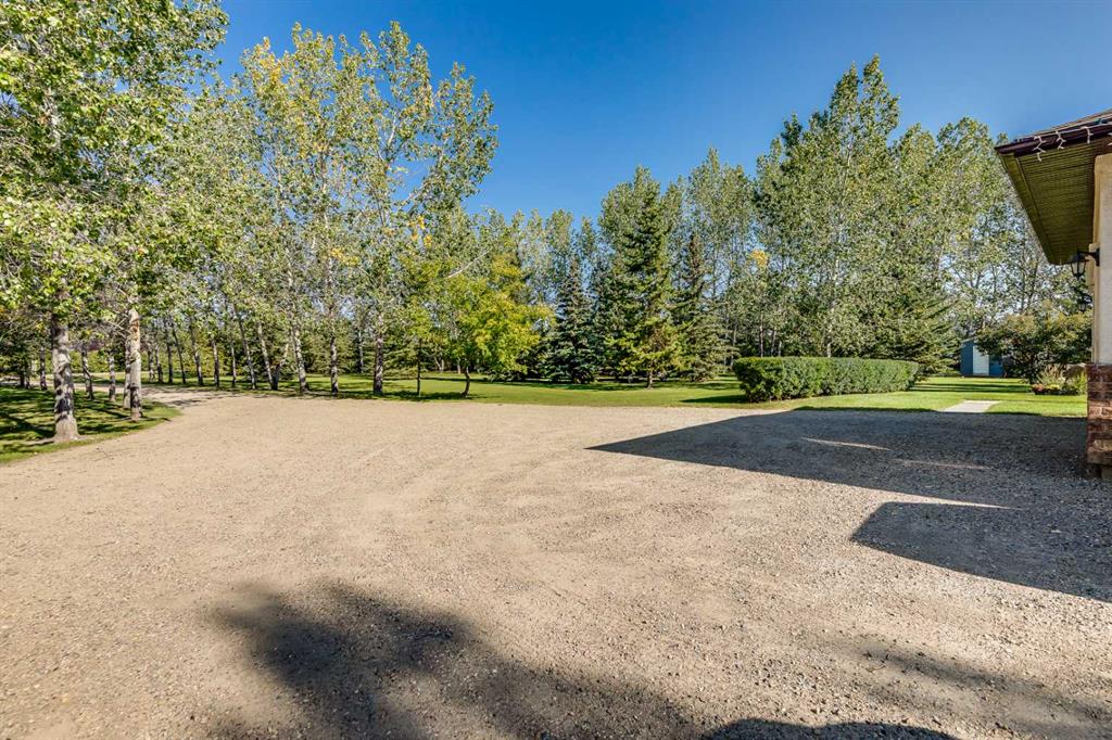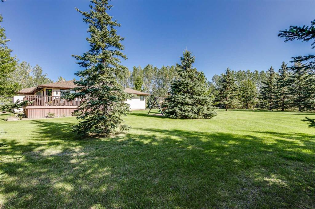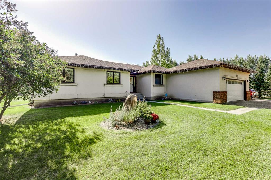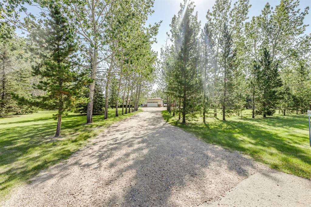 JUST LISTED! Set among rolling hills just southeast of Airdrie, this exceptional 5 bed, 4 bath contemporary bungalow rests on a meticulously landscaped acreage designed for privacy and tranquility. Over 400 mature trees, thoughtfully planted more than two decades ago, now surround the home in a natural, park-like sanctuary. Renovated with intention and quality, the residence blends modern design with timeless appeal. Notable updates include: triple-pane windows, Brazilian teak hardwood flooring a chef-inspired kitchen with custom cabinetry, quartz countertops and premium stainless steel appliances. The main-floor primary suite offers a spa-like escape with double sinks, a freestanding soaker tub and a separate glass shower. The fully developed basement boasts a spacious recreational space, 2 large bedrooms, full bath and loads of storage. Completing the property are an attached, heated double garage, a high-producing, water well and a recently updated septic tank and field and no Poly-B, ensuring independence, efficiency, and peace of mind. All systems have been regularly maintained and well cared for. Acreage properties of this caliber are rarely available.