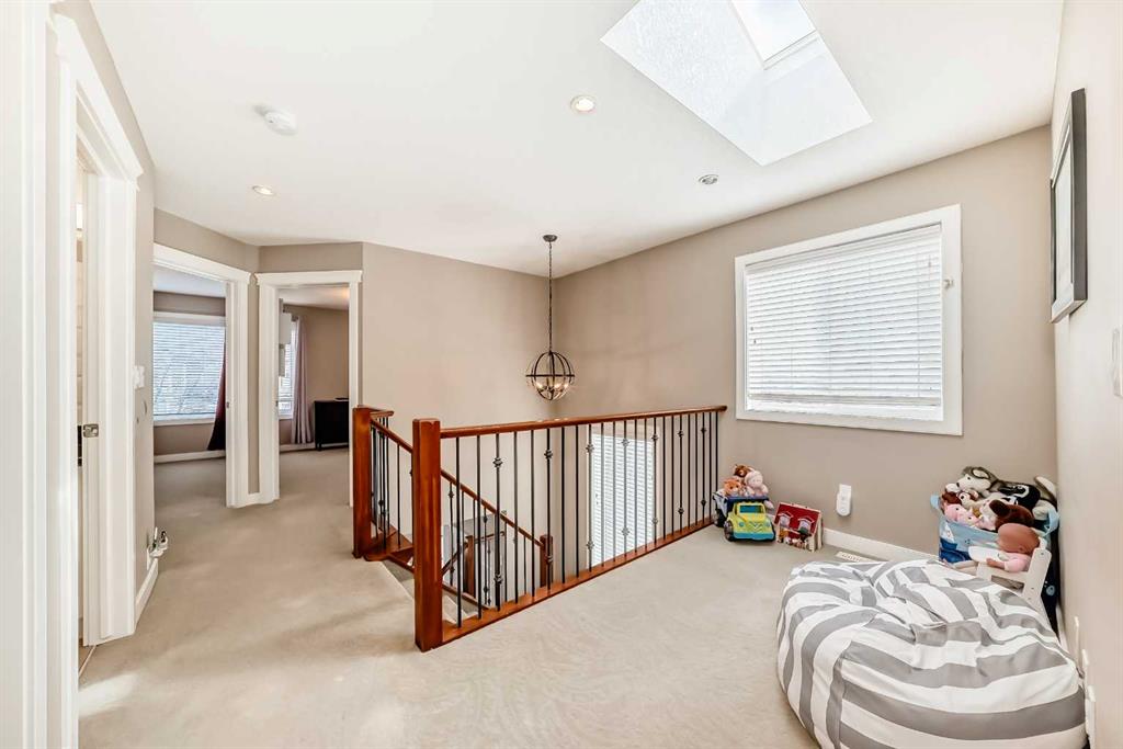 Welcome to a beautifully located infill in the heart of Killarney. This home is well located in close proximity to a number of schools and quick access onto Crowchild Trail. The main floor is spacious with 2 living rooms. One has its own gas fireplace. There is dark cherry hardwood throughout the entire main level. The kitchen is large with granite counter tops, white cream cabinets, and SS appliances. The upper level has 3 bedrooms, a small bonus room and a large laundry room area. The primary bedroom is huge and can accommodate large pieces of furniture. There is a walk in closet along with a 4 piece ensuite. There are 2 kids bedrooms on the east side of the upper level. The lower level was professionally completed with permits in 2021. There is a large rec room with a dry bar w/ granite counter top. There is a huge bedroom with high ceilings which is perfect for a grandparent or teenager. There is a 4 piece bathroom as well. The home has an AC unit. The backyard faces west with a large 20x8ft deck. The garage is a good size at 19×19 sq ft. Home is well priced!