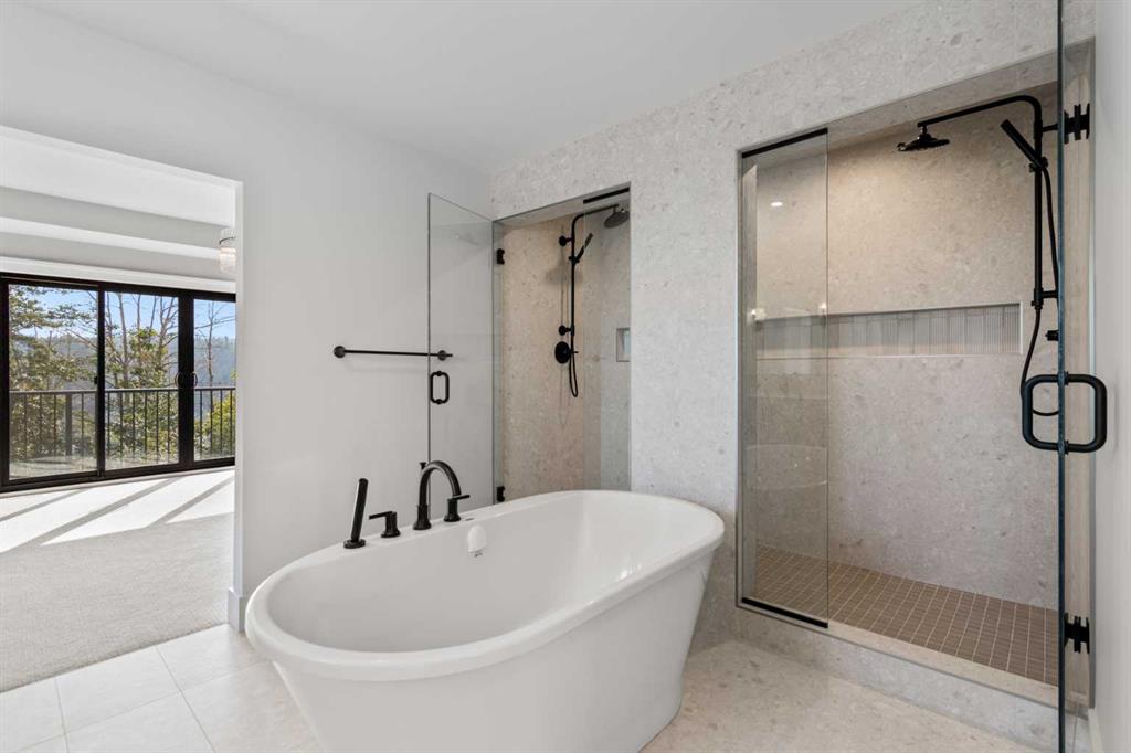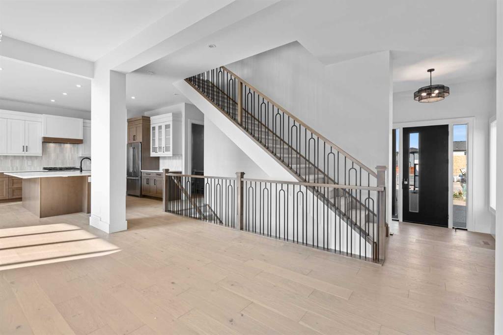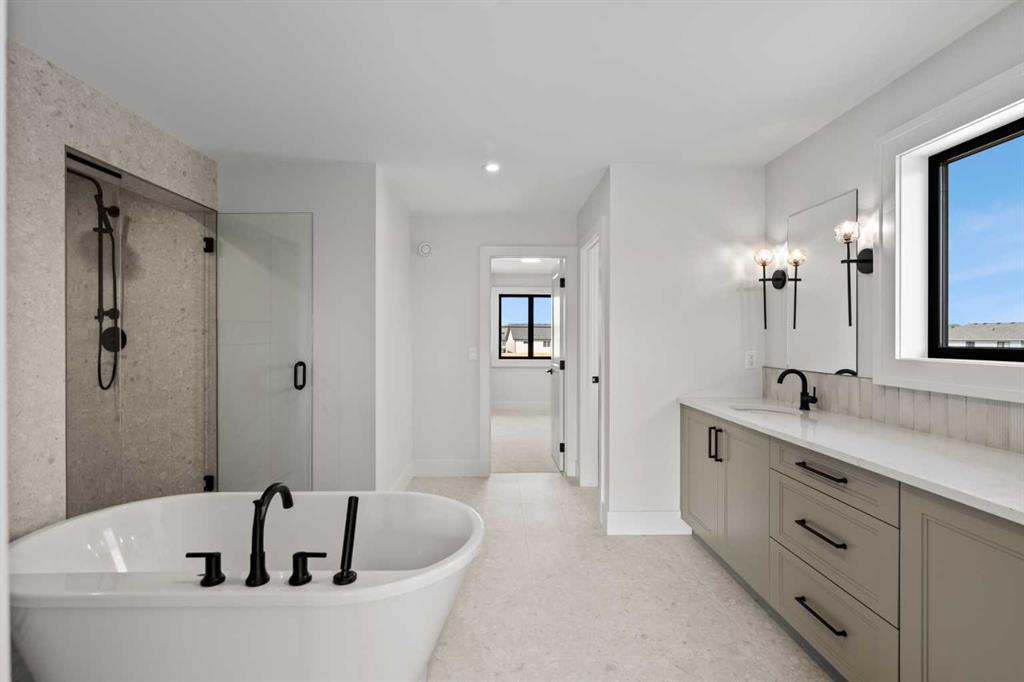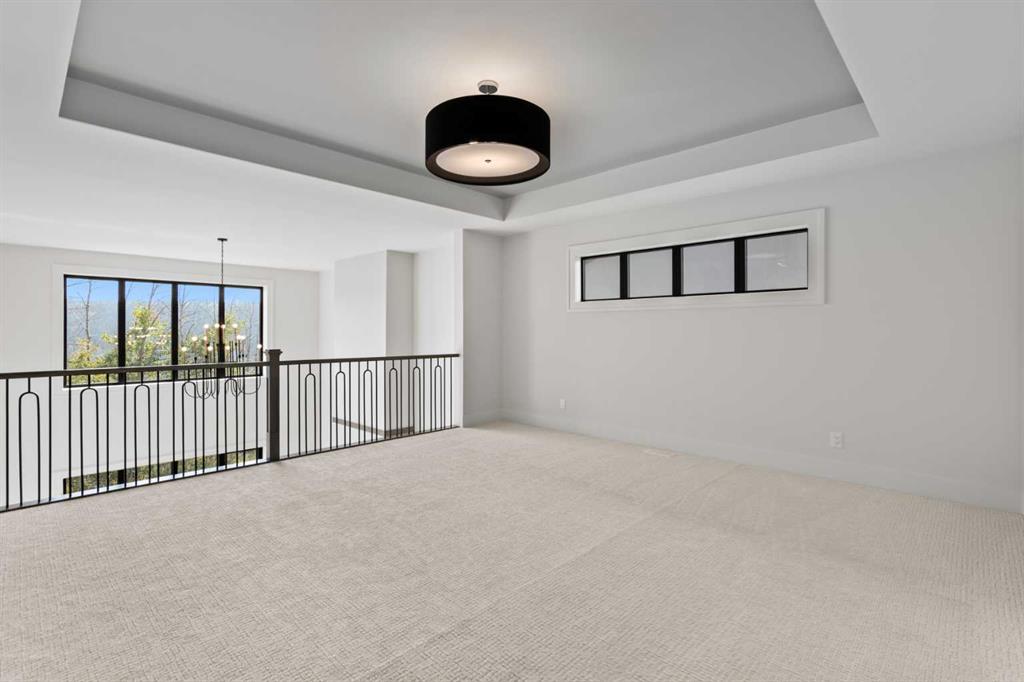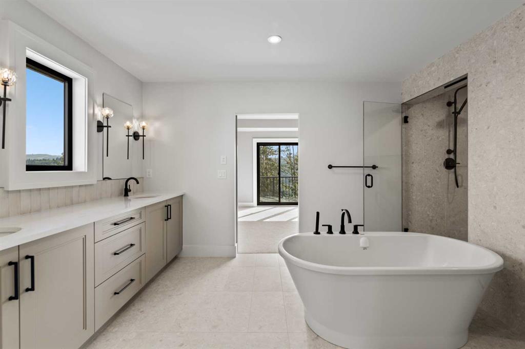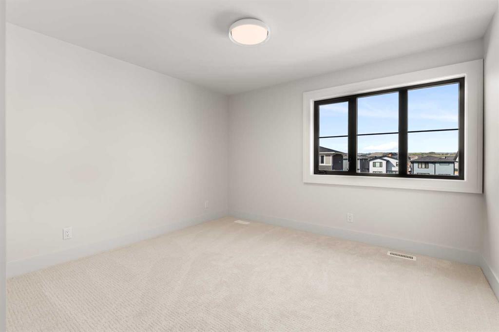 5 BEDS | 4.5 BATHS | 5,054 TOTAL SQ.FT. | RIVER VALLEY VIEWS | PREMIUM WALKOUT LOT | LUXURY FINISHES | Backing directly onto the Bow River valley on a premium south-exposed walkout lot, this brand-new luxury home by Crystal Creek Homes offers over 5,000 sq ft of finished living space. A soaring open-to-above great room and full-width covered deck frame unobstructed valley vistas, the chef’s kitchen pairs two-tone cabinetry with a premium appliance package, and a main-floor office lets you work without leaving the view. Upstairs, the south-facing primary retreat features a private balcony, luxurious ensuite with freestanding tub and oversized tiled shower, and a walk-in closet that feels more like a dressing room. While three additional bedrooms share a Jack-and-Jill bath and a separate full main bath. The walkout level hosts a bright rec area, games space, wet bar and fifth bedroom, all stepping out to a sheltered patio where you can watch eagles glide over the river. Wide-plank hardwood, curated tiles and warm neutral palettes add a relaxed elegance that feels at one with the setting. And the oversized triple garage keeps bikes, kayaks and gear at the ready for weekend adventures on nearby pathways. Complete with A/C and full landscaping, this is a rare opportunity to own new construction with full builder warranty in Rockland Park – Calgary’s next great master-planned community. With future parks, playgrounds, access to the Rocky Mountains and a private recreation facility with pool. Book your private tour today