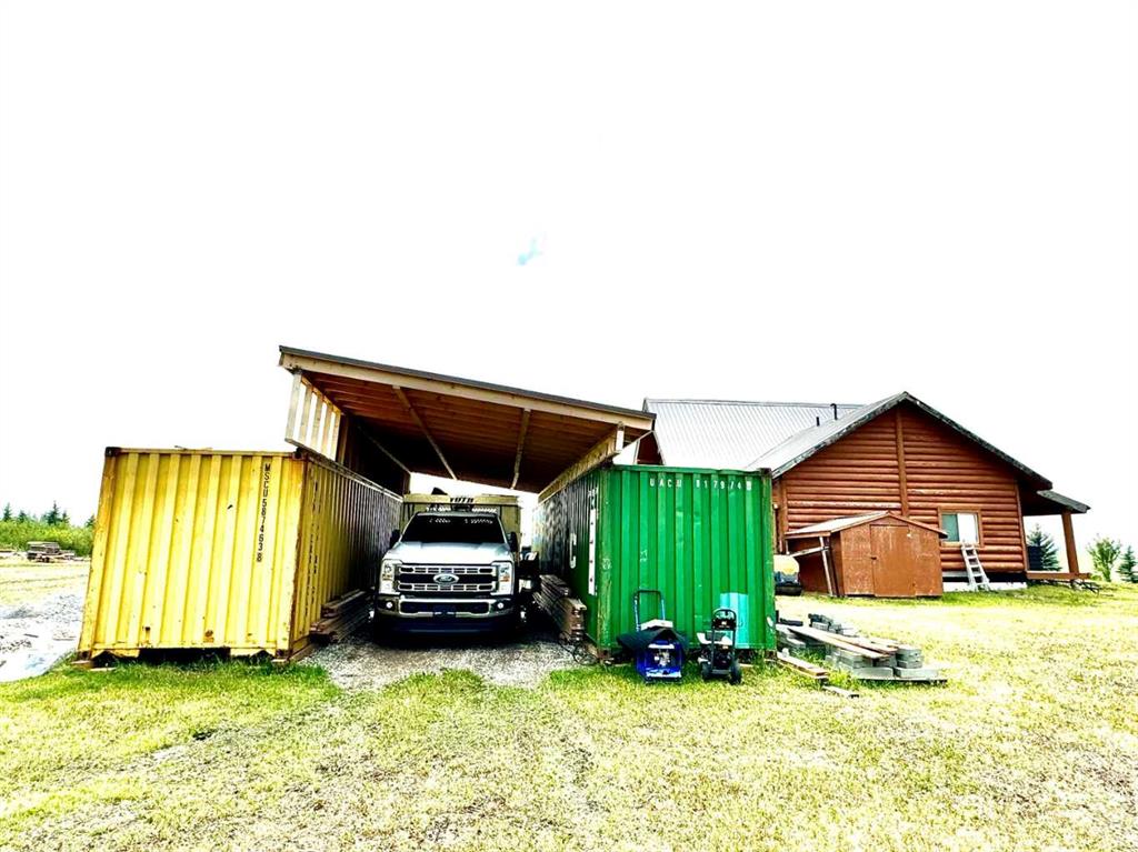 * Two 40 ft sea containers with a 2-car parking shed built in between — perfect for secure storage and covered parking.