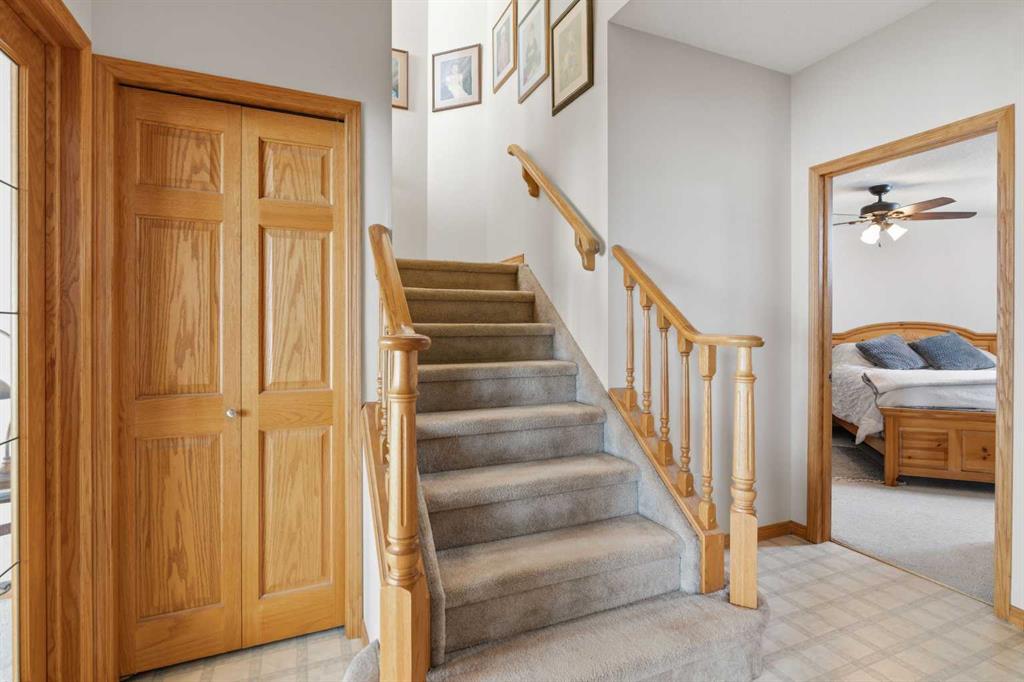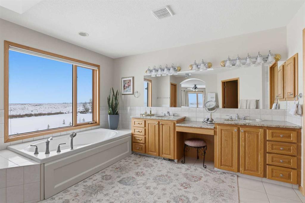 Set against the breathtaking backdrop of the Rocky Mountains, this exceptional Country Lane Estates residence offers a rare blend of privacy, space, and refined rural living just minutes from Calgary. Positioned on 2 pristine acres, the home captures the essence of Springbank—wide open skies, uninterrupted mountain vistas, and a sense of calm that’s increasingly hard to find. With over 4,000 sq. ft. of thoughtfully designed living space, the property balances family functionality with elevated comfort, featuring generous gathering areas, quiet workspaces, and seamless indoor-outdoor flow. This well-built home features oak hardwood flooring and doors, four bedrooms with easy potential for a fifth, three full bathrooms, and an oversized heated triple garage. Recent upgrades—including a new roof in 2022 and fresh exterior paint in 2023—provide added peace of mind. The main floor offers a flexible office or dining space, a bright kitchen and living areas oriented to capture the mountain views, plus a full bath, bedroom, and well-planned mudroom/laundry. Upstairs, the primary suite includes a walk-in closet, a luxurious ensuite and is completed with a second bedroom. The walkout lower level is ideal for teens or guests, with two bedrooms, a full bath, a spacious recreation area with wet bar, and direct access to a 3-season room and private hot tub. Every feature has been thoughtfully integrated to support a seamless, elevated lifestyle in one of Springbank’s most desirable communities. With close proximity to great schools, both public and private, what more could you want in your new home.