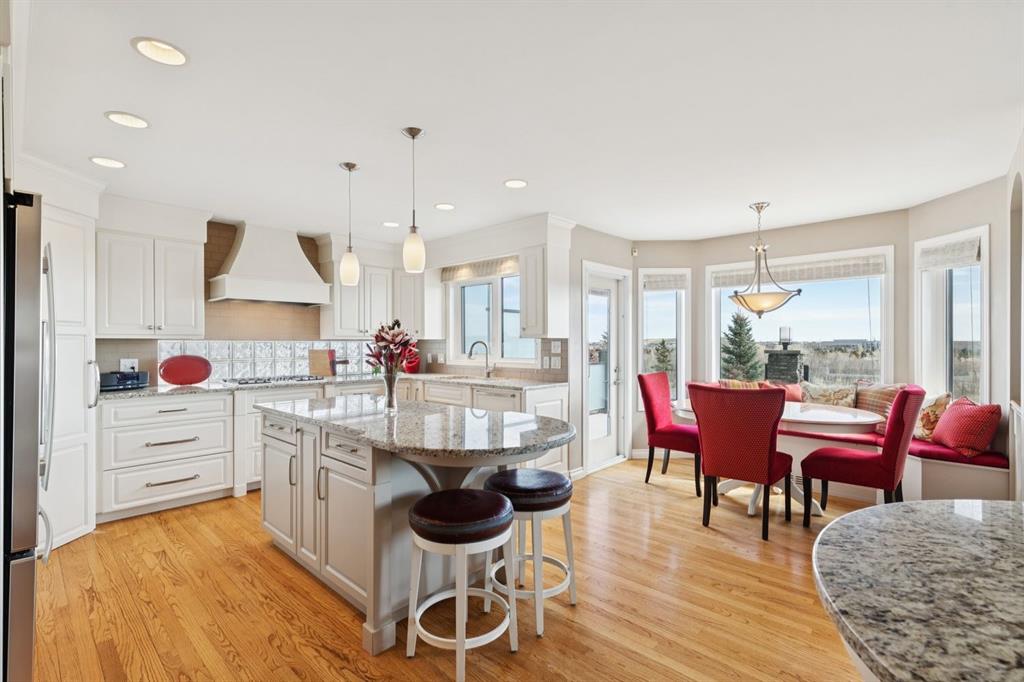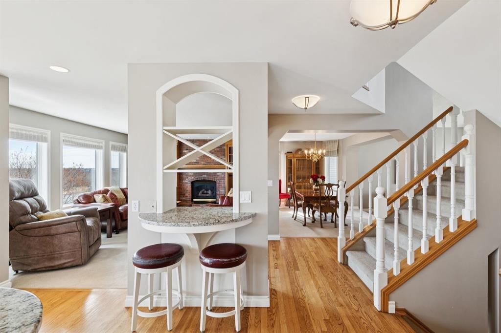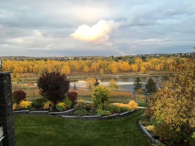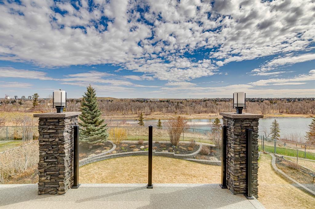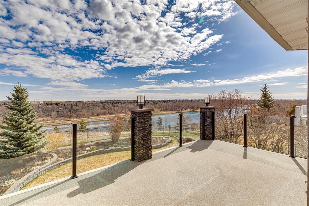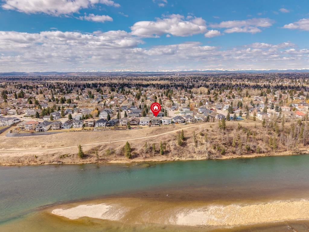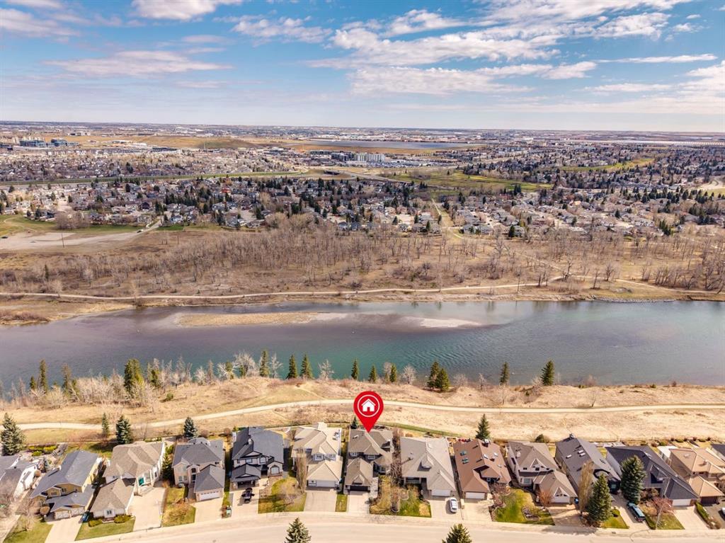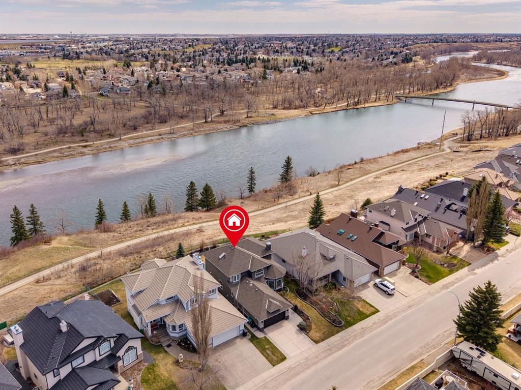 Perfectly positioned on a rare and expansive 52′ Southwest fronting lot, this exceptional walkout residence offers a refined balance of space, design, and an unrivalled natural setting. Backing directly onto the Bow River and the extensive pathway system, with Douglas Glen Park just beyond, this property delivers uninterrupted views and immediate access to nature, an increasingly rare offering in Calgary’s southeast. A gracious and spacious foyer sets the tone upon entry, welcoming you into a thoughtfully designed main floor where comfort meets sophistication. A sunken formal living room with a soaring vaulted ceiling creates architectural interest, while an elevated formal dining room provides the perfect setting for hosting. The heart of the home is the inviting family room, anchored by a gas fireplace with brick surround and custom oak built-ins, seamlessly connected to the kitchen and breakfast nook. Designed for both function and style, the kitchen features granite countertops, a central island with seating, glass block accents that invite in natural light, and a corner pantry. Premium appliances include a gas cooktop, panelled Bosch dishwasher, and Jenn-Air wall oven. From the breakfast nook, step onto the upper low maintenance deck with glass railing; for unobstructed sweeping river valley and park views. A main floor home office with built-in desk, along with a combined mudroom and laundry area complete with sink, offer everyday practicality connecting directly to the oversized, heated double attached garage. Upstairs, an open-to-below design enhances the sense of space. Three generously sized bedrooms include a luxurious primary retreat, complete with a dedicated sitting area oriented toward the river views. The walk-in closet features custom shelving, while the relaxing 6pc ensuite boasts heated floors, a glass-enclosed shower with body sprays, and a deep jetted soaker tub. A full 3pc bathroom with skylight serves the additional bedrooms. The fully developed walkout lower level is equally impressive, offering plush carpeting, a sprawling recreation room with built-in media wall, and a striking three-way fireplace that connects to a versatile games area. This space transitions seamlessly to a covered and screened-in patio/sunroom making it perfect for year round enjoyment or a future hot tub retreat. A fourth bedroom and full bathroom complete the level. Gardening enthusiasts will appreciate the elegant raised garden beds, showcasing a vibrant array of lush shrubbery and blooms in this serene, meticulously landscaped backyard. Backing onto the treed beauty of Douglas Glen Park and the Bow River, this private retreat is perfect for quiet moments or unforgettable entertaining. This is a rare opportunity to secure a premium river-backing property on a wide, estate-calibre lot, offering a meticulously planned layout and an exceptional indoor/outdoor lifestyle in one of Calgary’s most naturally beautiful settings.