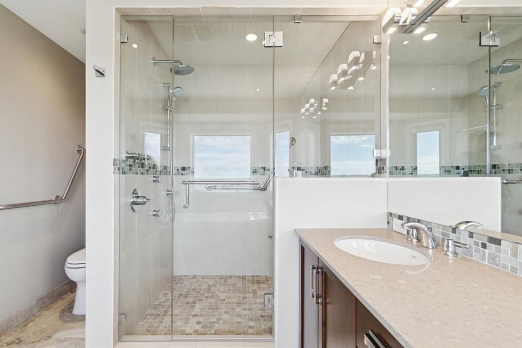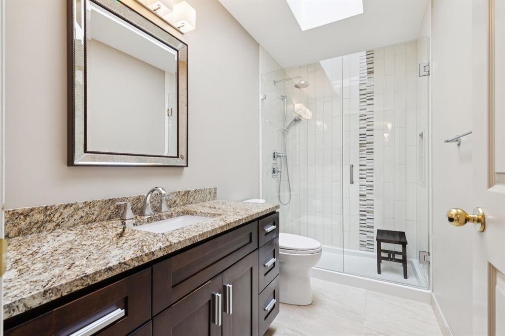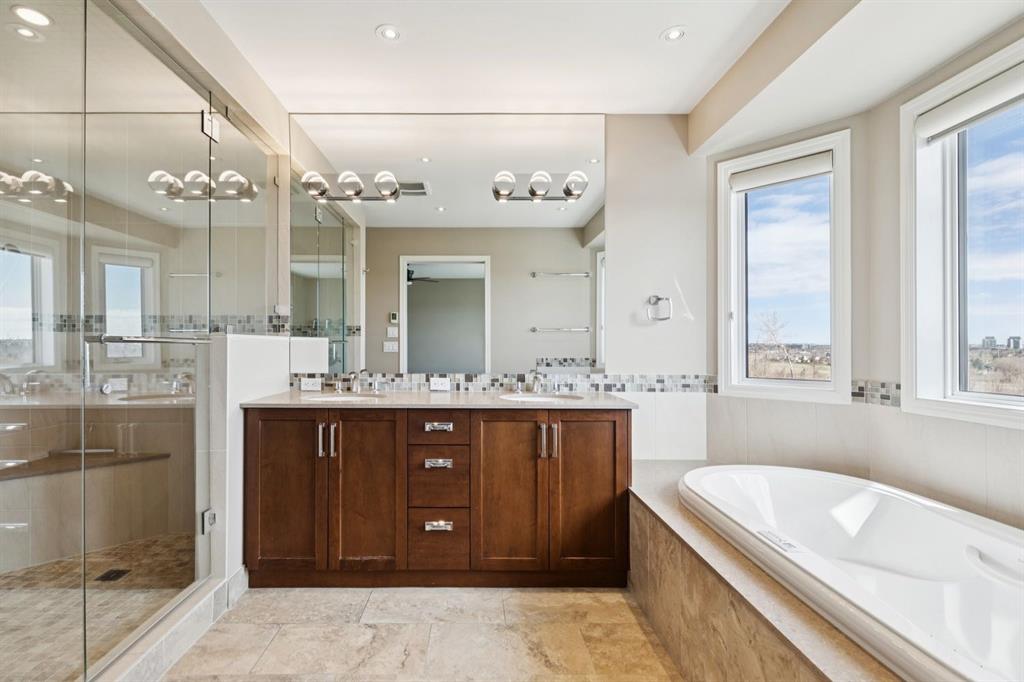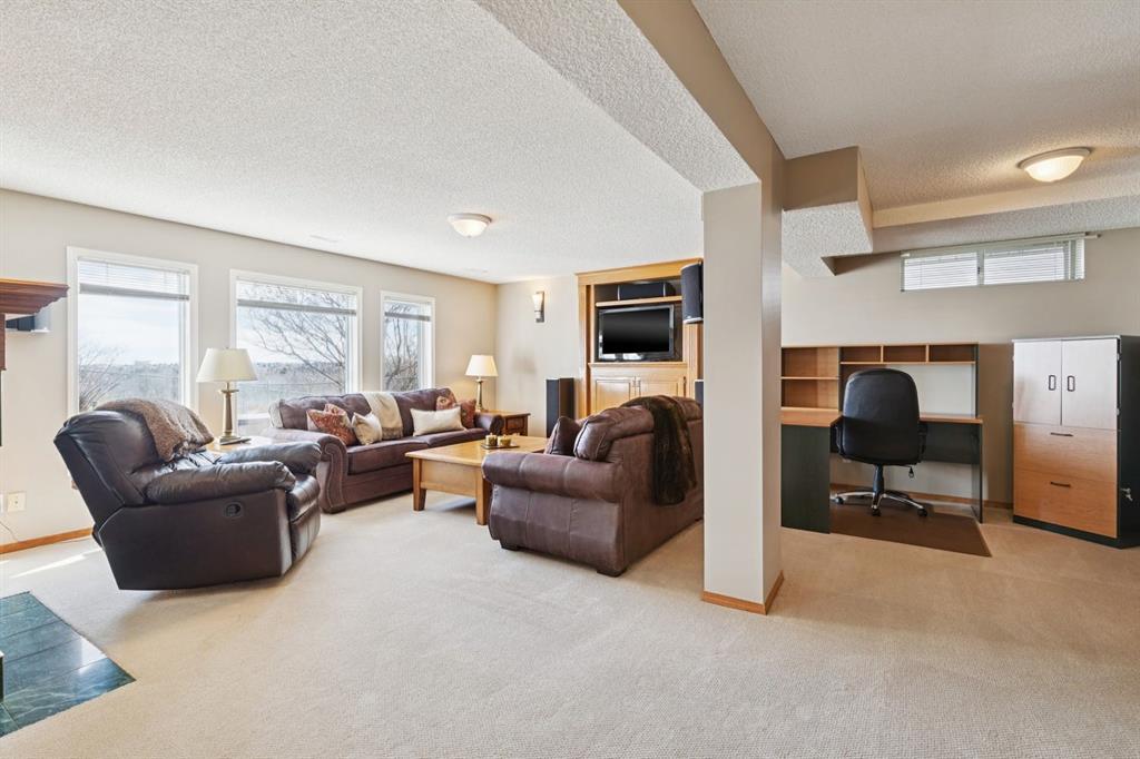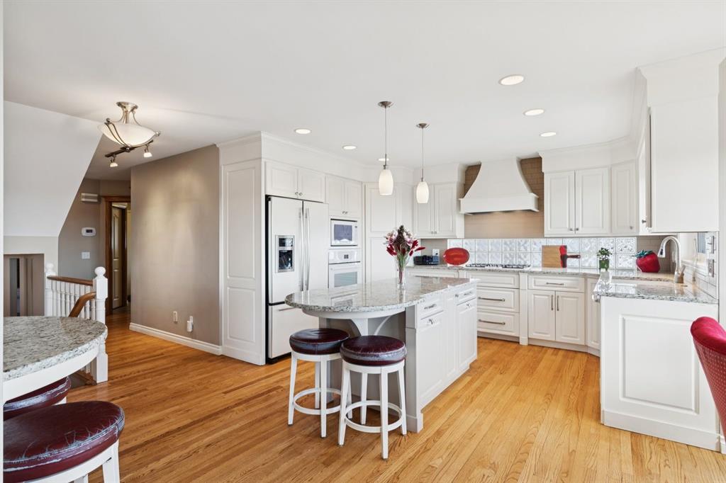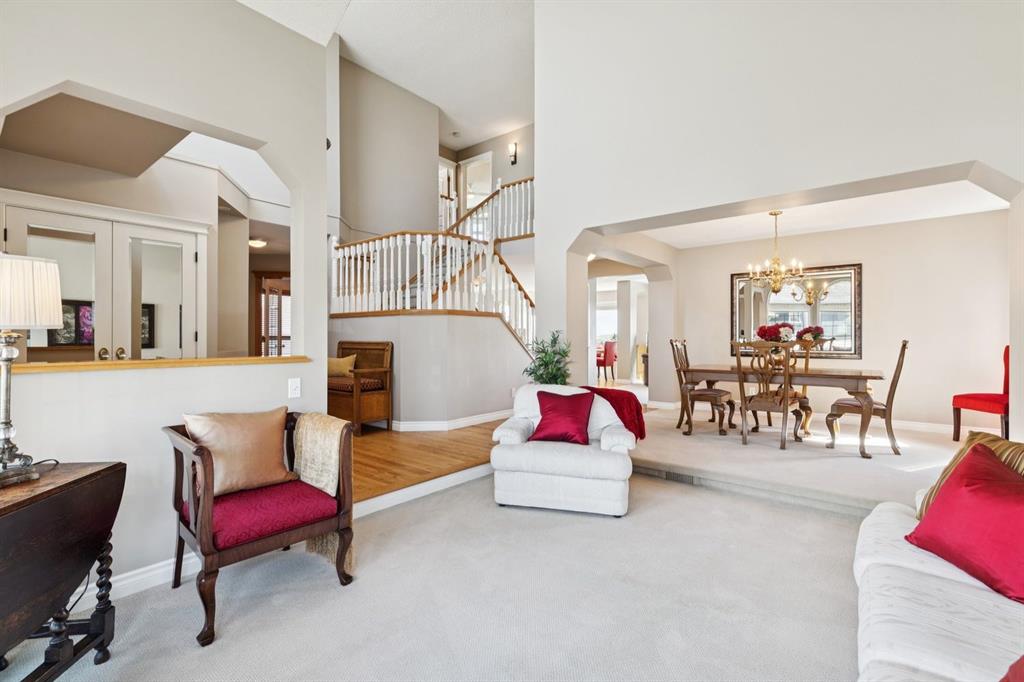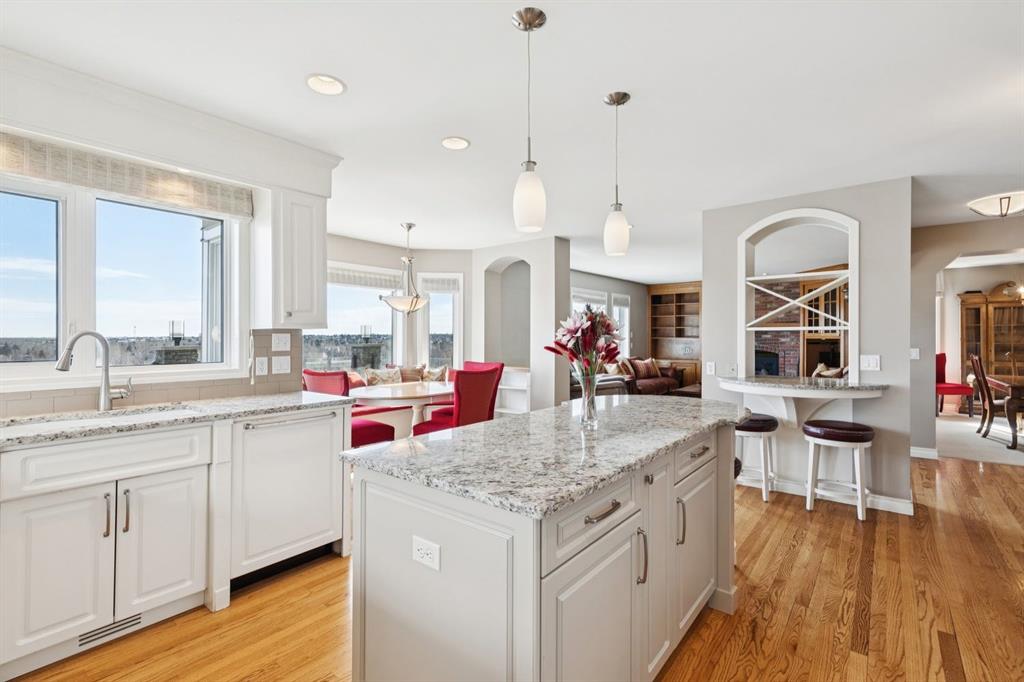 Perfectly positioned on a rare and expansive 52′ Southwest fronting lot, this exceptional walkout residence offers a refined balance of space, design, and an unrivalled natural setting. Backing directly onto the Bow River and the extensive pathway system, with Douglas Glen Park just beyond, this property delivers uninterrupted views and immediate access to nature, an increasingly rare offering in Calgary’s southeast. A gracious and spacious foyer sets the tone upon entry, welcoming you into a thoughtfully designed main floor where comfort meets sophistication. A sunken formal living room with a soaring vaulted ceiling creates architectural interest, while an elevated formal dining room provides the perfect setting for hosting. The heart of the home is the inviting family room, anchored by a gas fireplace with brick surround and custom oak built-ins, seamlessly connected to the kitchen and breakfast nook. Designed for both function and style, the kitchen features granite countertops, a central island with seating, glass block accents that invite in natural light, and a corner pantry. Premium appliances include a gas cooktop, panelled Bosch dishwasher, and Jenn-Air wall oven. From the breakfast nook, step onto the upper low maintenance deck with glass railing; for unobstructed sweeping river valley and park views. A main floor home office with built-in desk, along with a combined mudroom and laundry area complete with sink, offer everyday practicality connecting directly to the oversized, heated double attached garage. Upstairs, an open-to-below design enhances the sense of space. Three generously sized bedrooms include a luxurious primary retreat, complete with a dedicated sitting area oriented toward the river views. The walk-in closet features custom shelving, while the relaxing 6pc ensuite boasts heated floors, a glass-enclosed shower with body sprays, and a deep jetted soaker tub. A full 3pc bathroom with skylight serves the additional bedrooms. The fully developed walkout lower level is equally impressive, offering plush carpeting, a sprawling recreation room with built-in media wall, and a striking three-way fireplace that connects to a versatile games area. This space transitions seamlessly to a covered and screened-in patio/sunroom making it perfect for year round enjoyment or a future hot tub retreat. A fourth bedroom and full bathroom complete the level. Gardening enthusiasts will appreciate the elegant raised garden beds, showcasing a vibrant array of lush shrubbery and blooms in this serene, meticulously landscaped backyard. Backing onto the treed beauty of Douglas Glen Park and the Bow River, this private retreat is perfect for quiet moments or unforgettable entertaining. This is a rare opportunity to secure a premium river-backing property on a wide, estate-calibre lot, offering a meticulously planned layout and an exceptional indoor/outdoor lifestyle in one of Calgary’s most naturally beautiful settings.