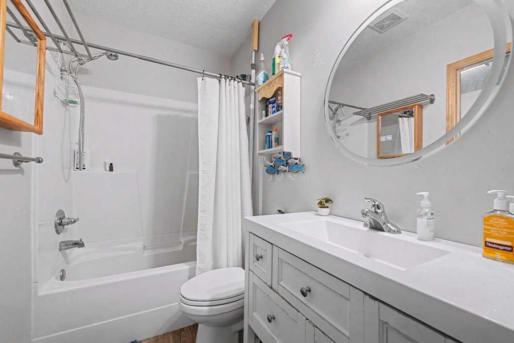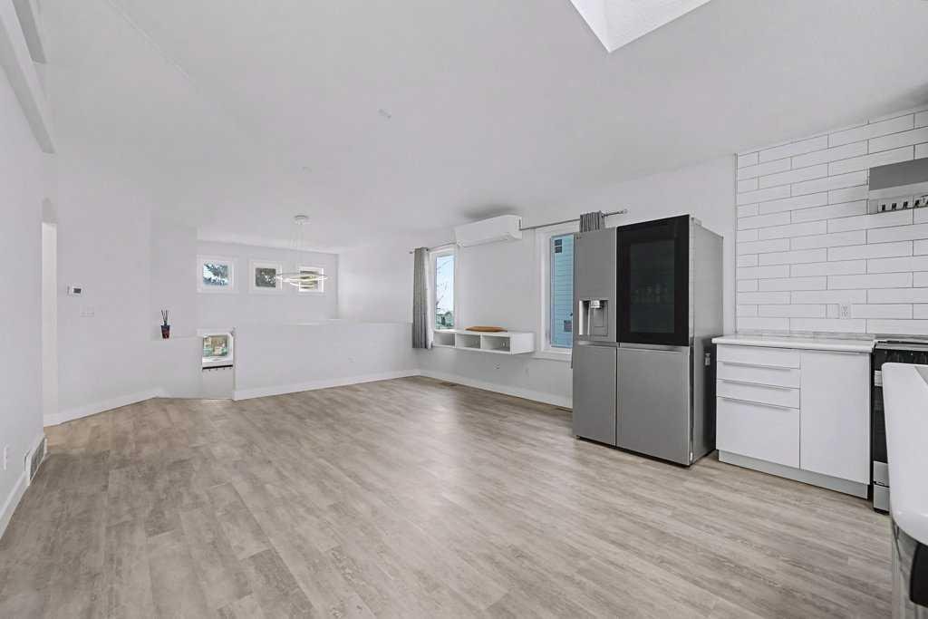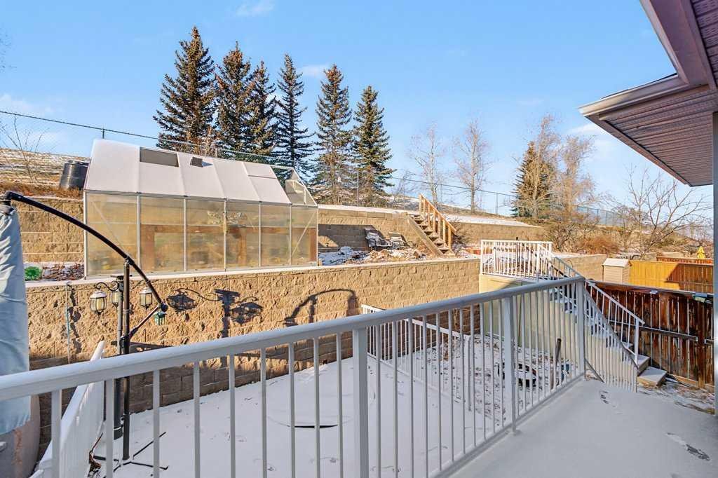 Such a unique “one-of-a-kind” home….. 5 bedroom, 3 bathroom home with recent renovations – backing onto Green Space – Sunny West Exposure with a large deck! Nearly 2200 sq. ft. of “Air Conditioned” comfort – includes a Legalized 2 bedroom basement suite! Be welcomed into the spacious “open plan” design with soaring vaulted ceilings with a large skylight throughout the living room, plus all new windows throughout this home! Much natural light abounds here! All wide vinyl plank flooring on main level! The chef’s gourmet kitchen boasts newer white lacquer smooth-finish cabinetry with quartz counters and large island with a stainless steel under mount sink, new backsplash, new high-end fridge and new stove, stylish hood fan, plus Bosch stainless steel dishwasher. The “eat-in” kitchen nook also provides adjacent access to the sunny west fibreglass deck! This unique home offers a spacious main level master suite with a 4 pc ensuite – plus walk-in closet, 2 additional bedrooms and another full 4 pc bathroom, plus a main level laundry. The 2 bedroom legalized basement suite offers 2 bedrooms, a full 4 pc bathroom, large living area, separate laundry room, plus storage area. The greenhouse offers the perfect garden oasis, the fire pit and apple trees add to the overall ambience and this lot has privacy galore. New roof and new hot water tank. Double attached front drive garage, plus an oversized driveway for 3 cars! Quiet crescent location within walking distance to Transit #3301, Schools, Park, Movie Theatre , Vivo, Superstore and all amenities.