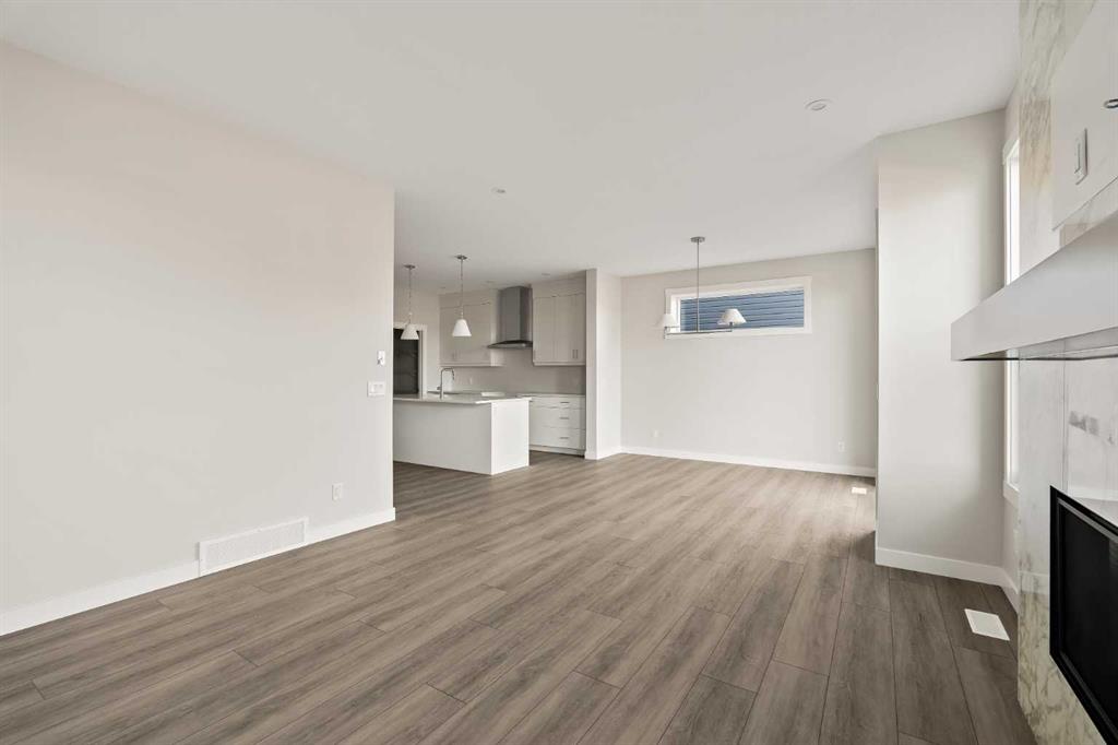 Introducing the Purcell 26 in Livingston – a beautifully curated, move-in-ready home that blends thoughtful design with everyday functionality. Professionally styled with timeless finishes and elevated details, this residence offers versatility for growing families, multigenerational households or investors seeking a polished, turnkey property. With 2,425 sq. ft. of developed living space, the layout provides a flex room, two distinct living areas, three bedrooms, 2.5 bathrooms and an undeveloped basement awaiting your vision. Luxury Vinyl Plank flooring stretches across the main level, setting the tone for a durable yet refined interior. At the heart of the home is a striking kitchen complete with a built-in range hood, island microwave, quartz island and upgraded custom lighting. A full walk-through pantry connects seamlessly to an oversized mudroom, adding everyday convenience and storage. The dining and living spaces span the rear of the home, framed by expansive windows that invite natural light throughout the day. A central gas fireplace with a tiled surround is flanked by symmetrical windows, creating a beautifully balanced focal point. A grand front foyer, dual closets and a 2-pc powder room complete the level. The staircase, finished with natural wood and iron railing, leads to an upper level designed for separation and comfort. A central bonus room sits between the secondary bedrooms and the private primary retreat. The primary suite features generous windows for plenty of natural light, along with a spa-inspired ensuite offering a tiled walk-in shower, a soaker tub, dual vanities and a private water closet. Two additional bedrooms, a 4-pc bathroom and a laundry room with counter space complete the upper floor. A separate side entrance provides direct access to the basement, making it well suited for future development. This brand-new property is move-in ready and includes Alberta New Home Warranty, giving you confidence and peace of mind as you settle into your new home. A rare opportunity to own a beautifully designed Purcell 26—crafted for comfort, style and long-term living.