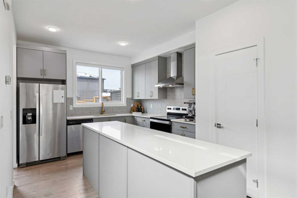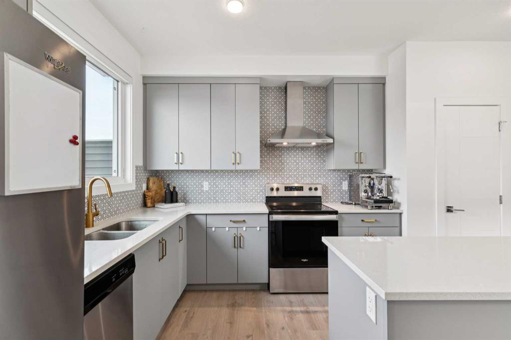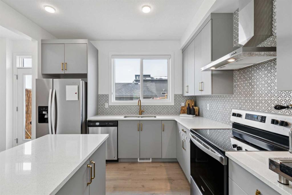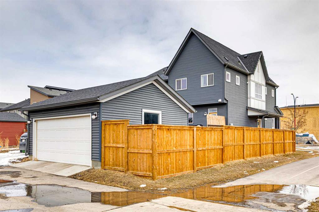 OPEN HOUSE – Sunday April 19, 12:00-2:00 – Welcome to this upgraded former Homes By Avi showhome in SW Calgary, perfectly positioned on a corner lot in Belmont with a heated double detached garage and a larger-than-average fully fenced yard. Filled with natural light from its additional windows, this home immediately stands out with a bright, open-concept layout and thoughtful design throughout. The main level offers 9’ ceilings, upgraded LVP flooring, built-in speakers, and a seamless flow between the living, dining, and kitchen spaces — ideal for both everyday living and entertaining. The kitchen is well-appointed with quartz countertops, stainless steel appliances, a full-height cabinetry package, a large island, and a proper hood fan — combining both function and style. Upstairs, the layout is both practical and comfortable, featuring 3 bedrooms, a bonus room, and convenient upper-level laundry. The primary suite offers vaulted ceilings, a walk-in closet, private ensuite, and a Juliet balcony — a rare and standout feature in this price range. The separate side entrance and basement rough-ins provide excellent potential for future development (subject to city approval), making this a strong option for both homeowners and investors. Outside, enjoy a fully landscaped yard, rear deck with BBQ gas line, and additional side yard space — perfect for pets, kids, or added flexibility for future use. Additional highlights include central air conditioning, a high-efficiency furnace, triple-pane windows, smart garage capability, and whole-home speaker wiring. Ideally located with quick access to Stoney Trail and Macleod Trail, this home is surrounded by parks, pathways, nearby pond access, and future community amenities — offering both convenience and long-term value.