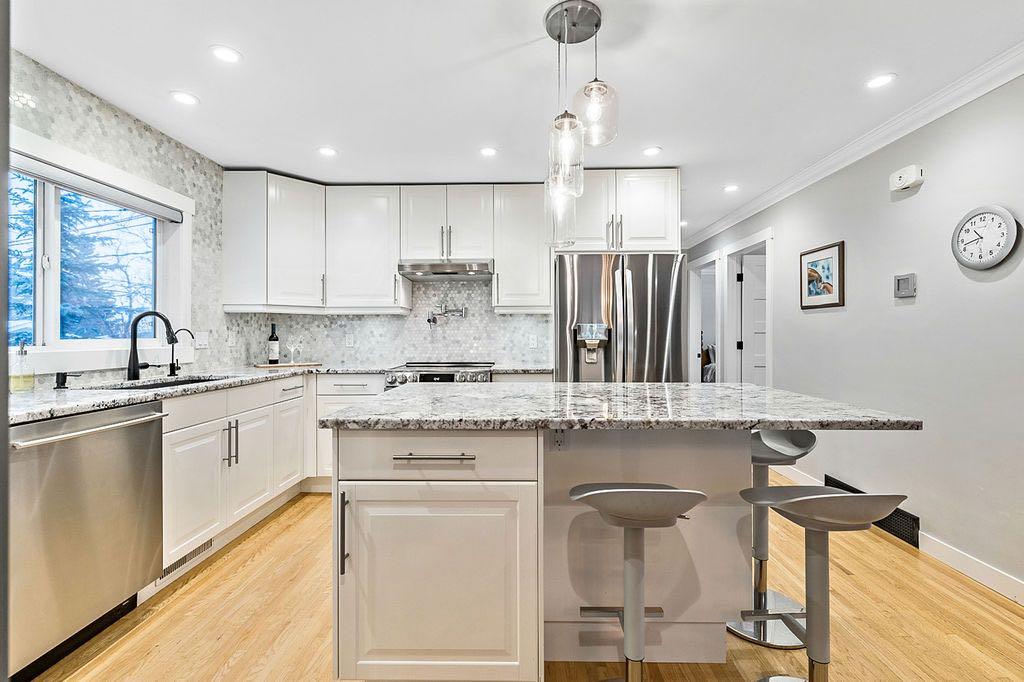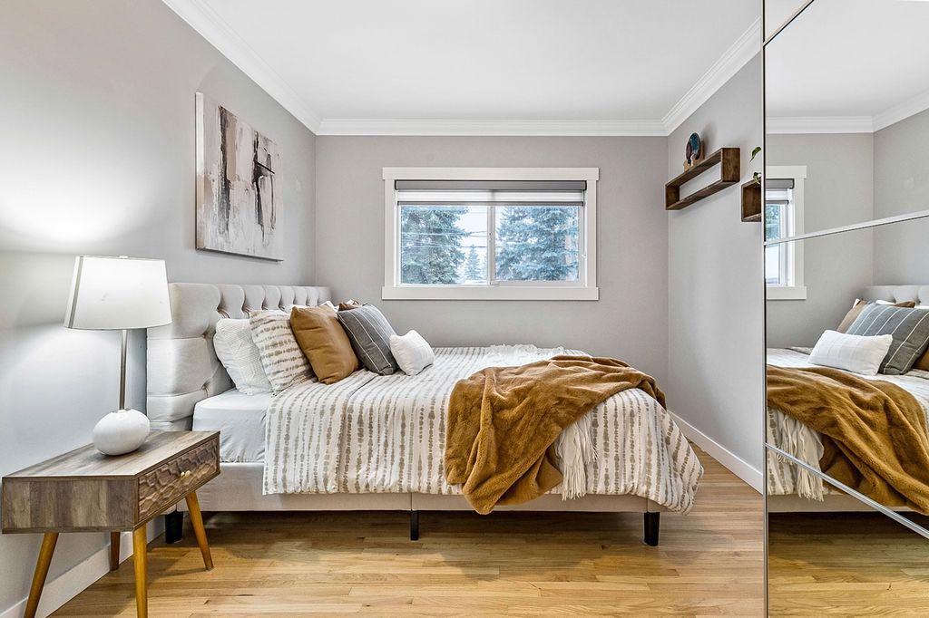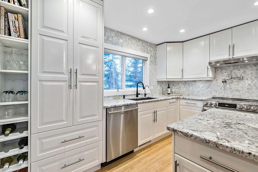 What a location for this beautiful, thoughtfully renovated bungalow in the north portion of Wildwood. Close to the ridge in Wildwood with Edworthy Park and the Bow river an easy walk away. One of Calgary’s most sought out outdoor area for dog owners and hikers alike. An inviting home showing pride of ownership with the perfect main floor plan for entertaining, gourmet kitchen with granite counter tops, soft close drawers and hardwood throughout. Central air conditioning keeps things cool in summer and the gas fireplace offers cozy heat in the downstairs family room for cold winter months. Three bedrooms on main plus one large bedroom down with another flex room that could be yet another bedroom or a great gym space. Basement was professionally developed with flat ceilings, lots of pot lights, laminate floors, in-floor heat in the bathroom, wet bar and wired for surround sound. Outside the yard is truly the place to relax and enjoy the beautiful landscaping complete with 5 zone irrigation system, a cobblestone patio and a sunken fire pit surrounded by perennial beds, raspberry bushes, grasses and huge mature trees. Double garage is heated and has lots of storage and built in shelving. An amazing location from which to cycle to work and beat the traffic. Easy to leave town and head to the mountains and a short commute to downtown. City living with space to breathe. New shingles on garage – 2024, New hot water tank – 2024, Leaf gutter protection system – 2024.
