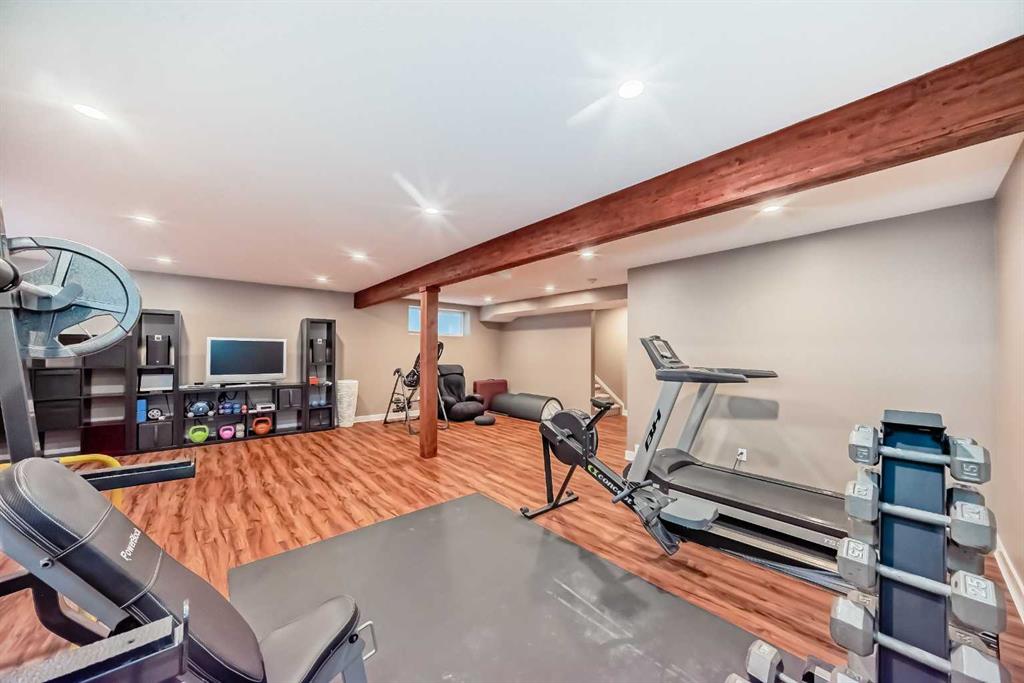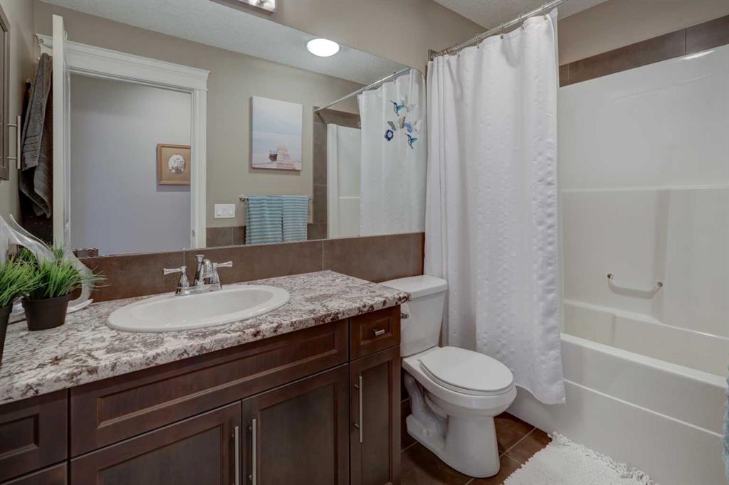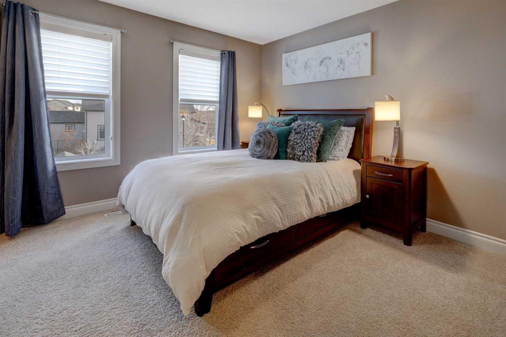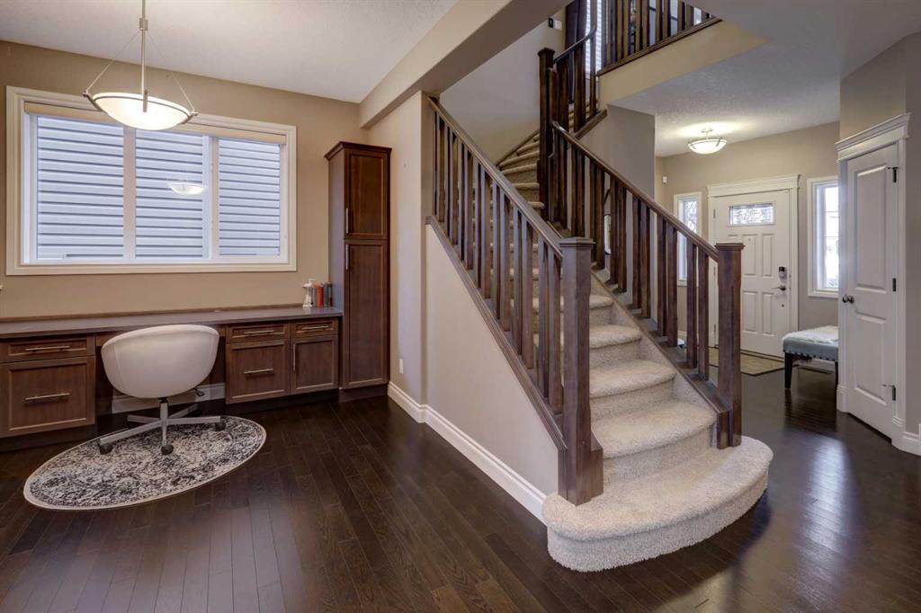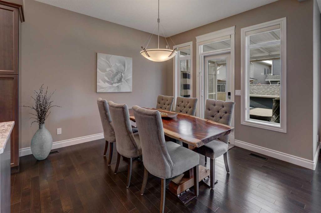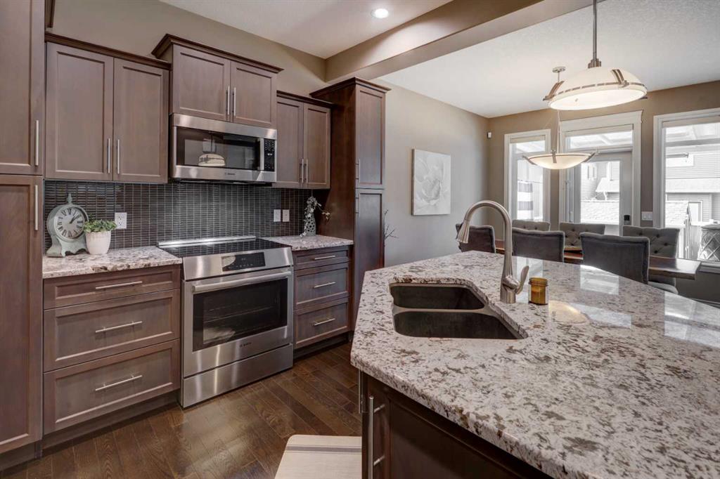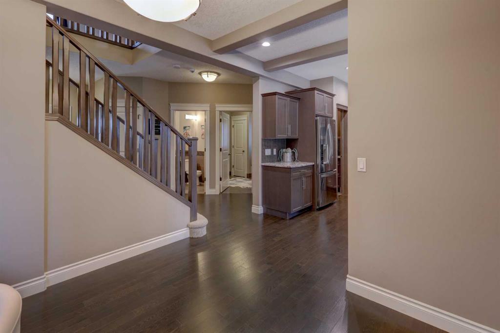 ****OPEN HOUSE SAT NOV. 22 FROM 2-4**** Welcome to your new home in Ravenswood – where luxury & fine details combine with location & pride of ownership. This home is completely move in ready & all of the upgraded features of this former MCKEE SHOWHOME showcase timeless elegance and modern comfort. As you enter the quaint front porch note all of the room you have for seasonal decorating or a cute coffee space if desired. The extremely generous FOYER leads either to the OPEN CONCEPT main floor or down to the lower level – would be very easy to wall off the entryway & create a sep entrance for a private basement living if desired. As you continue onto the main floor note the gleaming REAL HARDWOOD FLOORS – immaculately maintained & cared for – as well as the BEAMED CEILINGS – a highly upgraded feature rarely found in homes today. The 2 pc bath is tucked away next to the mudroom space. Enter the main hall and note the HOME OFFICE SPACE w/BUILT IN CABINETRY & desk. The highly upgraded kitchen boasts granite counters, BUTLER’S PANTRY, SS BOSCH APPLIANCES, touchless MOEN FAUCET (lifetime warranty) & a massive dining space. All of this leads to the very generous living room w/ gas fireplace & WEST FACING light. The majority of the windows on the west side of the home (both main and upper floors) have been upgraded to TRIPLE PANE. Head upstairs noting the classic WOOD RAILINGS & curved PLATFORMS on the stairs & enter the BONUS ROOM SPACE w/VAULTED CEILING & lots of natural light. The PRIMARY is host to a spa-like ensuite – sep corner SOAKER TUB, large tiled shower, 2 sinks & recessed water closet – all w/granite & upgraded finishings matching the rest of the house. The primary bedroom itself is adorned w/COVE CEILINGS, POT LIGHTS & built in speakers controlled from a receiver in the basement (all equipment included). These speakers are in other areas of the house as well, including the garage! Note the beautiful ambiance when you arrive for your viewing. The upper level is completed by 2 very large secondary bedrooms, fully upgraded 4 pc main bath & laundry room w/FRONT LOAD washer/dryer (included) & a nice window. The FINISHED BASEMENT adds flexible living space with a full bath and storage. The original MCKEE plans showed this basement dev w/2 more bedrooms (pls see plan in the photos as well as in the supplements). This plan could be completed by the new owners of this home making this a 5 bedroom property – perfect for a growing family or possibly as an illegal suite. Lastly, experience year-round relaxation on the covered deck w/hot tub, surrounded by low-maintenance landscaping in the back yard & zero scape in the front. Other upgrades include A/C, ON-DEMAND HOT WATER & DELTA FAUCETS. Steps to parks, schools (including Airdrie’s only FRANCOPHONE SCHOOL), green space, ponds & outdoor rink, this home combines luxury, comfort, and community. Come and see why Ravenswood is a great choice for family living.