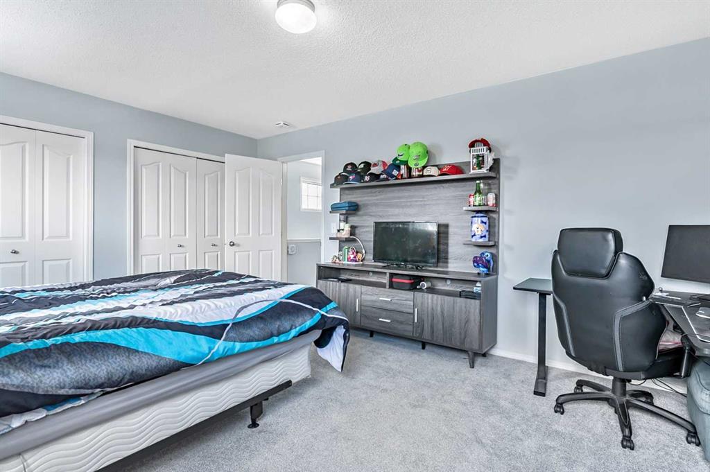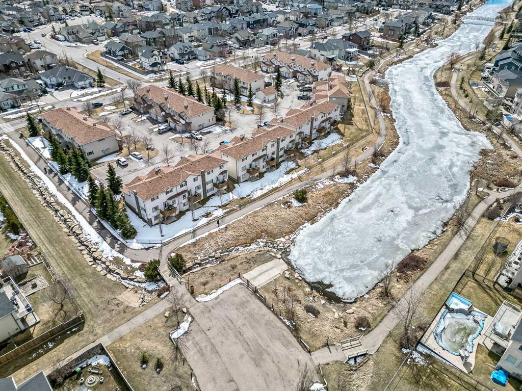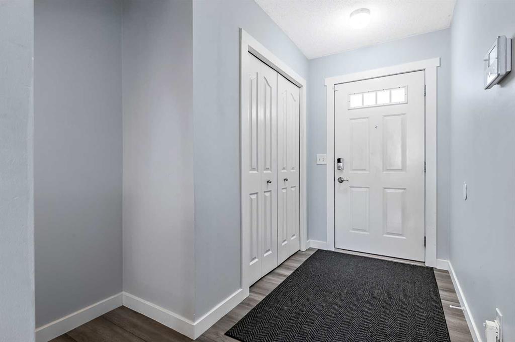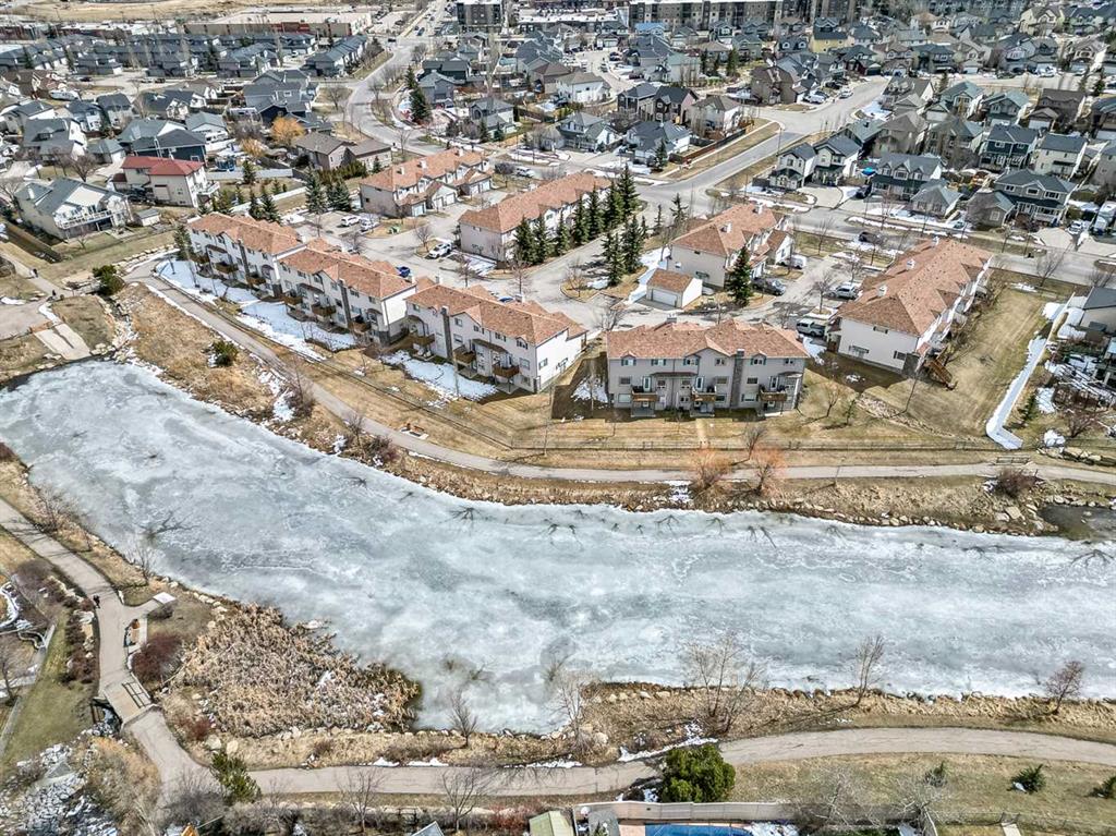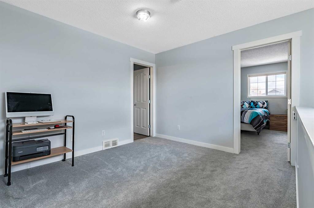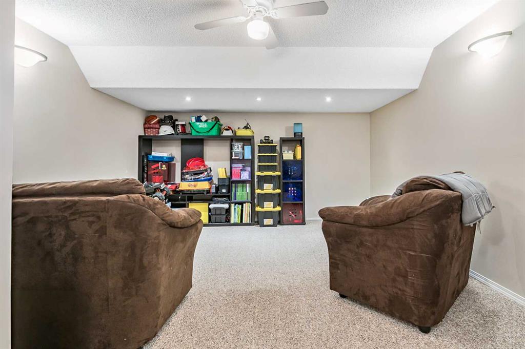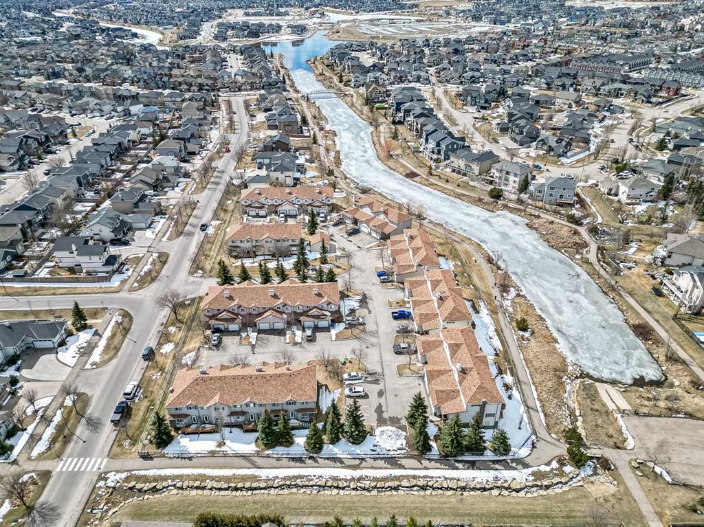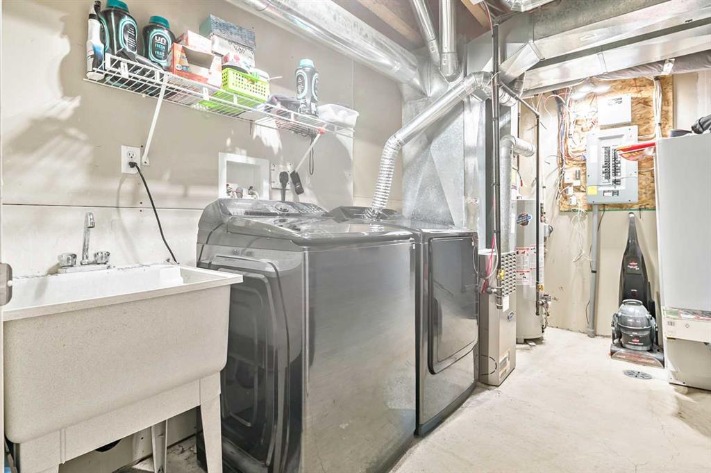 Welcome Home! This beautifully updated 1,342 sq. ft. two-storey townhome is located in the highly sought-after community of Canals in Airdrie. As an end unit backing onto a peaceful greenbelt and pathway system, this home offers both privacy and an abundance of natural light. Step inside to a spacious foyer that opens to a bright and inviting main floor, featuring brand new laminate flooring throughout. The kitchen has been tastefully refreshed with a new fridge, range, stylish backsplash, and plenty of cupboard and counter space—perfect for both everyday living and entertaining. The cozy family room is highlighted by a charming fireplace and large windows that flood the space with light. From here, step out onto your private deck—an ideal spot for BBQs and relaxing with friends. A renovated powder room completes the main level. Upstairs, you’ll find brand new carpet throughout, leading to two generously sized primary bedrooms and a versatile bonus area—perfect for a home office or reading nook. A well-appointed 4-piece bathroom is conveniently located between the bedrooms. The fully developed basement offers even more living space, including a large flex room that can easily serve as a bedroom, a laundry area with new washer and dryer, and an additional 4-piece bathroom.