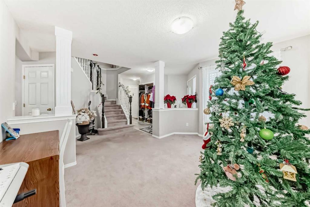 Outdoors, the generous back deck overlooks a landscaped yard filled with mature trees and shrubs, offering direct access to the greenspace behind. The home sits only steps from community picnic areas, walking paths, and three nearby schools. Coventry Hills Centre provides shopping, dining and everyday amenities just minutes away, with quick routes to the airport, Vivo Recreation Centre and Stoney Trail.