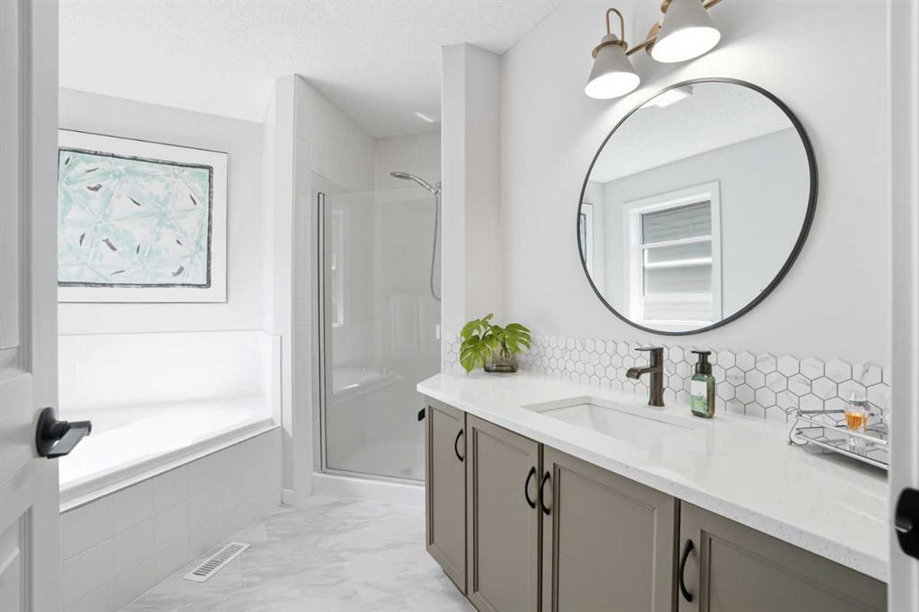 10/10 in Evergreen! This newly renovated home is situated along the peaceful south side of Fish Creek Park. This meticulously maintained residence offers the perfect blend of style, comfort, and convenience. Located on Everoak Drive, a quiet, wide boulevard. And, you are just minutes from Costco and other local amenities. Step inside to discover a fresh, modern interior featuring elegant feature walls in the foyer, living and family rooms and the primary bedroom. There is also stunning luxury vinyl plank flooring and brand new lighting throughout. The updated kitchen is a chef’s paradise, showcasing a gorgeous backsplash, newer stainless steel appliances, granite countertops, and an open walkthrough pantry—perfect for entertaining and super practical for everyday living. The second level offers the primary suite overlooking the backyard, flanked by mature trees for the ultimate privacy. It features an attached, updated ensuite with generous counter space and a spacious walk-in closet. Additionally, there are two more oversized bedrooms, an updated family bathroom, and a huge family room with a feature wall and enhanced lighting—perfect for relaxing or entertaining. Enjoy tranquility and outdoor beauty with mature trees. The main floor deck creates a peaceful oasis to enjoy most months of the year but especially in the Spring and Summer, which is right around the corner! With every aspect freshly updated and expertly maintained, this home is move in ready . . . just bring your family!