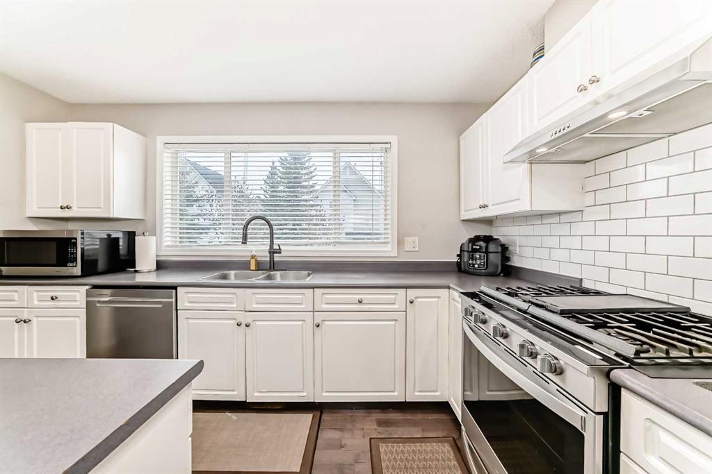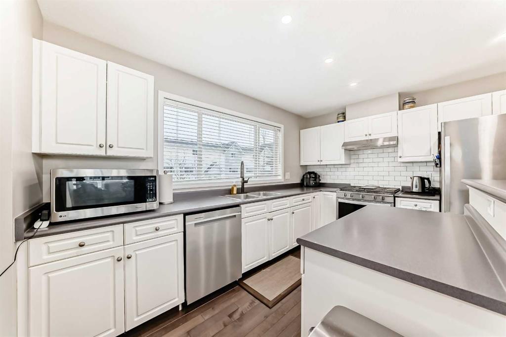 Welcome home! This townhome features double garage | fenced yard | backing walking path | 3 beds / 1.5 bath + upper loft and more! All located in the SE Calgary community of Mckenzie Towne – with a plethora of amenities nearby, offering charming streets, parks, pathways, schools, and convenient access to shopping, dining, transit, and major routes—combining small-town character with urban convenience. Step inside to find yourself in a sun lit interior with large windows across the front and back of the main floor living area. The main floor connects the living, dining and kitchen seamlessly creating a great place for entertainment. The kitchen features: white cabinets, island with eating bar for stools, SS appliances including a GAS STOVE, sink overlooking the backyard space (walking path behind home), and plenty of cabinet space – all where you can craft your favourite home cooked meals. Best of all, the main floor has gleaming hardwood floors to elevate the feel, along with an added electric fireplace and features. A half bath to completes the main level. The upper level checks a lot of boxes with 3 bedrooms, and a bonus loft area perfect for small office. The primary room is a great size with walk in closet and also offers the views of the walking path behind home. To complete upper level is an updated full bath with tiled bath/shower combo. The lower level offers storage space, mud room, and access to your double garage! With so much to offer in such a great location this makes a great place to live/invest. Book your viewing today before its gone.