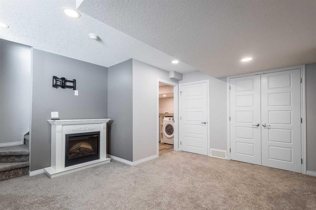 The professionally finished basement adds a cozy family room with an electric fireplace, flexible guest space, a stylish 3-piece bath, and an upgraded laundry area.