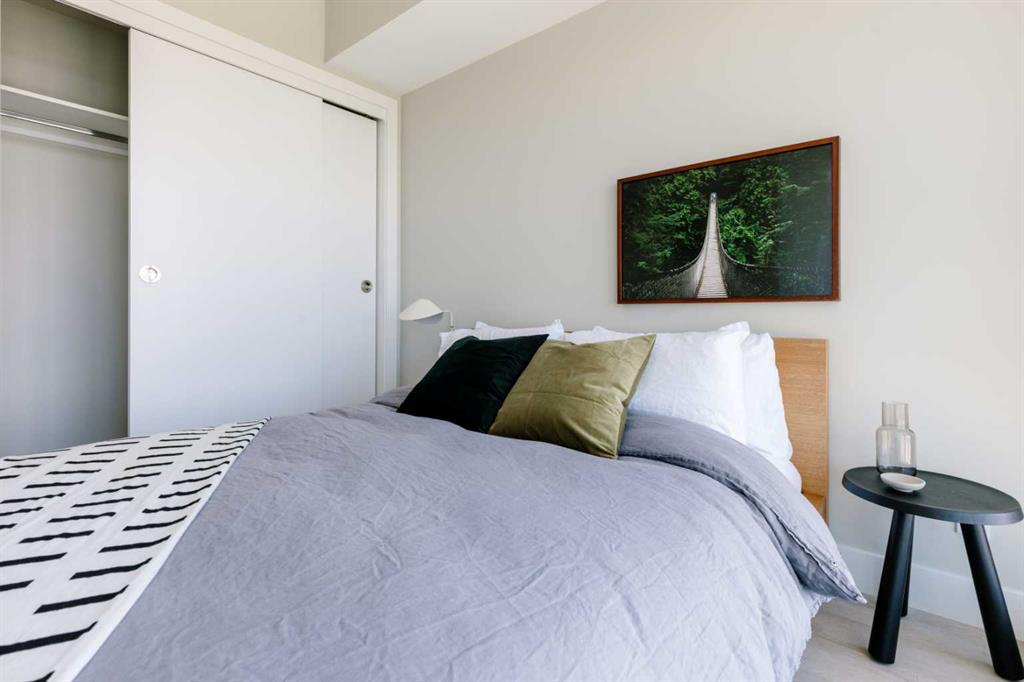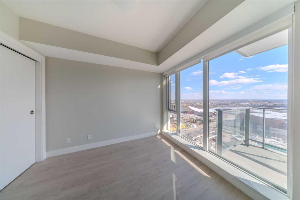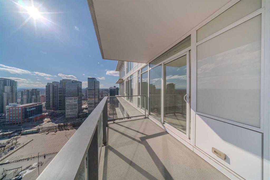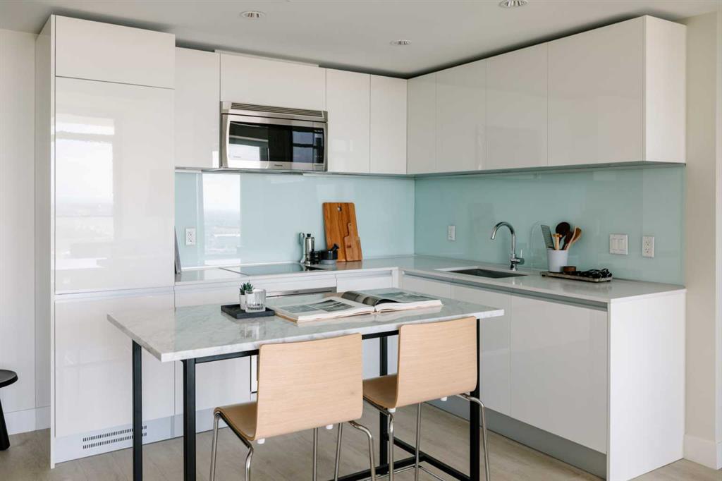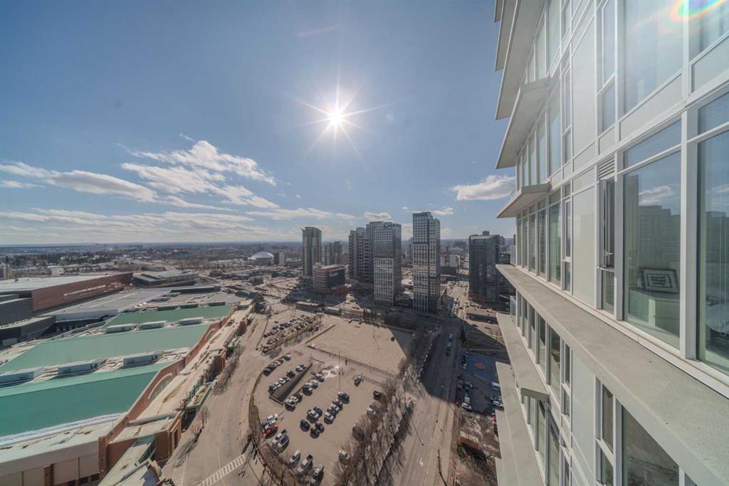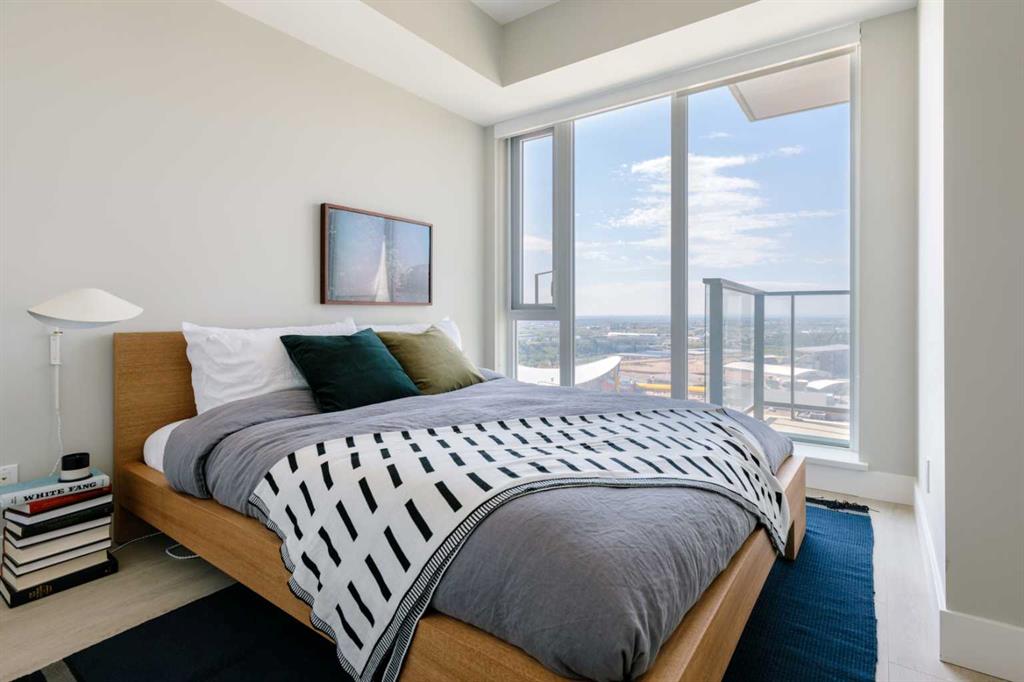 Experience elevated city living in this bright and well maintained south-facing one-bedroom residence, showcasing expansive unobstructed views from a high-floor vantage point. Designed with efficiency and style in mind, this well-laid-out home offers over 500 sq. ft. of contemporary living space. The open-concept layout maximizes functionality, complemented by upscale finishes including durable laminate flooring, elegant Italian-designed cabinetry, quartz surfaces, and fully integrated stainless steel appliances. Floor-to-ceiling windows flood the interior with natural light throughout the day. The unit features a generously sized bedroom alongside a sleek four-piece bathroom finished with imported Italian cabinetry. Additional highlights include in-suite laundry, titled tandem parking accommodating two vehicles, and a dedicated storage unit. Residents have access to an impressive array of amenities, including a fully equipped fitness facility, workshop space, secure bicycle storage, a social lounge with an outdoor garden terrace, and 24-hour concierge and security services. Located in the heart of Calgary’s dynamic Beltline district, this home places you within walking distance of downtown, Stampede Park, the Central Library, Riverwalk pathways, and convenient LRT access. Daily essentials and lifestyle perks are just steps away, including an on-site café, nearby dog park, Tesla Supercharger station, and a grocery store just around the corner. Combining modern design, valuable upgrades, and a prime inner-city location, this property offers both a refined urban lifestyle and strong long-term investment potential.