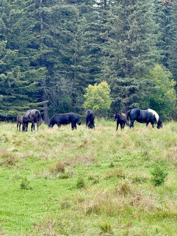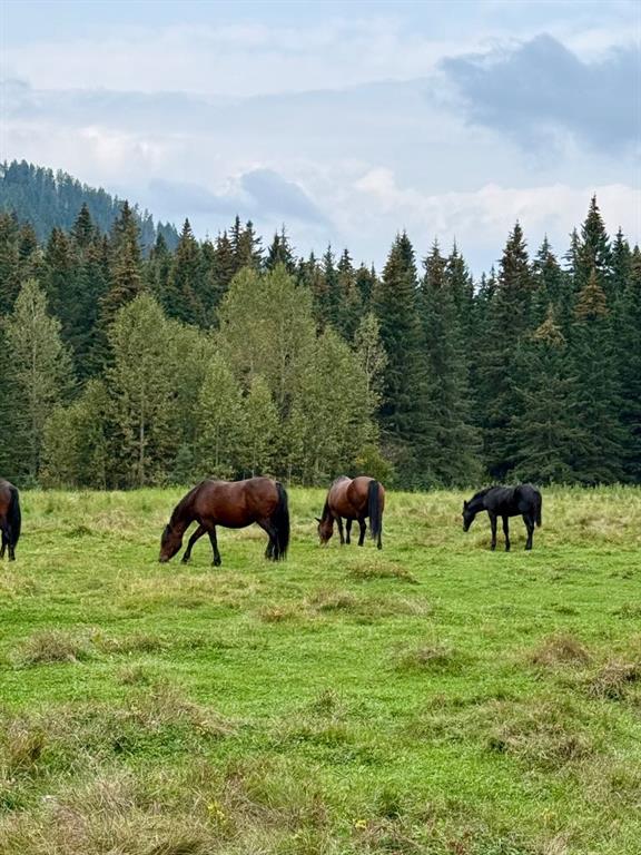 Welcome to 161 acres of paradise with trees, wide open meadows, a year round creek, riding/walking trails tucked away from any neighbors with mountain views , secluded and private yet conveniently located 20 minutes NW from Cochrane. It feels like your living in a national park with the trees and views, but it could be your own private land. You are sure to be impressed with this reverse walk-out Bungalow built into the hillside with over 4600 sq ft of living space, attached oversized double garage plus shop. Incredibly well build starting with ICF foundation walls right up to the rafters. Poured concrete floors on each level with in-floor heat and concrete tile roof. The main floor features a massive wood burning rock facing fireplace that warms up the Great room with the tall barreled ceiling and enjoys the mountain views. Tucked behind the fireplace is the dining room. The kitchen features lots of cabinets and counters and a commercial gas Stove with a double oven. Breakfast nook overlooks the deck and views. Next is the Bonus room with electric fireplace and wall units making this a great TV room. From here step out onto the incredible wrap-around covered deck. On the south side enjoy the mountain views and overlook your own paradise. Trust me this is a special place to relax and enjoy nature as it unfolds before your eyes. On the north side step down onto the massive patio area to enjoy large family gatherings. Back in the house past the Great room, the private master suite is separate from the other bedrooms except one other main floor room which could be used as that or a den/office. This makes it perfect for use requiring private/public spaces. Check out the ensuite featuring a large jetted soaker tub and tiled steam shower and double sinks. Lower level is fully developed with a very spacious entry, four bedrooms, two full bathrooms, a family room, laundry and furnace room. The oversized heated double attached garage with high ceilings makes a great hobby room or park two vehicles in the 24 x 24 ft space. Check out the 32 x 24 ft heated shop with cement floor that could easily be converted to barn stalls, upper mezzanine and wood stove. 80 x 120 riding ring with hockey rink at one end. Tach shed. There is a wedding site with benches for 100 guests. This property would make an ideal retreat, Equestrian, yoga or recovery center, or a home base for Norquay ski Resort in Banff, Sunshine Ski Resort or Lake Louise skiing. Call for your personal viewing today!