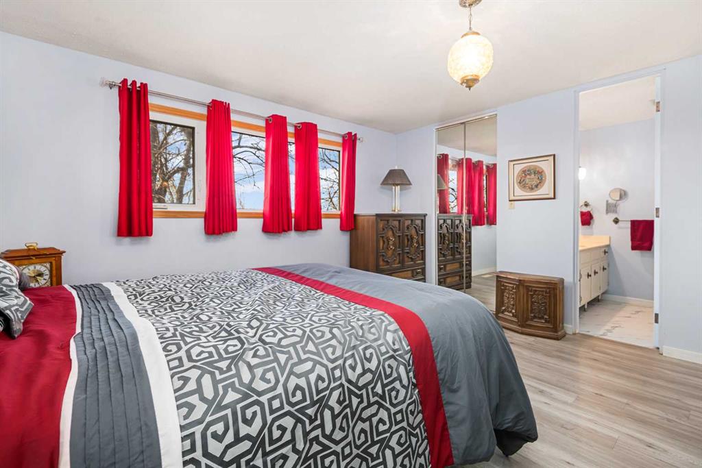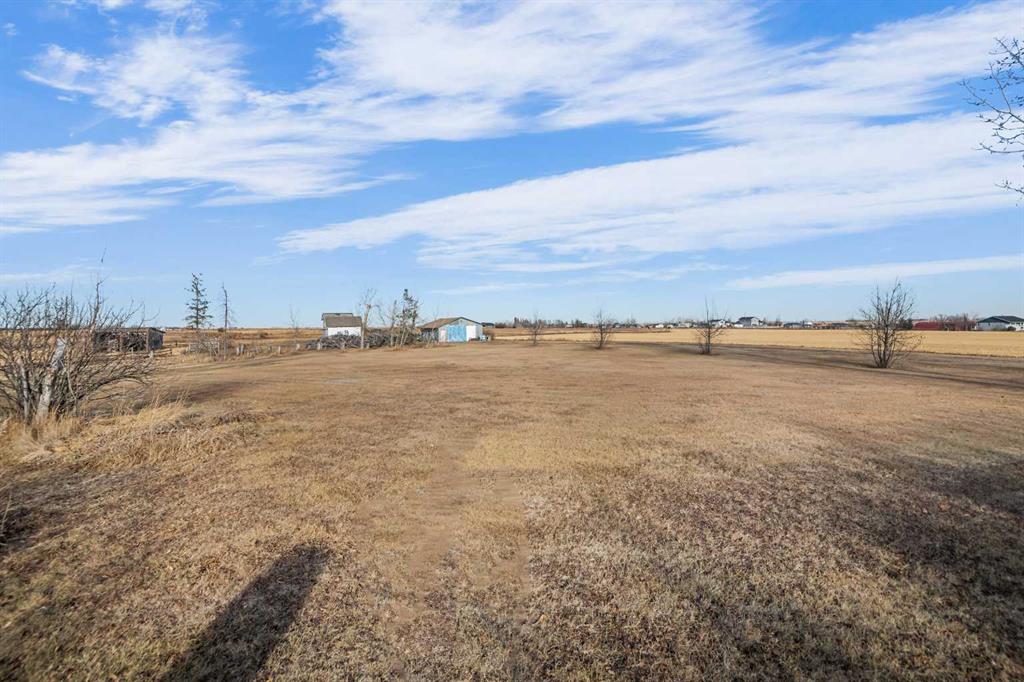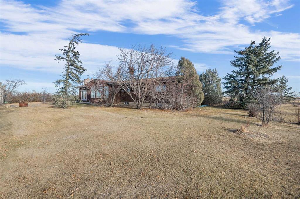 Perfectly positioned w/frontage on Hwy 9, Twp Rd 252 & 252A, this exceptional 66 acre agricultural (zoned Ag-Gen) property offers both privacy & convenience—just 12 mins from Calgary’s city limits & 15 mins to the upcoming De Havilland Field. The property features a well cared for 2,235 sq ft bungalow, lovingly maintained by the same family for nearly 5 decades. Inside, the home welcomes you w/a bright front entry featuring dual closets & 8-ft doors throughout. The main level offers 4 spacious bedrooms, including the primary suite w/walk-in closet & ensuite. The additional 3 bedrooms share a full 4-piece bath. The inviting living room off the front entry has wooden beams & lots of natural light. The kitchen includes a cozy nook overlooking the family room that showcases a wood-burning fireplace w/a brick surround adding warmth & character+there’s a formal dining area just steps away—perfect for family gatherings. The newer flooring gives the home a modern, welcoming feel throughout. Off the back entry from the double attached garage is a convenient laundry area & 3 pc bath w/access to the partial basement. Downstairs, you’ll find a storage area, a family room/rec space & a flex room/potential 5th bedroom (window not to egress). Newer front steps & concrete pad in front of the garage adds a clean, fresh touch to the exterior. Outdoors, the land is ideally set up for horses or hobby farming, complete with a 3-stall barn & run-in shelter (both serviced w/power & water), a fenced paddock, & riding area. Horse shelter w/steel siding is already pre-cut & stored in the barn, ready for installation. 2 more versatile outbuildings provide plenty of room for storage or small livestock. W/3 wells, there’s a reliable water supply across the property. Situated on a school bus route, Twp Rd 252 receives priority snow removal, ensuring year-round access. Approximately 55 acres are currently leased to a local farmer, providing passive income, along with a gas well surface lease for additional revenue. The location is prime for future growth w/new development expanding east of Calgary, several golf courses nearby, & quick routes to major highways & city amenities. Recent hail insurance claim for roof & siding have been approved, buyer can choose their colours.