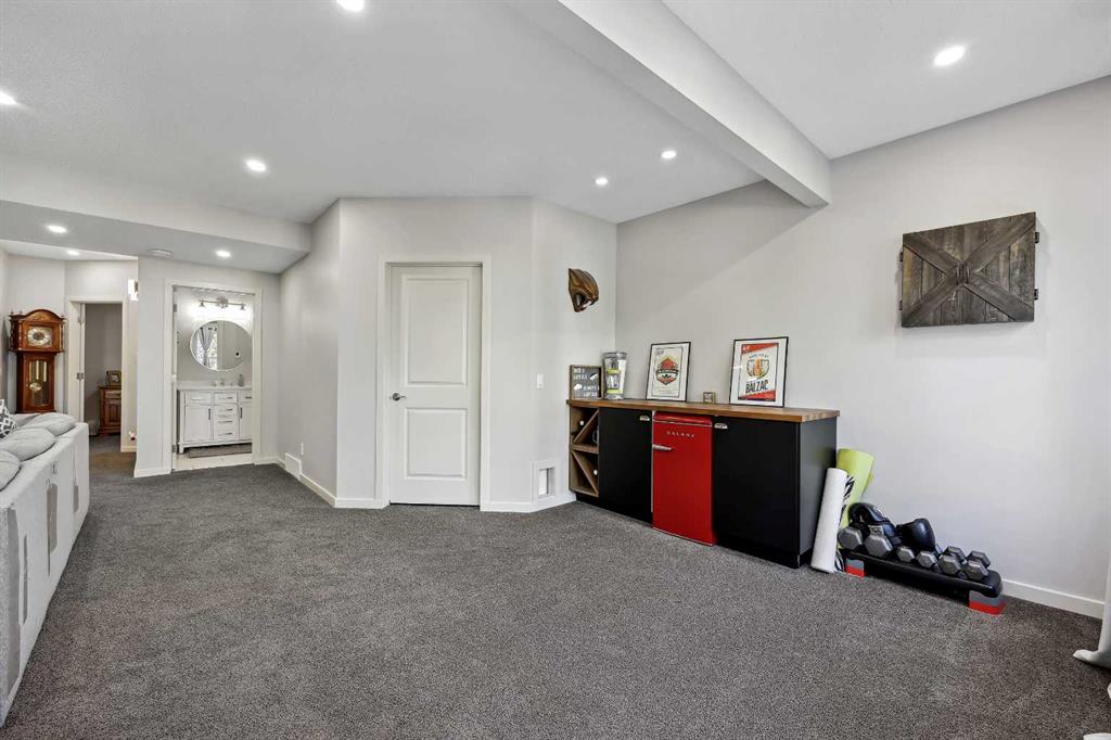 The fully finished WALK-OUT basement adds even more living space, including a fourth bedroom with a large closet, a beautifully finished 3-piece bath with a floor-to-ceiling tiled walk-in shower and IN-FLOOR HEATING, a family/theater room featuring a shiplap wall with a linear gas fireplace, custom cedar shelving, and a flex/games space. A dry bar with a beverage fridge and upgraded lighting makes this space perfect for gatherings. Step outside to the rear yard, complete with a covered lower deck and mature landscaping, creating a private oasis. The basement also offers a mechanical room with storage and ample additional storage space throughout.