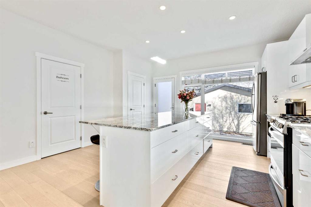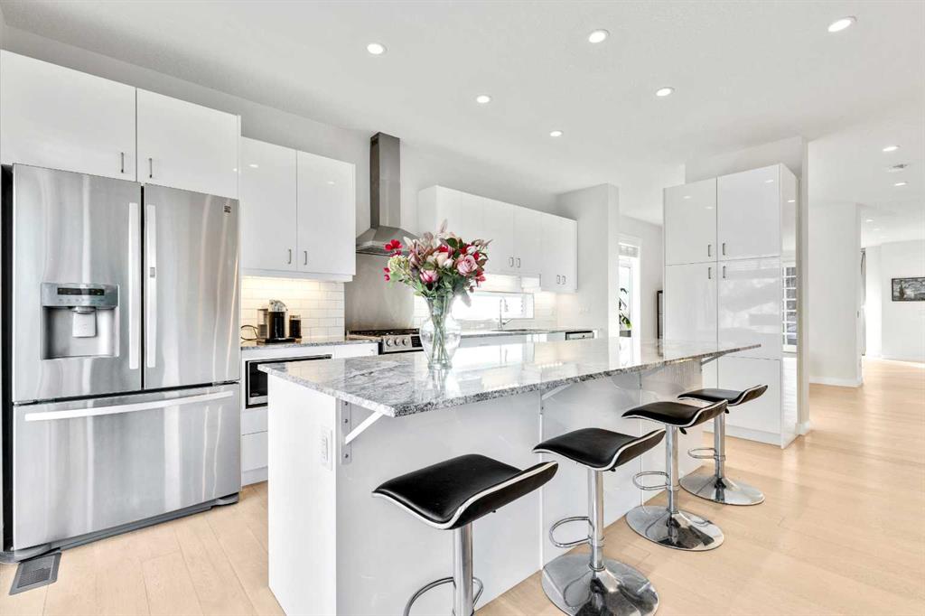 Just steps away from West Confederation Park, this custom-designed two-story home offers a rare blend of modern sophistication and Parkside tranquility. This fully detached residence was meticulously built with an unwavering attention to detail, offering peace, quiet, and abundance of natural light. Upon entry, you are greeted by an expansive open-concept living room featuring 9′ ceilings, engineered hardwood floors, and a sleek electric fireplace. The heart of the home is a central dining area that transitions seamlessly into a white-on-white chef’s kitchen. Designed for both function and style, the kitchen boasts under-cabinet lighting, granite countertops, a massive island with a breakfast bar, and a premium appliance package with a gas range. The upper level is bathed in sunlight, thanks to a well-placed hallway skylight. The expansive master suite serves as a true sanctuary, featuring a unique private balcony—perfect for a morning coffee or an afternoon read. The suite is completed by a walk-in closet and a spa-like 5-piece ensuite equipped with a jet tub, dual vanities, and its own skylight. Two additional bedrooms, a 4-piece main bath, and a dedicated laundry room provide ample space for family or guests. The finished lower level continues the theme of light and space, offering a large family room with a sizable window, a 3-piece bathroom, and a spacious fourth bedroom. Perfectly situated near the University of Calgary, the C-Train, and premium local shopping, this home places you at the center of everything while maintaining the serenity of a park-adjacent lifestyle.