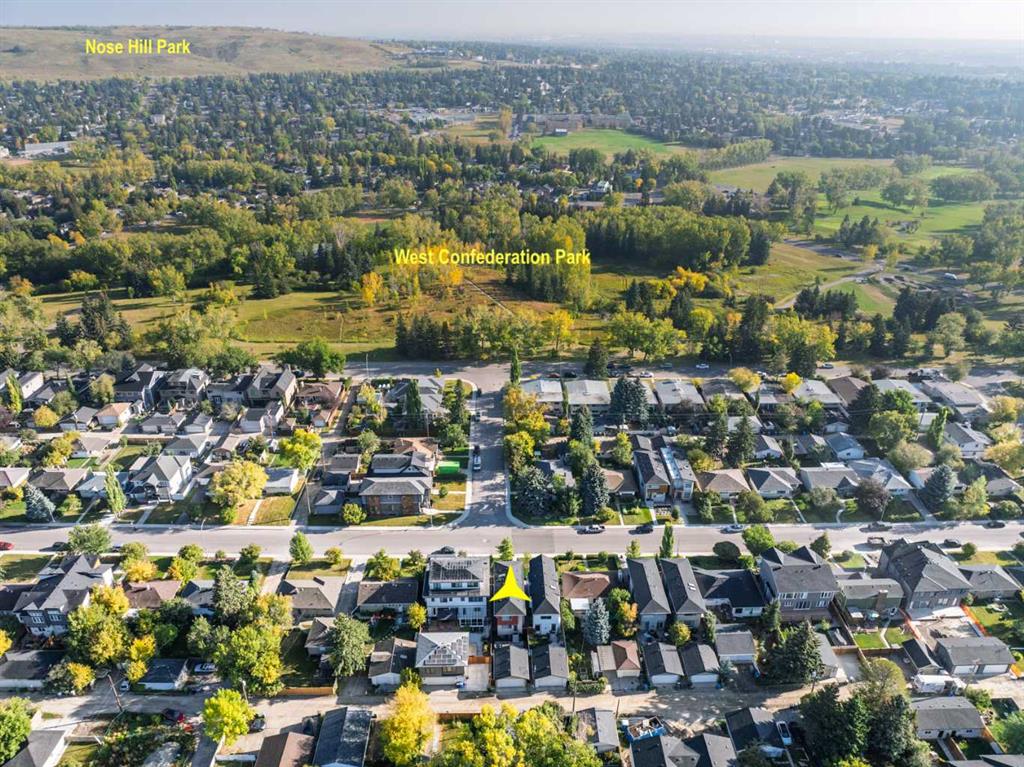 This beautifully maintained detached family home is perfectly situated in the highly desirable community of Banff Trail, just steps away from the year-round amenities of West Confederation Park. With access to scenic biking and walking paths, a golf course, tennis courts, splash park, pump track, natural playground, and seasonal activities like tobogganing and cross-country skiing, the location offers something for everyone. Thoughtfully designed for both comfort and function, this spacious two-storey residence features bright and inviting living spaces throughout. The main level showcases an open-concept layout filled with natural light from floor-to-ceiling windows, anchored by a double-sided fireplace that adds warmth and separation between the expansive living room and the elegant dining area. The kitchen boasts quartz countertops, stainless steel appliances including a one-year-old induction range, a large island, and a window overlooking the south facing backyard. A modern two-piece powder room completes the main floor. Upstairs, the primary suite is a true retreat, offering a large walk-in closet, a four-piece ensuite with double sinks and walk-in shower, and stunning park views through an oversized window. Two additional bedrooms share a stylish four-piece bathroom, while a convenient upstairs laundry room adds to the thoughtful layout. The fully developed basement extends the living space with a spacious recreation room, a generous fourth bedroom, and a three-piece bathroom—ideal for guests or extended family. Step outside to enjoy the sunny, south-facing backyard complete with a private patio perfect for outdoor dining and relaxation. An oversized double detached garage provides plenty of storage and parking. With nothing left to do but move in, this exceptional inner-city home offers unbeatable access to downtown, the University of Calgary, SAIT, Foothills and Children’s Hospitals, all levels of schooling, and a wealth of community amenities.