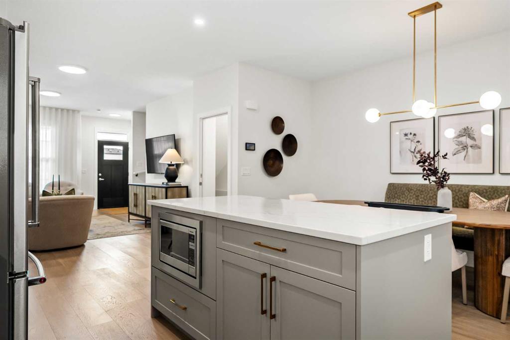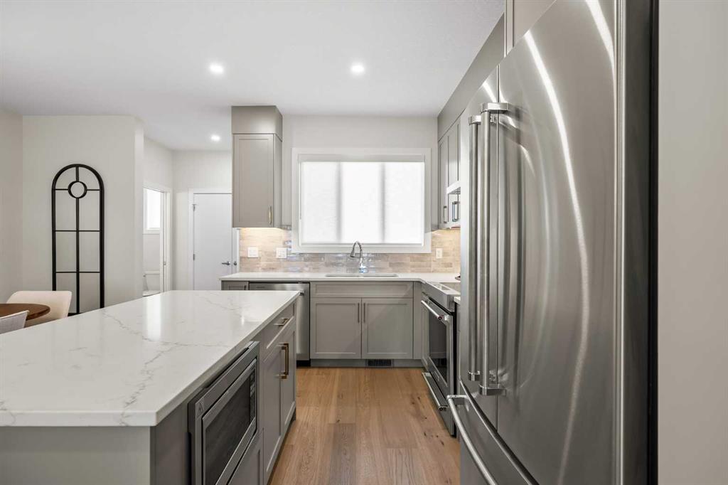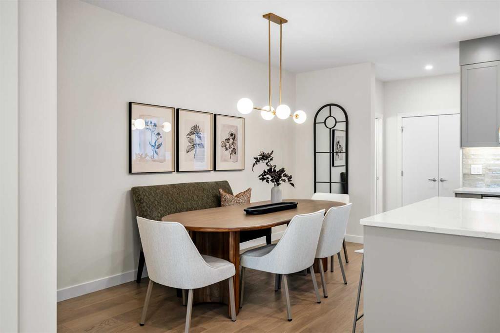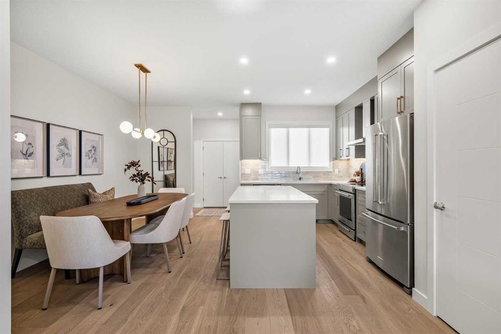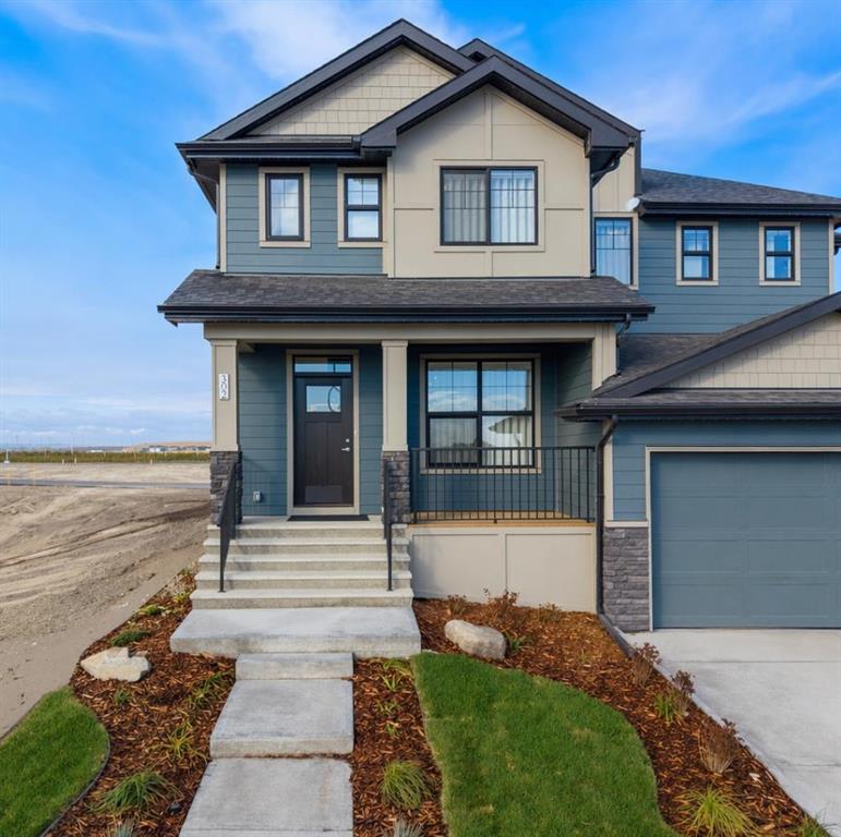 Welcome to the Sophie by Partners Homes in Keystone Creek, a brand new pre-construction duplex in NE Calgary offering a well designed open floor plan with 3 bedrooms, 2.5 bathrooms, and a side entrance. This home is thoughtfully designed to provide functional living, modern finishes, and everyday comfort in one of North Calgary’s growing communities. The main floor features 9 foot ceilings, knockdown ceiling texture, and a bright open concept layout centered around a spacious kitchen. Finished with full height cabinetry, quartz countertops, a tiled backsplash, and a large central island, the kitchen also includes a stainless steel appliance package and a chimney hood fan with built-in microwave. A gas line to the range adds flexibility for future upgrades. The dining and living areas flow seamlessly together, creating a comfortable space for both everyday living and entertaining. Upstairs, the primary bedroom offers a walk-in closet and a private ensuite featuring a tiled walk-in shower. Two additional bedrooms and a full bathroom complete the upper level, along with convenient upper floor laundry including washer and dryer. The basement features 9 foot ceilings and a side entrance, providing additional flexibility for future use. At the rear of the home, a 20’ x 21’ gravel parking pad with alley access offers off street parking and future garage potential. Front landscaping is included, allowing for a finished exterior once complete. Finished in a craftsman elevation, this home offers timeless curb appeal in Keystone Creek, a growing NE Calgary community with access to pathways, green spaces, and convenient routes to Stoney Trail, Deerfoot Trail, CrossIron Mills, and Calgary International Airport. A well designed pre-construction home offering a practical layout, upgraded features, and strong value in North Calgary.