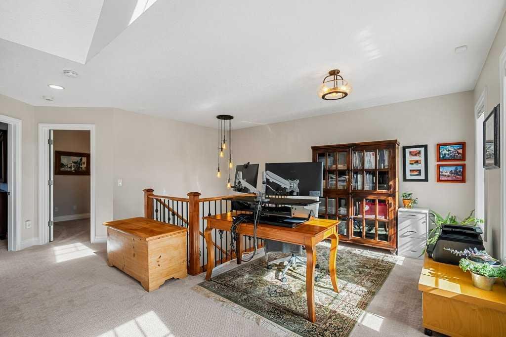 Upstairs you will find three bedrooms plus a loft/office with a skylight, ideal for working from home or as a flexible bonus room. The primary bedroom is generously sized, and the en-suite bathroom has been thoughtfully updated with tile flooring, electric in-floor heat, a spacious glass shower, new tile around the bath tub & shower and also comes with a walk-in closet.