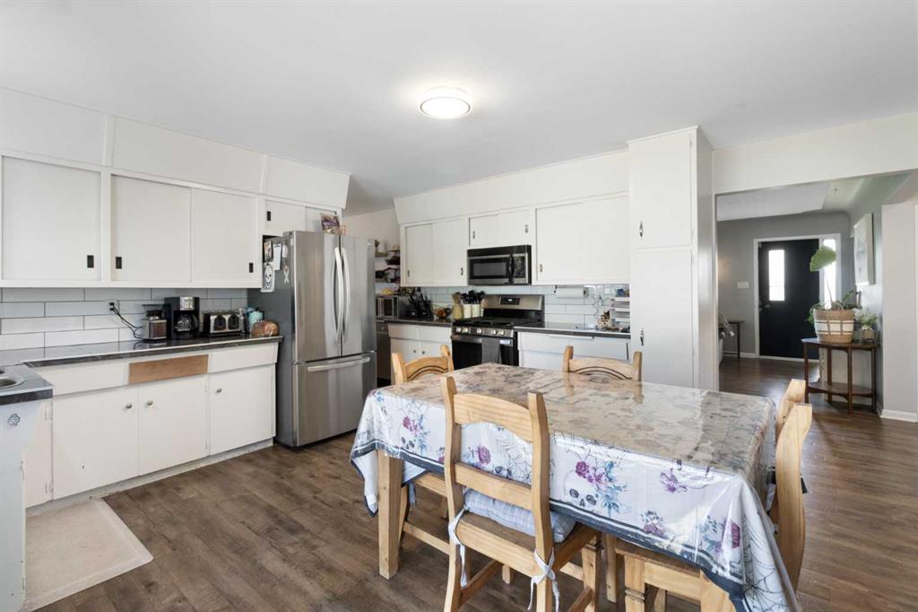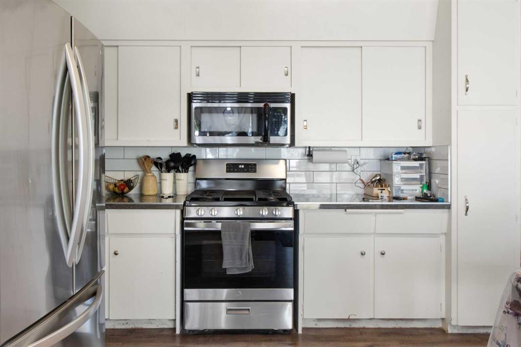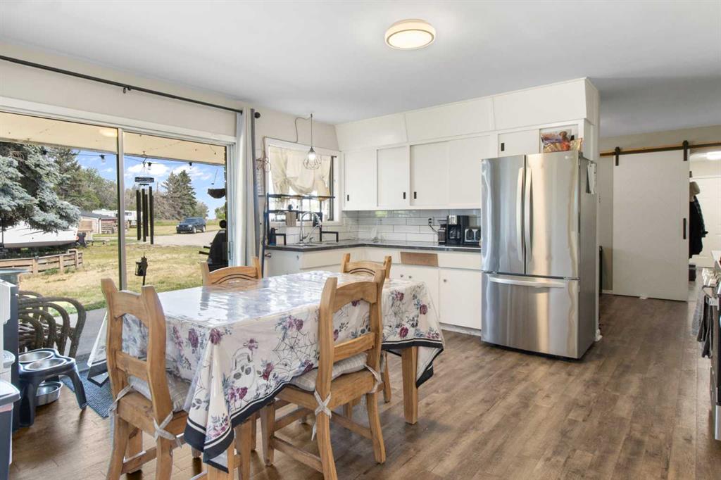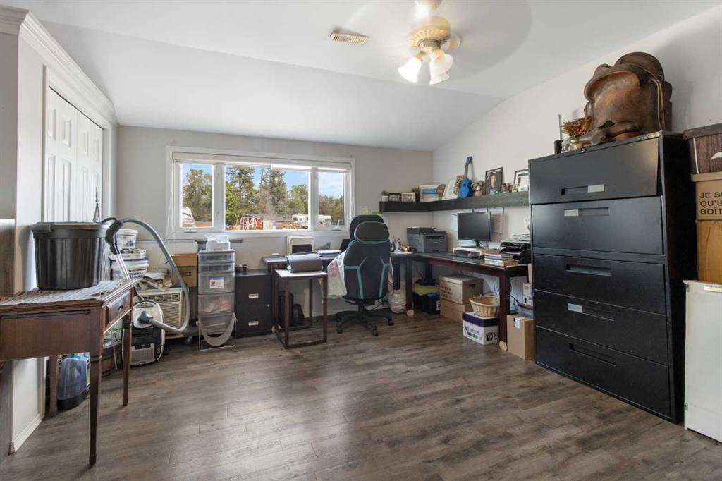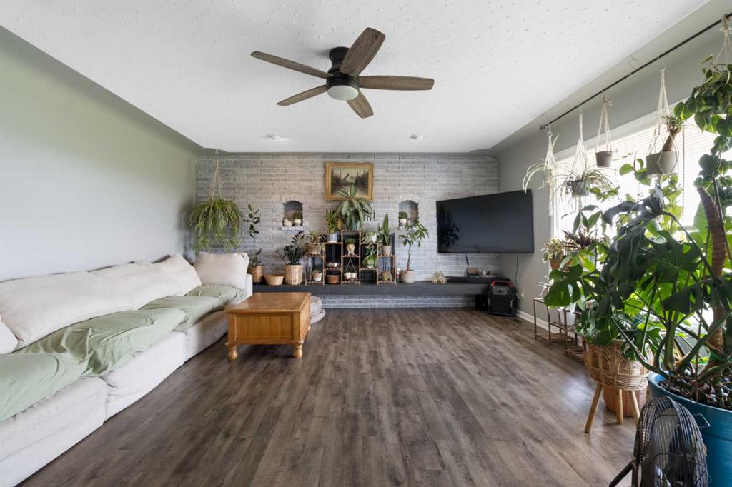 The classic brick bungalow offers nearly 2,100 square feet of main-floor living space plus approximately 1,450 square feet of developed basement, providing plenty of room for family and guests. The home features four spacious bedrooms, a bright kitchen, and a large welcoming living room. Original character details such as coved ceilings and a wood-burning fireplace bring warmth and charm to the main level, while the main-floor laundry room with utility sink adds everyday practicality. The flat acreage surrounding the home also provides excellent potential for additional buildings, a future shop, or truck and equipment storage, making the property well suited for those who want the flexibility to live and work from home. Additional highlights include a 10,000-watt wired standby generator for backup power and a recently installed new roof, offering added reliability and peace of mind. Whether you’re seeking a private family acreage, hobby farm potential, or space to operate a home-based business, this rare Rocky View County property offers endless possibilities in a highly accessible location.