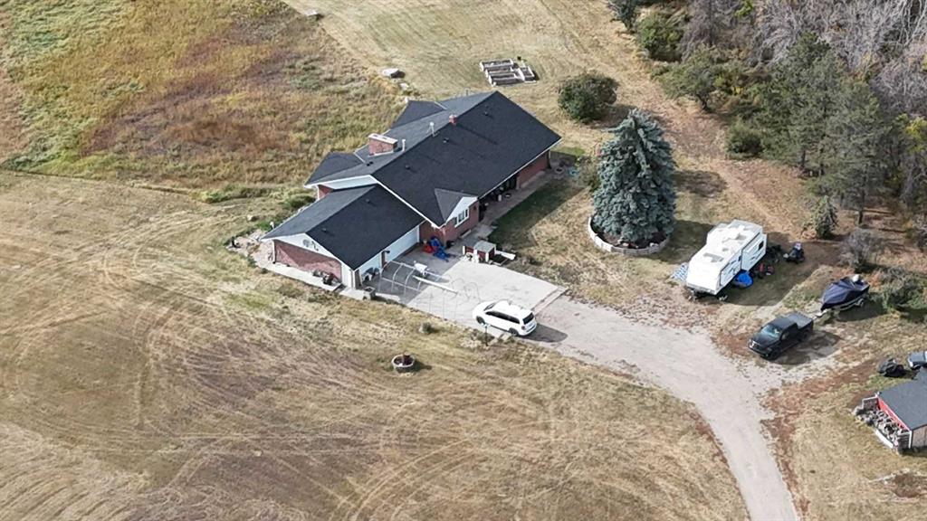 Experience the space, privacy, and opportunity of country living on this exceptional 15.32-acre property just east of Balzac. Perfectly positioned at the corner of Highway 566 and Range Road 274, the property offers outstanding highway frontage on paved Highway 566 while maintaining the peaceful setting of a private rural acreage. With quick access to major routes—just 13 minutes to Balzac and the QEII, 2 minutes to Kathryn, and an easy drive to CrossIron Mills and Highway 9—this location provides the ideal balance of rural lifestyle and convenience. The acreage itself is beautifully established and thoughtfully laid out. A long private driveway and gated entrance lead into a mature, tree-sheltered yard where a thick shelterbelt along the north, east, and west boundaries provides exceptional wind protection and privacy. Expansive lawns, scattered apple and ornamental trees, and open green space create a picturesque setting perfect for outdoor living, gardening, or simply enjoying the quiet of country life. A spring-fed dugout pond adds both beauty and function to the property and may support fish, while the large open yard behind the home offers excellent space for equipment, recreational vehicles, or future improvements.