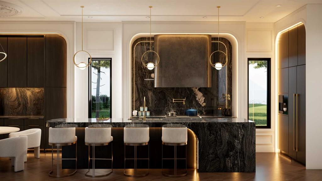 Personalize every detail with premier builder Moon Homes, offering 2,940 sq.ft. of total living space with the opportunity to select your finishes and tailor the design to your style. Timeless style meets modern-day comfort on a quiet, tree-lined crescent in the heart of Glenbrook. This newly built semi-detached home is thoughtfully designed with expansive windows, refined craftsmanship, and a layout that effortlessly supports everyday family living, now paired with the rare ability to customize key finishes throughout. Step inside from the covered entry into a bright, welcoming foyer with seamless sightlines across the main level. Wide plank engineered hardwood flooring, custom millwork, and a sun-filled front dining area set the tone, with the opportunity to personalize materials and design details to match your vision. Just off the entrance, a private pocket office with a glass feature wall and built-in desk creates the perfect work-from-home or study space. At the center of the home, the designer kitchen is both functional and fully customizable. Complete with a wall oven and microwave, gas cooktop, and a large statement island, you have the ability to select cabinetry, finishes, hardware, and overall aesthetic to create a space that feels distinctly yours. Quartz surfaces, a built-in pantry, and curated lighting elevate both form and function. The open-concept layout flows seamlessly into the living room, where a gas fireplace with custom built-ins anchors the space. An oversized 8’ patio door floods the main floor with natural light and opens directly to the backyard, creating a seamless indoor-outdoor connection. A well-designed mudroom with built-ins and bench seating keeps things organized, while the tucked-away powder room adds everyday convenience. Upstairs, the primary retreat offers a true sense of escape with vaulted ceilings and elevated design. The spa-inspired ensuite can be tailored with your choice of finishes, featuring a deep soaker tub, large tiled shower, and refined detailing throughout. A custom walk-in closet completes the room. Two additional bedrooms, a stylish 4-piece bath, and a versatile desk nook provide space for growing families, work, or creativity. A generous laundry room with sink and quartz counters, along with wide hallways and additional storage, enhances functionality across the upper level. The fully developed lower level offers a spacious living room, a sleek wet bar, a well-appointed bedroom, and a dedicated gym—designed for both relaxation and functionality, creating the perfect space for entertaining, unwinding, or everyday living. Situated in one of Calgary’s most desirable inner-city communities. Top-rated schools, parks, pathways, and amenities are all nearby, with quick access to 17th Avenue SW, Sarcee Trail, and Glenmore Trail. Images are from a previous project and are for reference only to illustrate the quality of finishes; actual specifications may vary.*