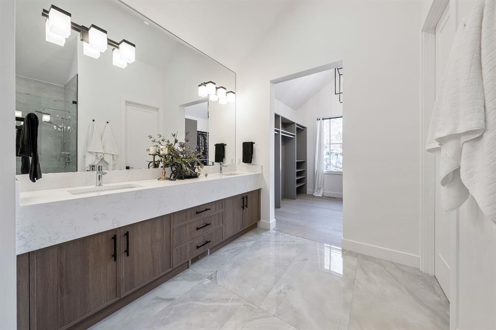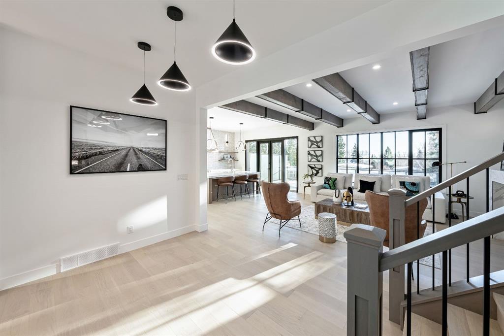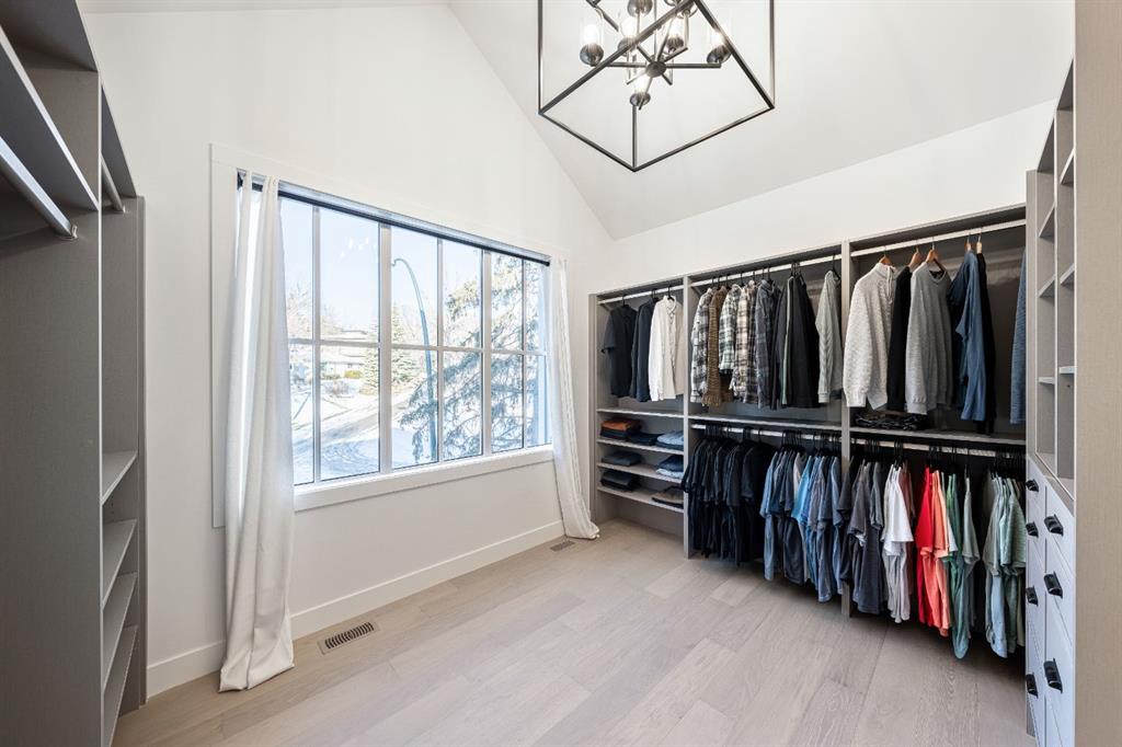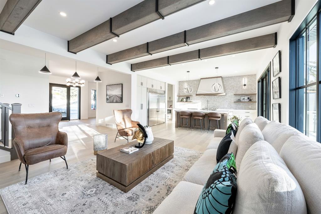 Stunning and unique best describes this modern masterpiece built by Elite Urban Concepts that draws inspirations from the wineries of California with a modern flair that checks all the boxes on one’s wish list. With over 4800 square feet of developed space and a fully finished walkout basement, there is plenty of room for a family, entertaining, working from home or relaxing on the weekends. With an open floor concept, you are immediately welcomed with hardwood floors that are complimented with the tall ceilings adorned with open beams in the living room and, tons of natural light from the abundant black cased windows. A large chef inspired kitchen that features beautiful hood fan as the centerpiece, accented with stainless-steel appliances, a separate butler pantry and, large custom wood cabinets that opens to a massive upper deck overlooking the backyard with a mountain view. Upstairs is perfect for family living with a bonus room that is central to an upper laundry room, two bedrooms and, a primary bedroom all of which have their own ensuites. Yes, you read that right, each upstairs bedroom has its own private ensuite. The primary bedroom is enormous with tons of natural light, vaulted ceilings with open beams, a view of the mountains and, a custom walk-in closet that will accommodate anyone’s needs. The beautifully crafted master ensuite features a spa like experience with large tile, wood accents, a soaker tub and a twinned shower that rivals a high-end hotel. The walkout basement is custom built for entertainment with tall ceilings accented with open beams, a custom-built stylish bar and a huge family room that has double French doors to the lower covered patio and fenced backyard, for that indoor outdoor flow. The additional open style room allows for your home gym that will take advantage of the natural light. The basement mudroom has an abundant amount of storage that leads out to the attached garage. The triple garage is large enough for your vehicles and toys. This beautiful gem in the heart of Charleswood is the perfect location, across from a park overlooked by Nose Hill Park, the location is perfect.