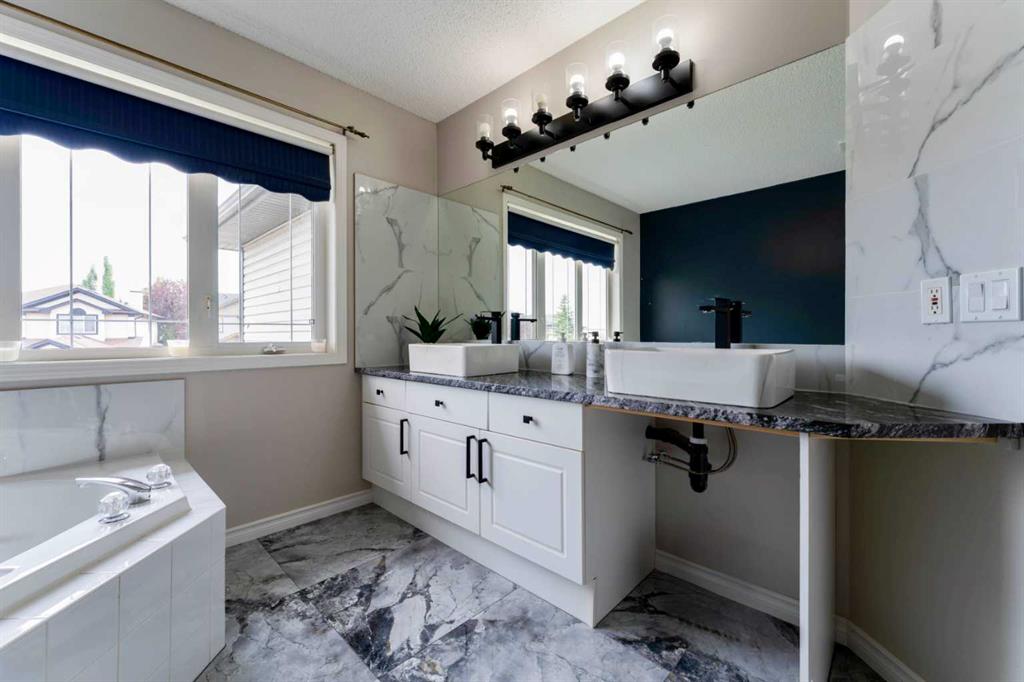 Welcome to 276 Fairways Bay NW, Airdrie! This beautifully renovated 2-storey backs onto the golf course, offering stunning views and a peaceful lifestyle. Featuring a bright open layout with a chef’s kitchen, main floor office, and spacious living areas. Upstairs features a bonus room and three bedrooms, including a luxurious primary suite. The newly finished basement adds 2 bedrooms, a bar, and a full bath. Enjoy a double attached garage, nearby schools, parks, and shopping — all in the sought-after Fairways community!